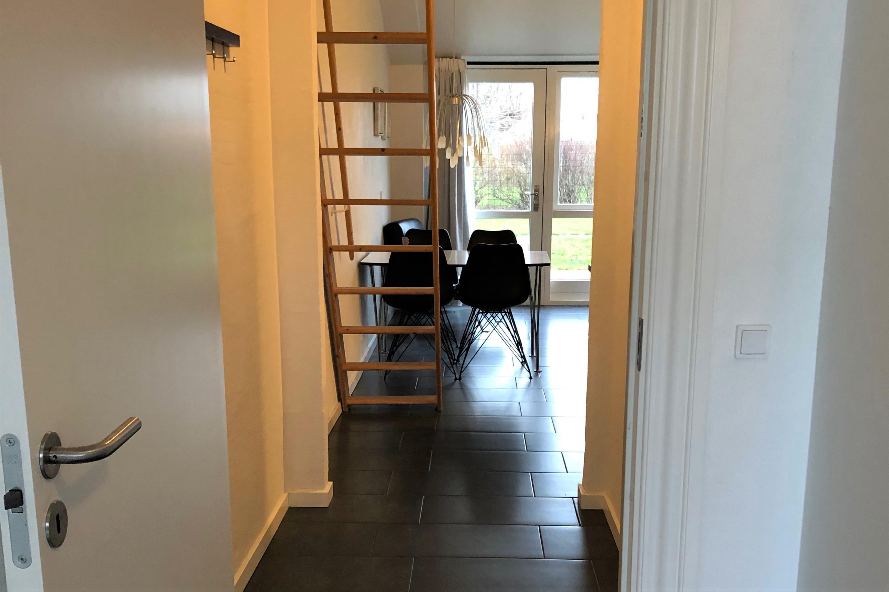 Moderne ferielejlighed beliggende i det lille feriekompleks Kerteminde Byferie, blot 2km fra bymidten i Kerteminde og 800m fra den skønne Nordstrand. Lejligheden er i et plan og indrettet med stue i åben forbindelse med køkken, badeværelse, 1 soverum med 1 dobbeltseng og hems med 2 madrasser. Fra stuen er der udgang til en privat terrasse med havemøbler og kig til legepladsen. Fra feriekompleksets område har du en flot udsigt til naturområdet Sybergland og golfbanen Great Northern.