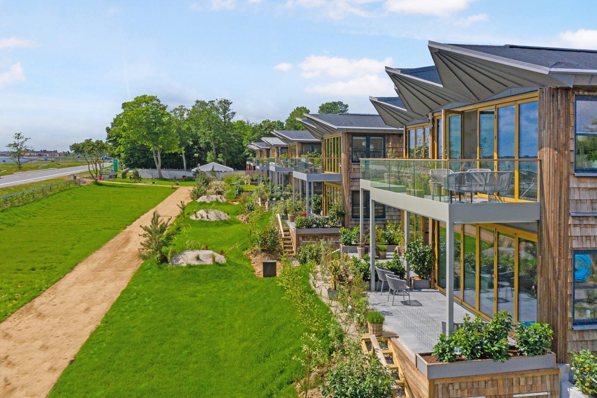 Ferieboligerne ved Kerteminde Resort ligger på et indhegnet areal med adgang til egen parkeringsplads direkte ved boligen.