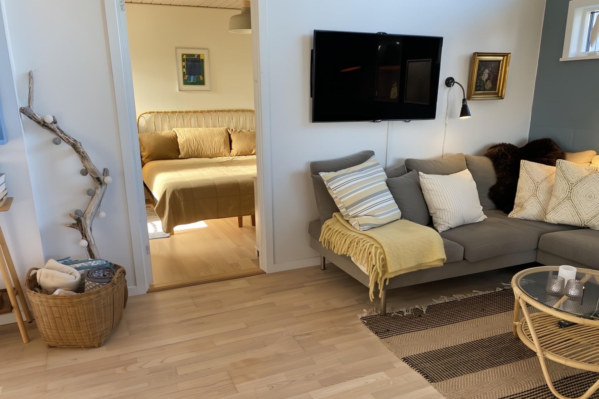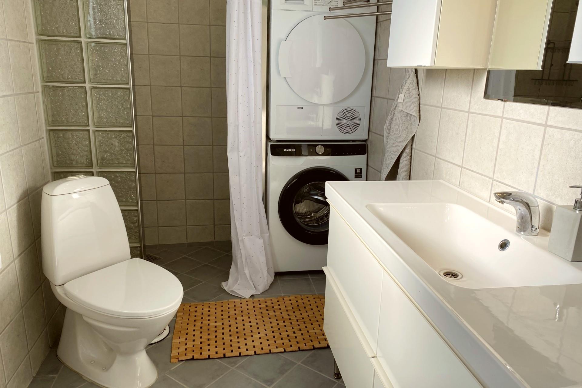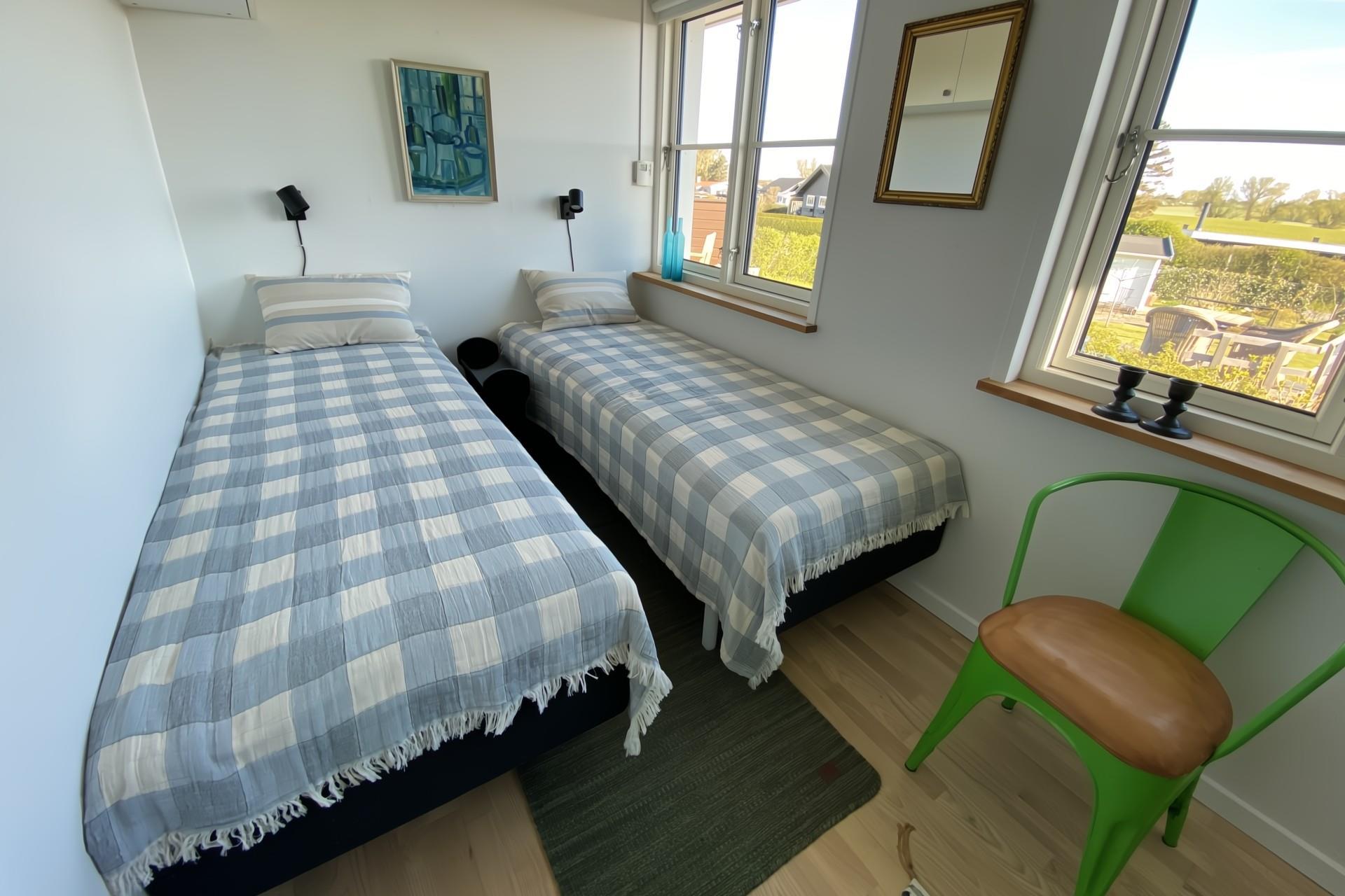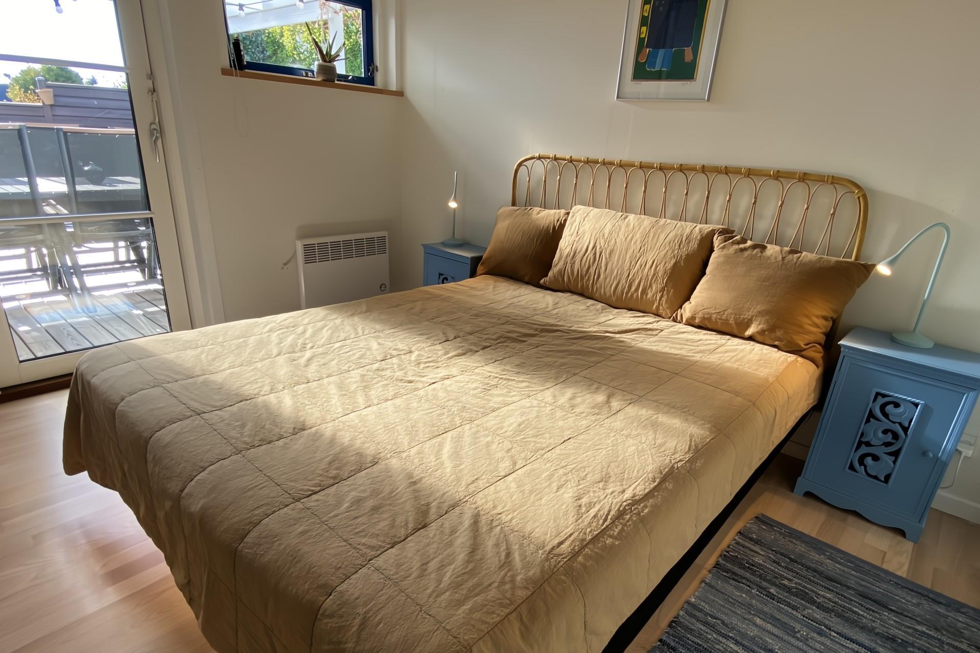 Boligen rummer to gode værelser, indrettet med henholdsvis dobbeltseng og to enkeltsenge. Badeværelset er lyst og rummeligt med bruseniche, gulvvarme samt vaskemaskine og tørretumbler.