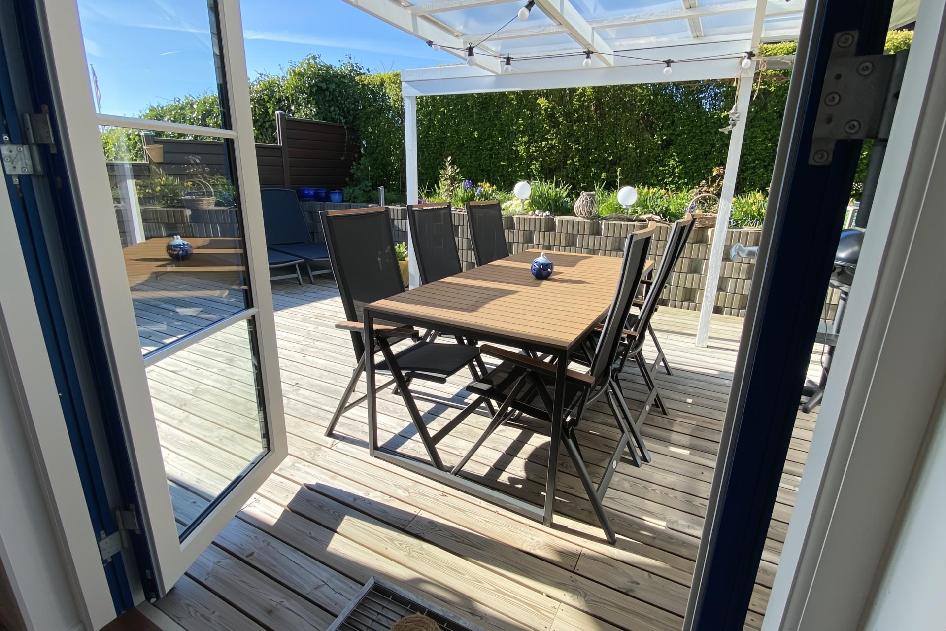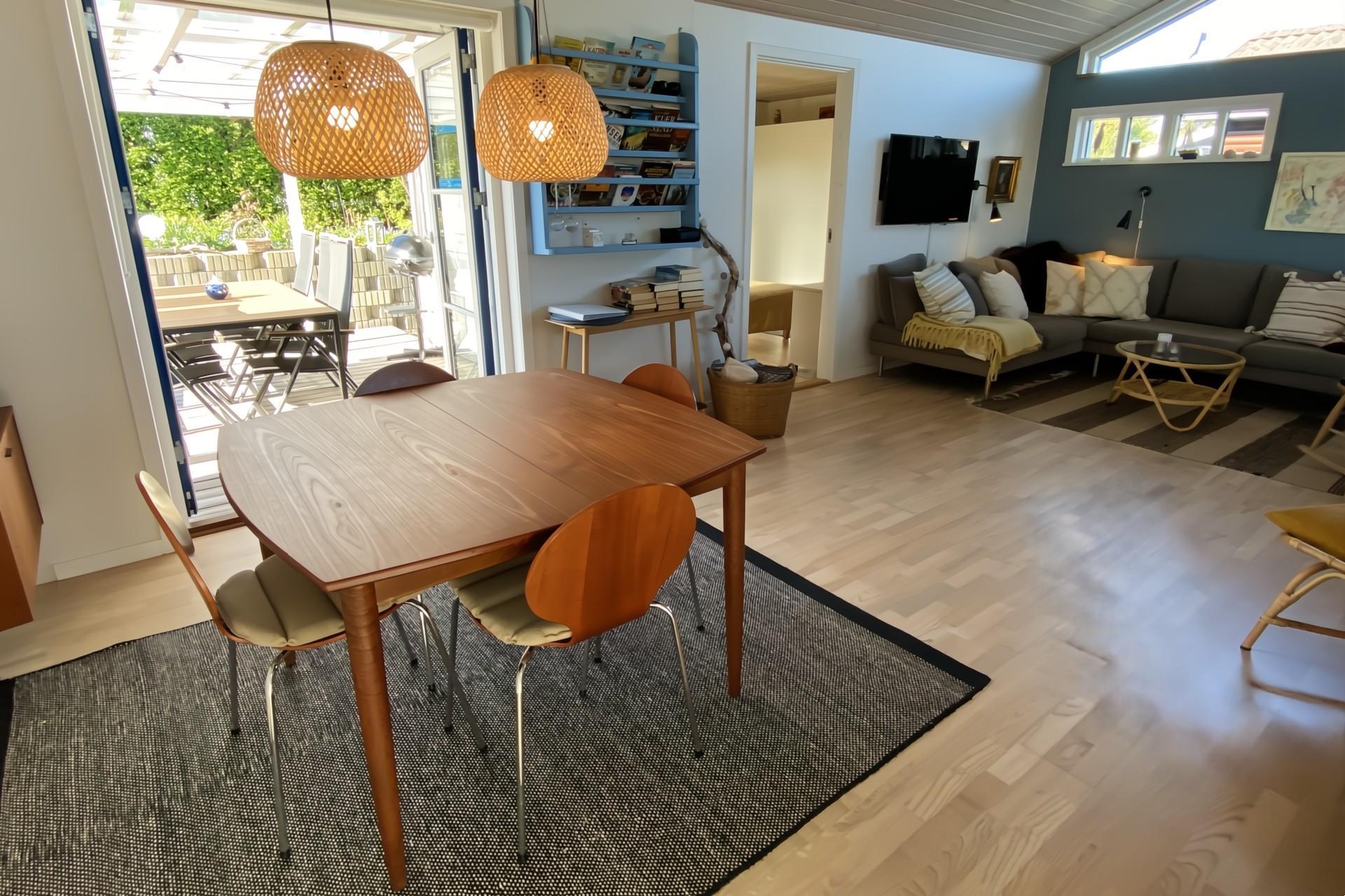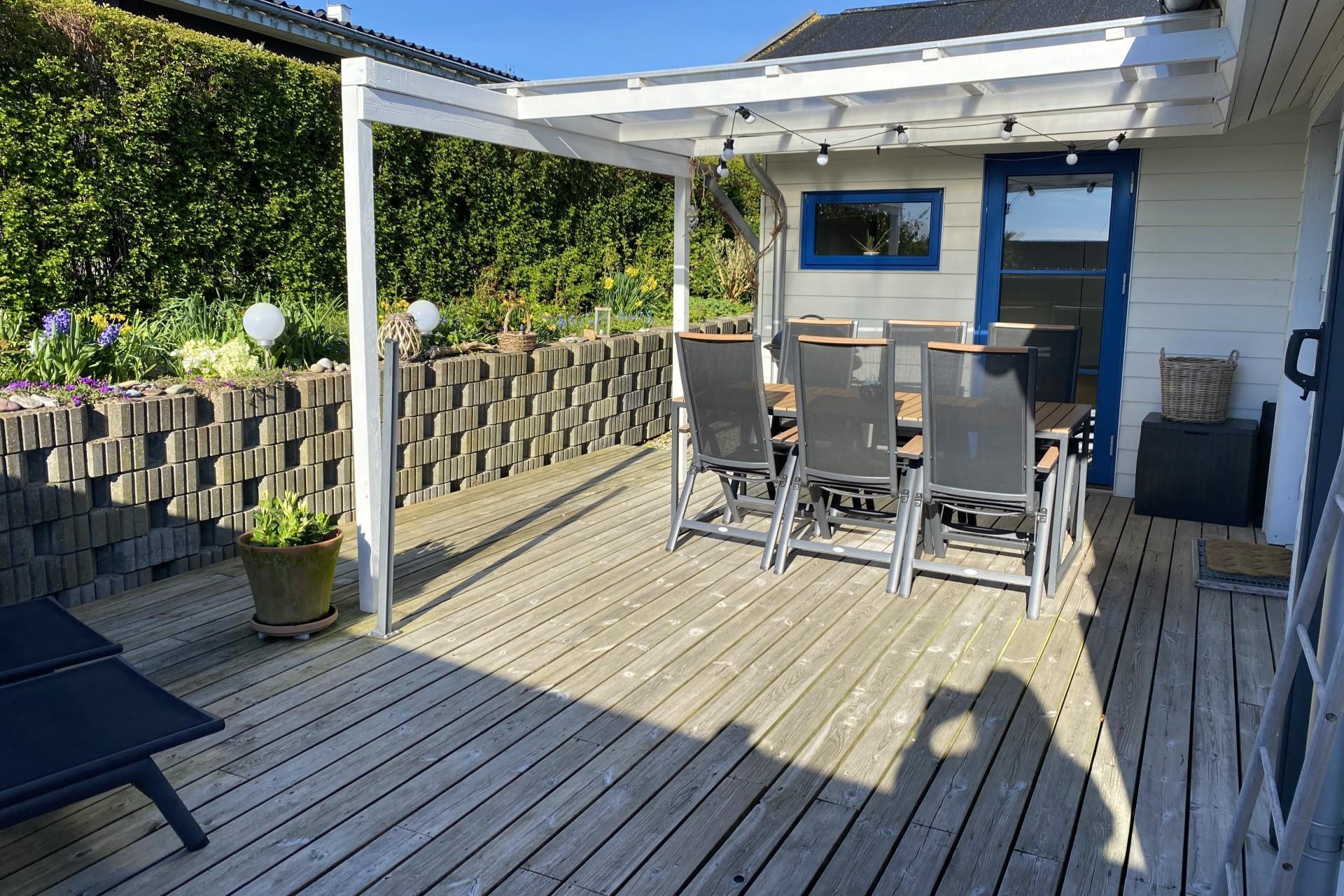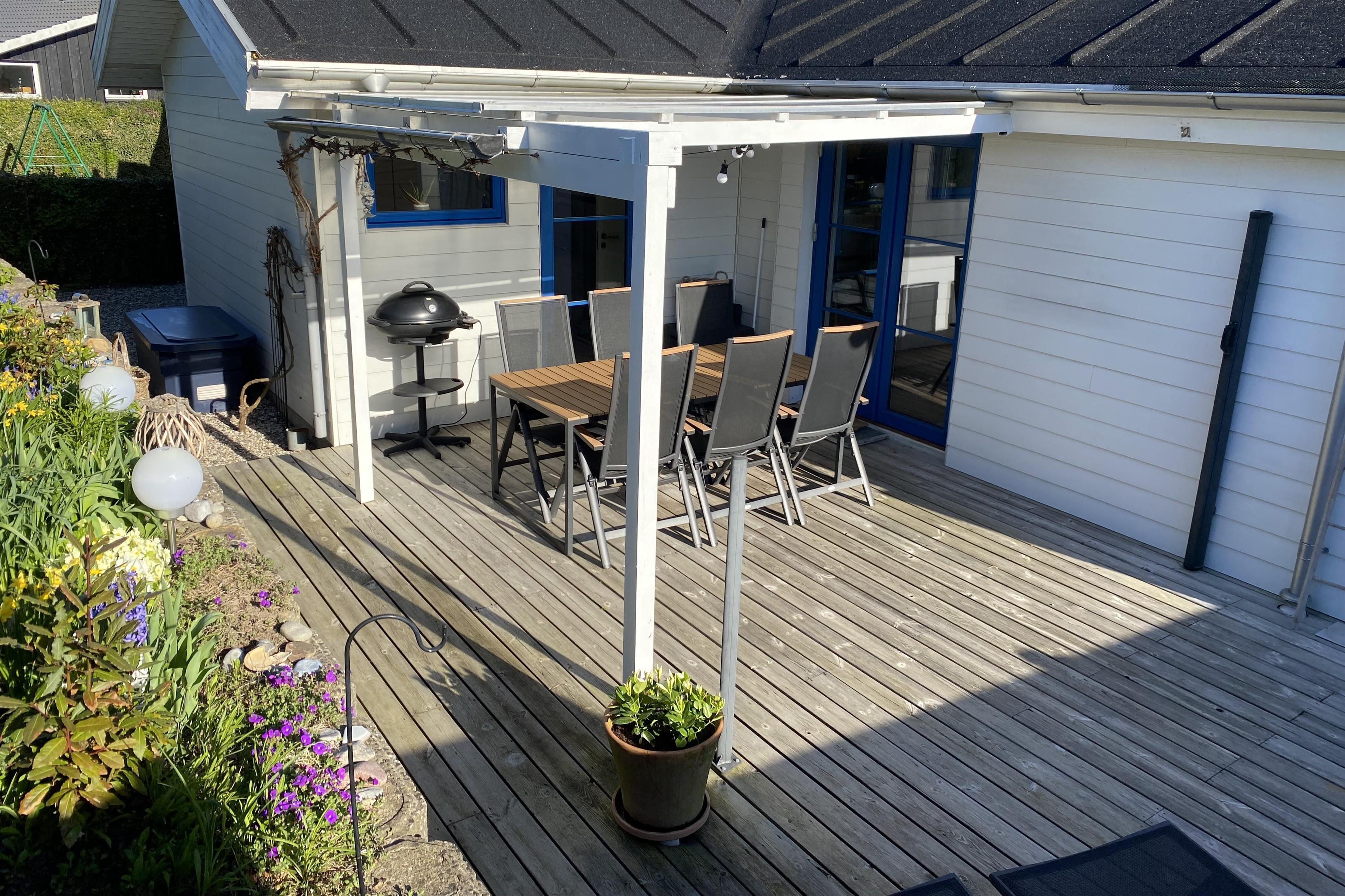 Udendørs venter flere hyggelige terrasser omkring huset, som giver optimale muligheder for at nyde udelivet fra morgen til aften. Derudover er huset udstyret med energibesparende og varmepumpe i stuen samt infrarød varme i loftet i det ene værelse.