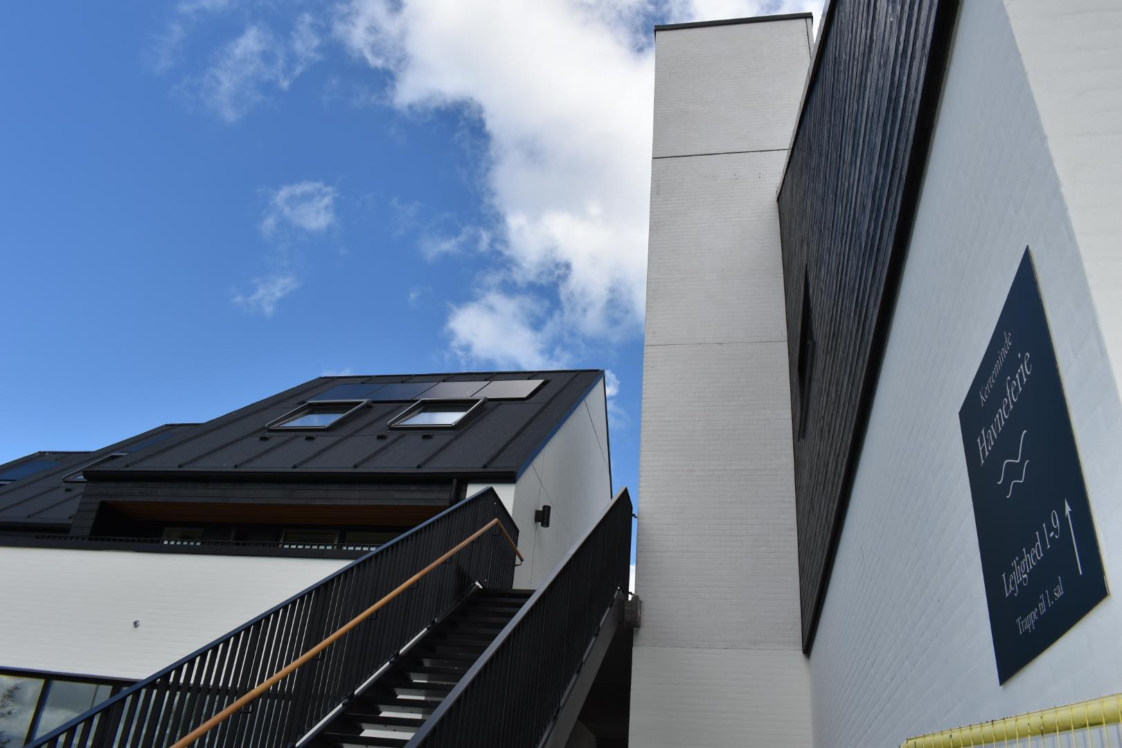 Lejligheden tilgås via en svalegang. Der er elevator i bygningen for nem adgang samt gratis parkering foran bygningen. Fra midten af august 2025 tilbydes desuden gratis parkering for én bil på et privat, indhegnet område med adgang til ladestander.