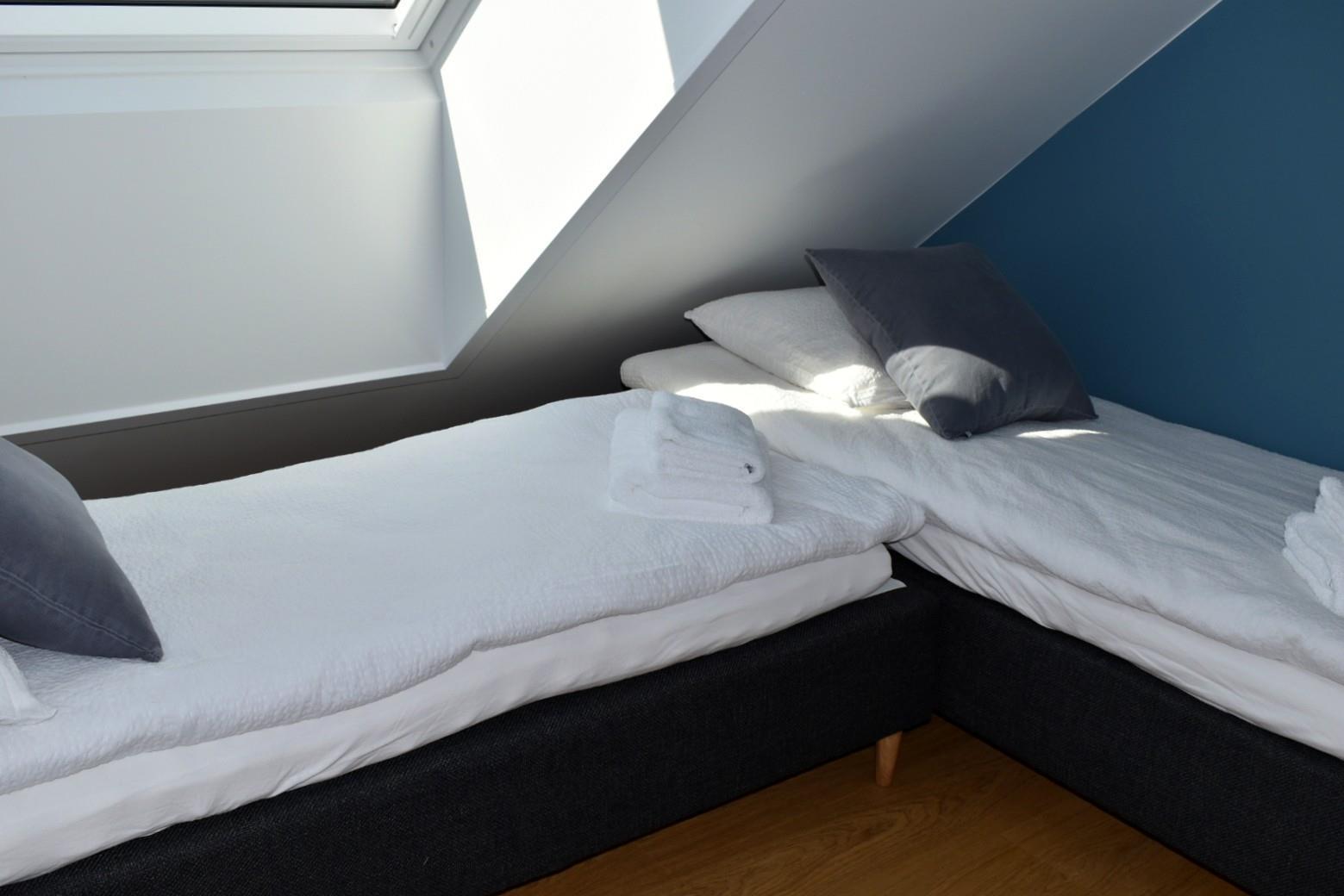 Lys og moderne ferielejlighed beliggende ved Kerteminde Havneferie. Lejligheden er fordelt over 1. og 2. sal og indrettet med fokus på kvalitet og komfort. På 1. sal byder lejligheden på en hyggelig stue med smart-TV (kun streaming), et fuldt udstyret køkken med havkig samt et praktisk gæstetoilet. 2. sal rummer et stilfuldt badeværelse med bruser og gulvvarme samt tre komfortable soveværelser med dobbeltseng.