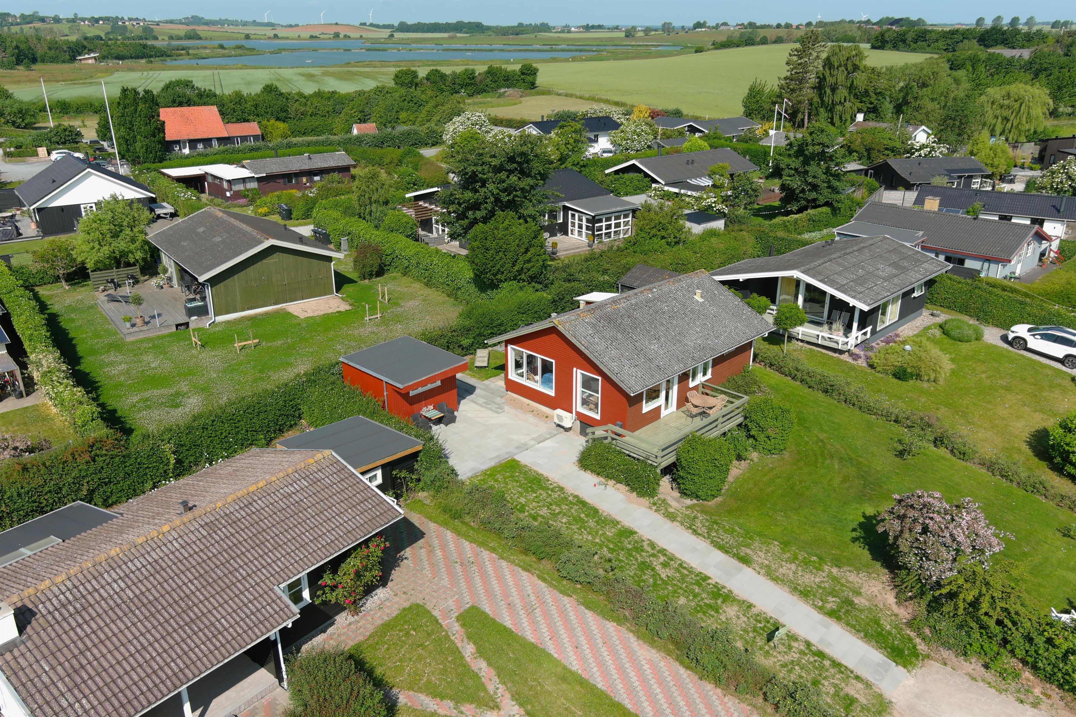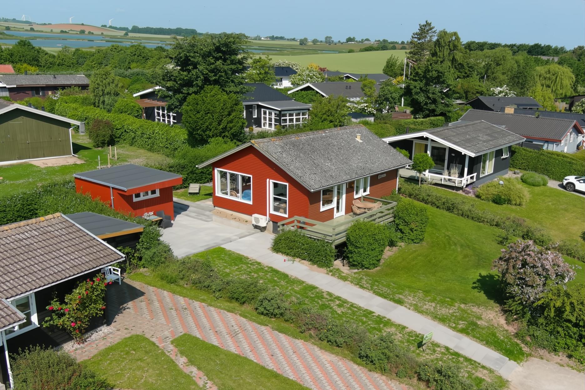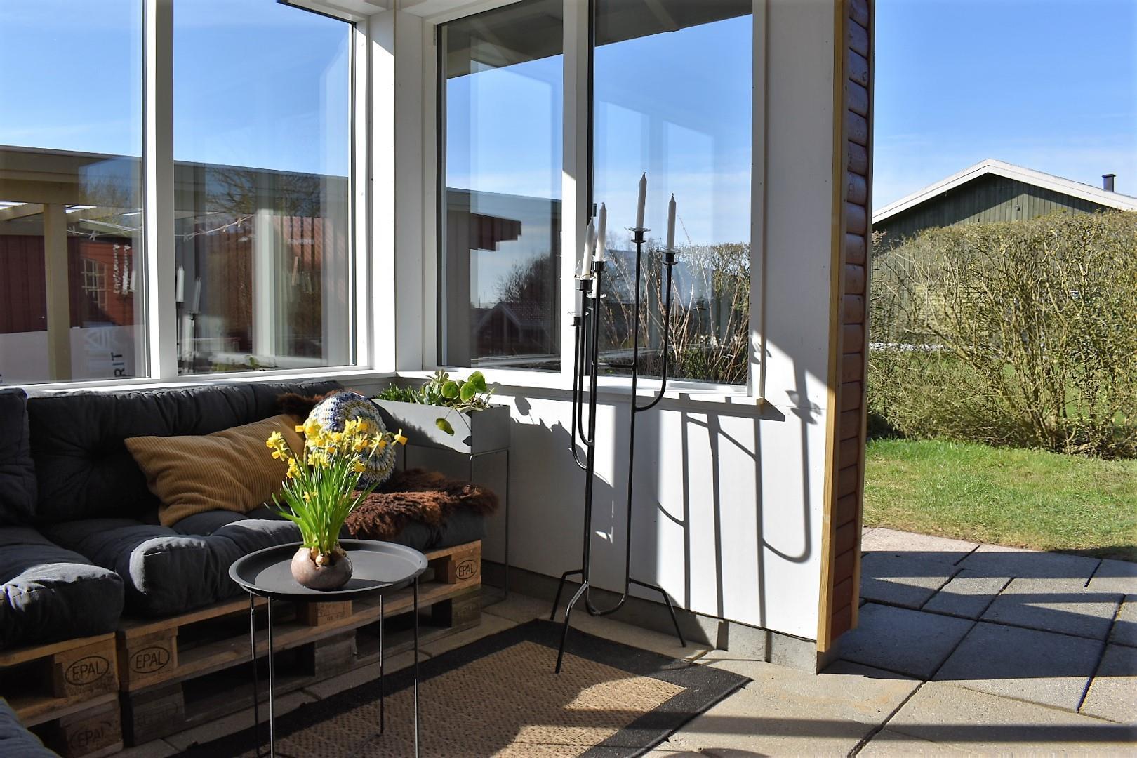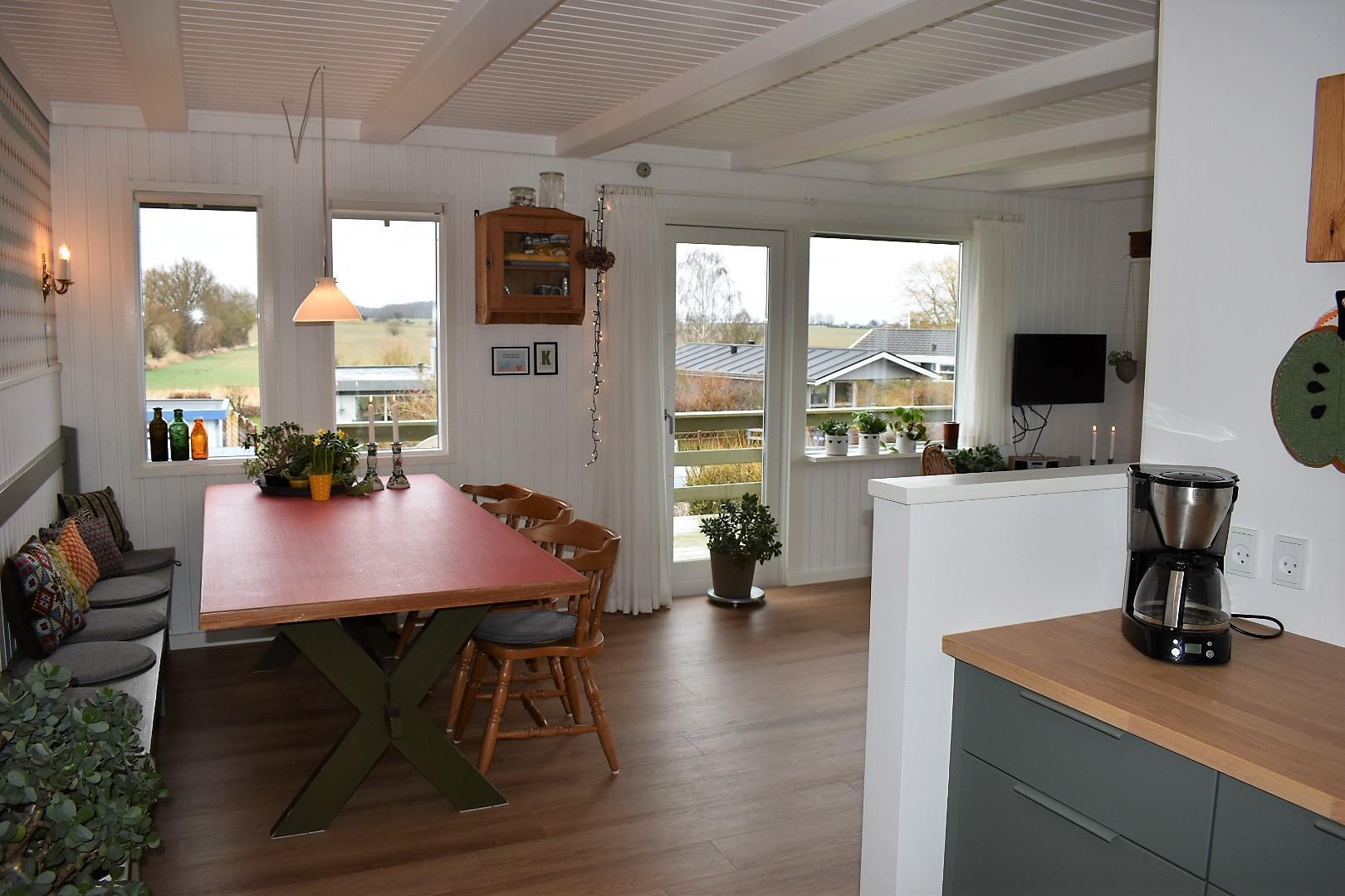 Sommerhuset er højt beliggende med en skøn udsigt over marker. Huset er delvist renoveret med nyt køkken i åben forbindelse med stuen med TV og energibesparende varmepumpe. Der er ingen TV pakke, men mulighed for streaming fra egen mobil/tablet via chromecast. Fra stuen er der udgang til en nyetableret udestue, hvor du kan opholde dig på de lidt kølige aftner. Fra den store træterrasse foran huset har du morgen- og middagssol og en skøn udsigt over marker. Bag huset befinder sig endnu en terrasse, hvor du kan sidde i læ. Huset har 2 soverum med en dobbeltseng i hver samt et ældre badeværelse, som ikke har brusekabine, men en håndbruser. Du kan med fordel benytte det udendørs bruserum, som har varmt/koldt vand. Sommerhuset ligger ved et dejligt stisystem, hvor du kan gå eller cykle til naturområdet Sybergland og videre ud på halvøen Hindsholm.