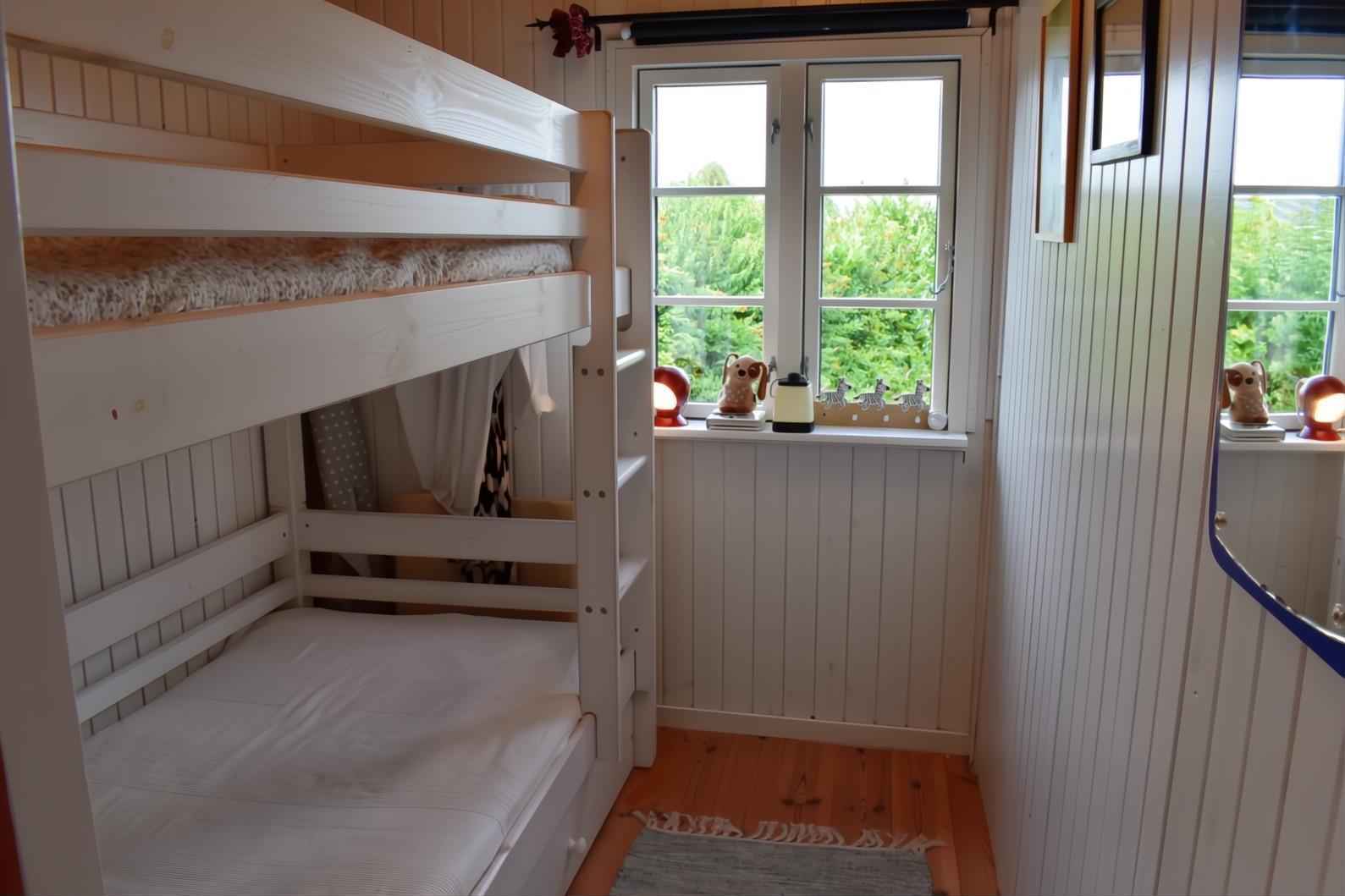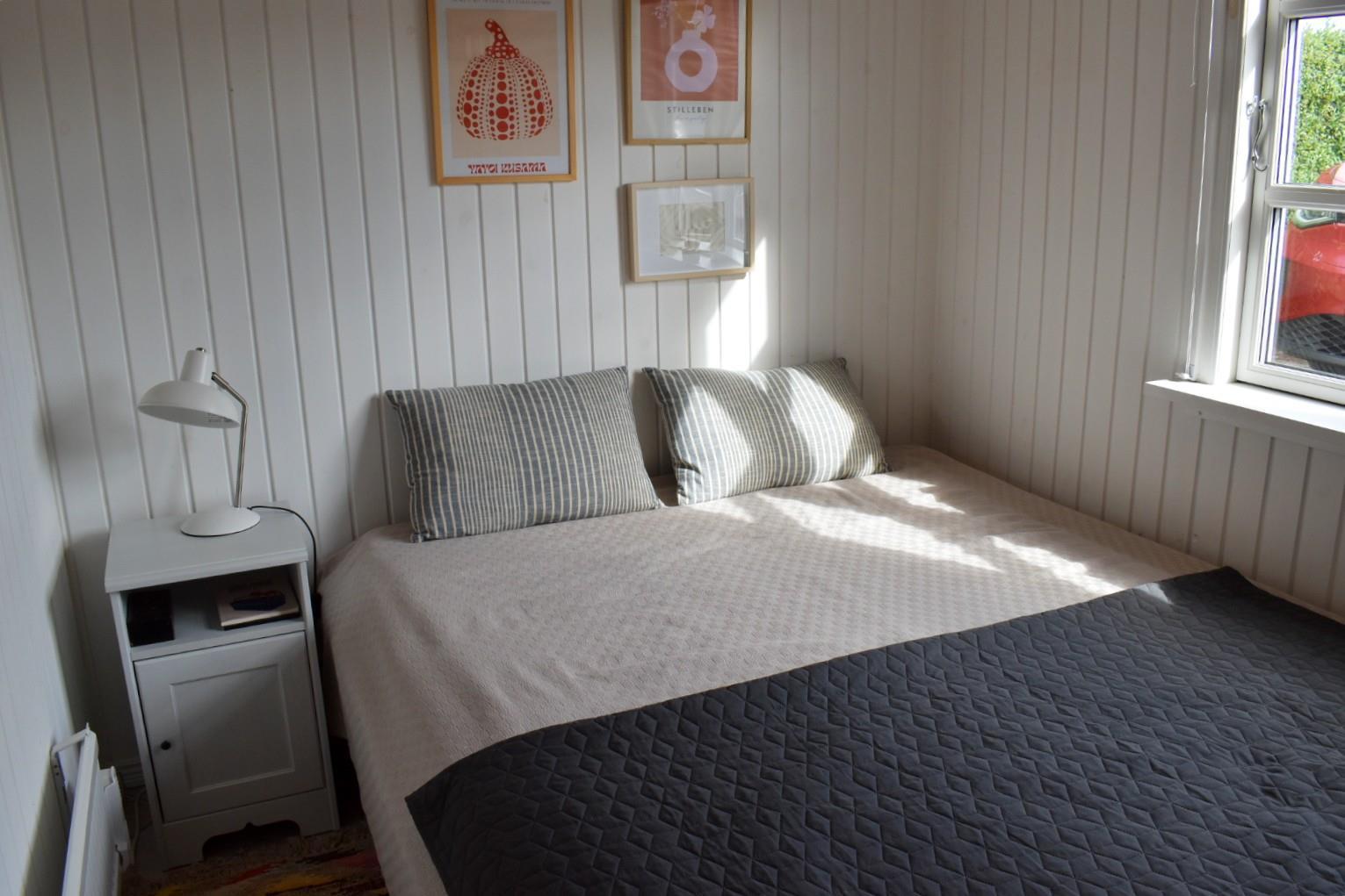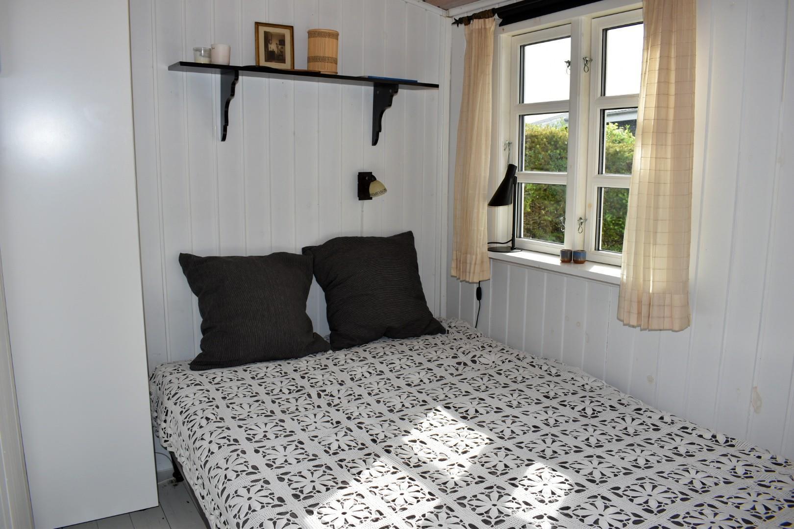Sommerhuset rummer ét soveværelse med dobbeltseng, et mindre værelse med dobbeltseng (140 cm) samt et værelse med køjesenge. Derudover findes et lille badeværelse med bruser. Den hyggelige udestue indbyder til afslappende aftener.