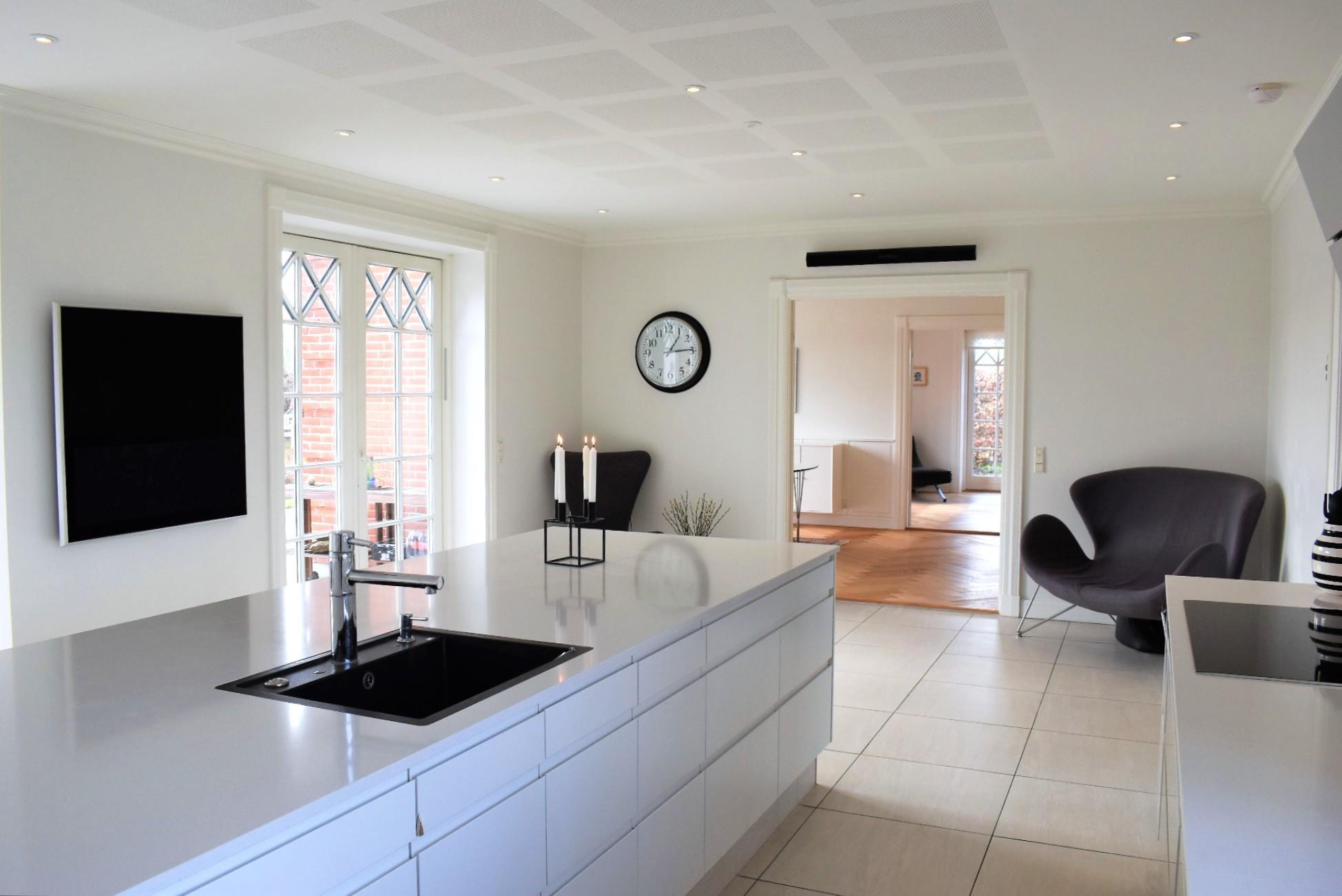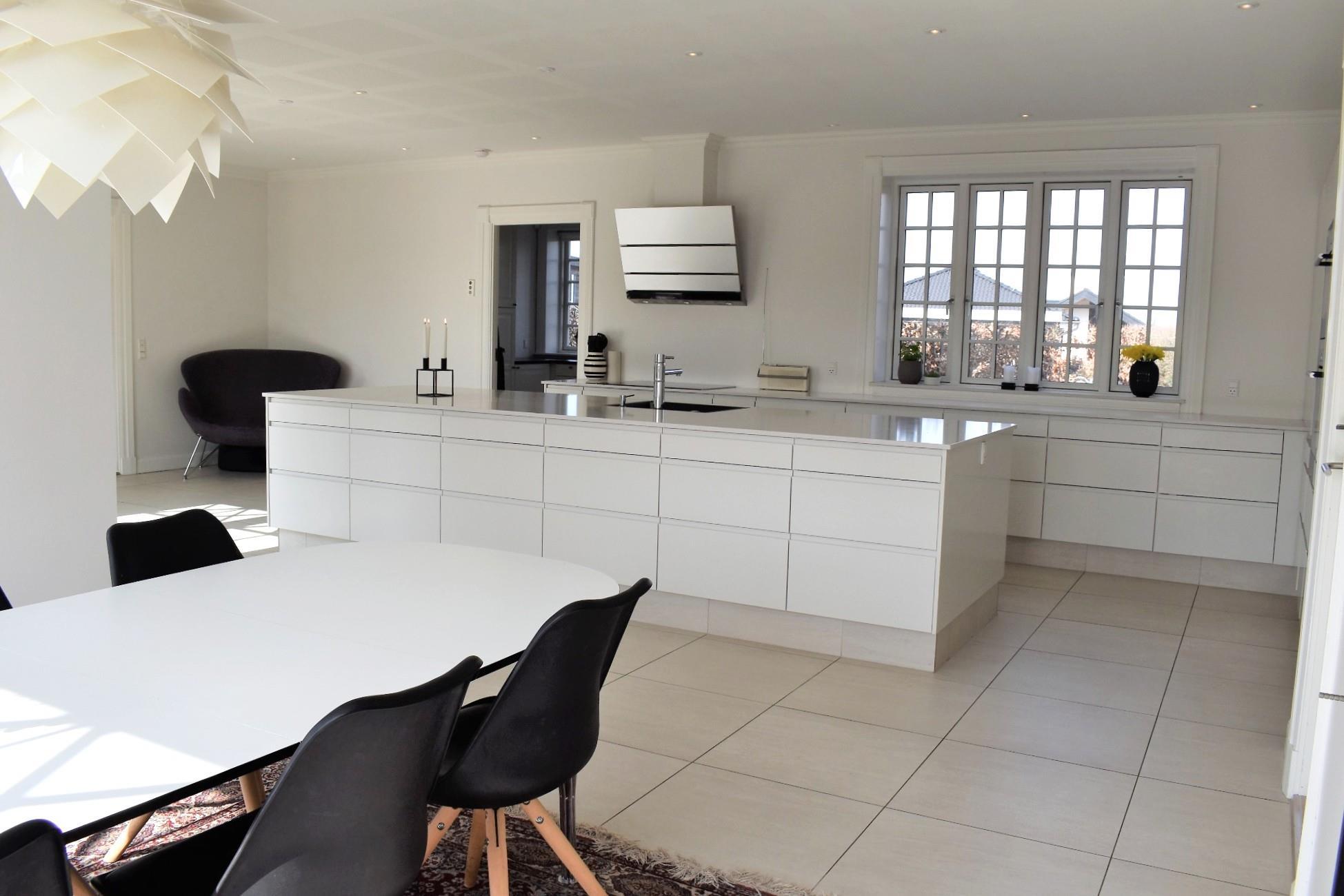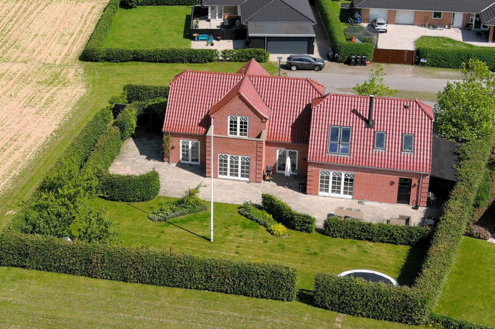 Boligen er opført i materialer af højeste kvalitet og byder på masser af plads og komfort til hele familien. Hjemmets samlingspunkt er det store og lyse køkken-alrum med spiseplads og adgang til både spisestue og opholdsstue. Den elegante hall fører til et af husets tre badeværelser og til den første soveafdeling på førstesalen. Her finder du et badeværelse med både kar og bruseniche samt tre soveværelser – ét med en dobbeltseng, ét med en enkeltseng og ét med en enkeltseng samt en alkove.
