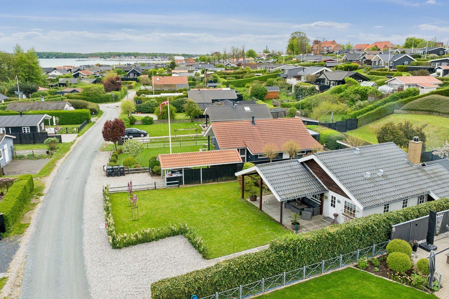 Kerteminde Sommerby ligger på en skråning med en smuk udsigt over Kerteminde Bugt og Nordstranden, som hører til blandt Fyns bedste.