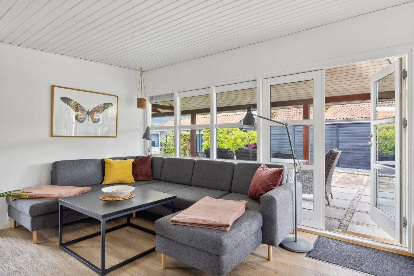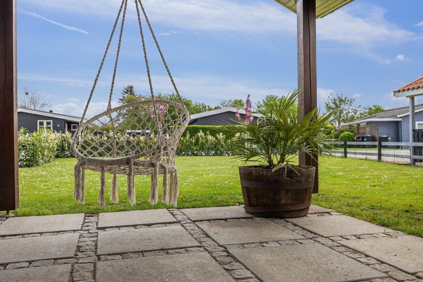 Skøn have med et stort terrasseanlæg, hvor udelivet rigtig kan nydes. Grunden er helt indhegnet, så hunden kan løbe frit. Sommerhuset ligger kun 1 km fra Kertemindes hyggelige bymidte.