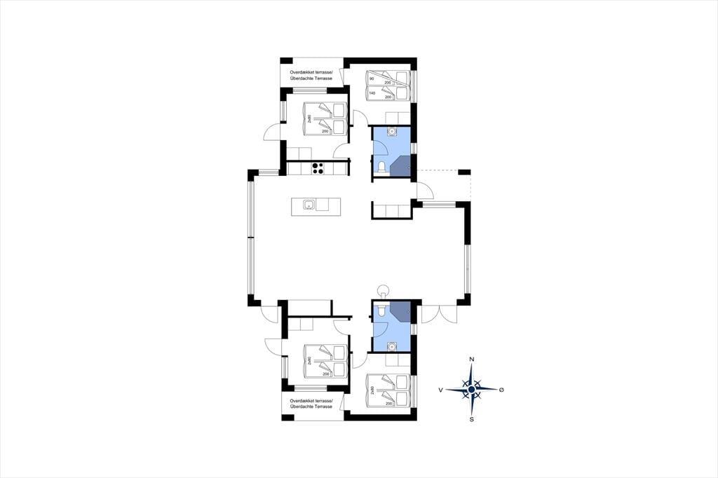 Det lyse og moderne feriehus blev bygget i 2017 og er indrettet med et stort centralt køkken-alrum, som er perfekt til både madlavning og samvær. Her kan du stå og tilberede dagens måltid, samtidig med at du nyder den imponerende udsigt over havet og naturen gennem de store vinduespartier, der går fra gulv til loft. Med loft til kip og et åbent rumforløb får du en fantastisk rummelighed og lysindfald. Brændeovnen giver en hyggelig stemning på kølige dage, og varmepumpen sikrer en behagelig temperatur året rundt. Sommerhuset har to soveafdelinger, hver med to værelser og badeværelse, og begge afdelinger har udgang til en terrasse, hvor du kan nyde den friske havluft og den smukke udsigt. Hvert værelse er indrettet med fokus på komfort og afslapning, så du kan trække dig tilbage til roen efter en aktiv dag i naturen.
