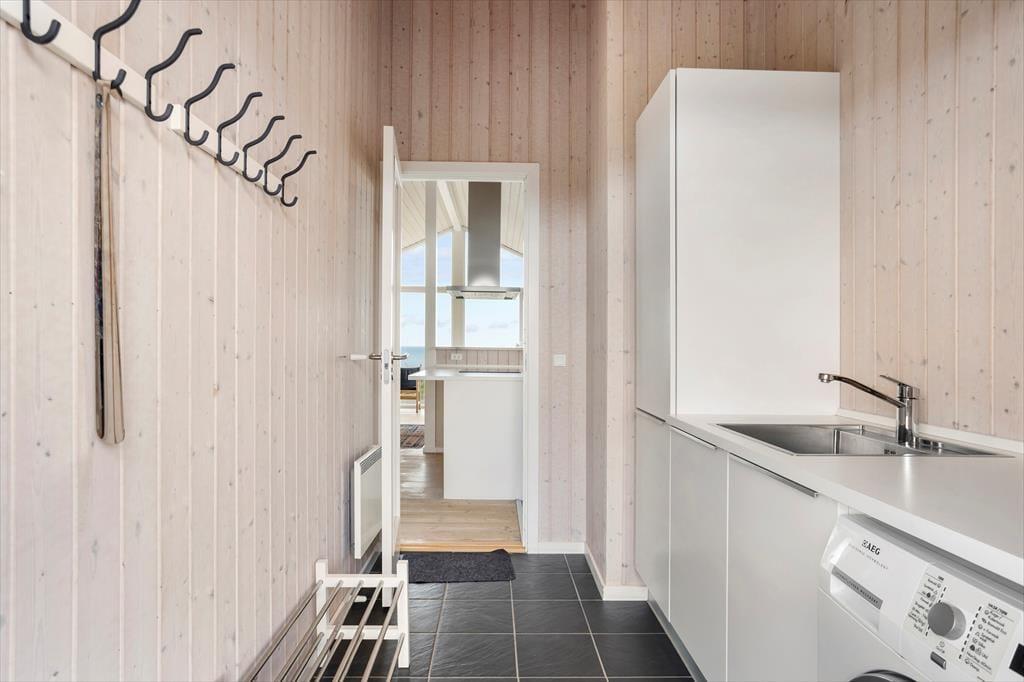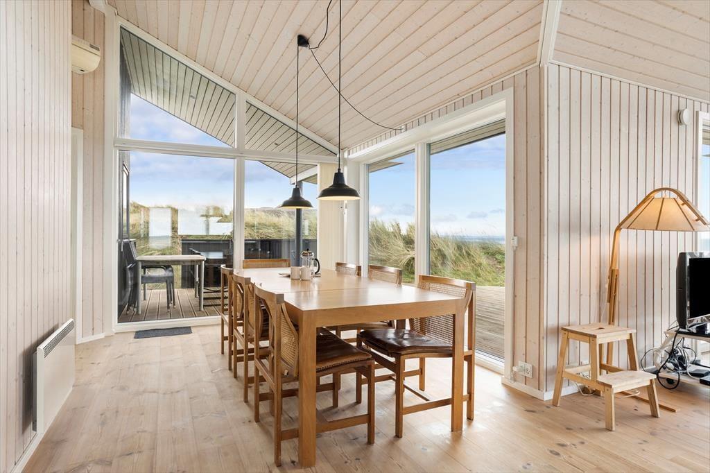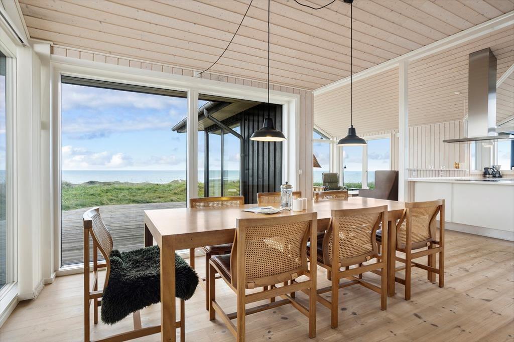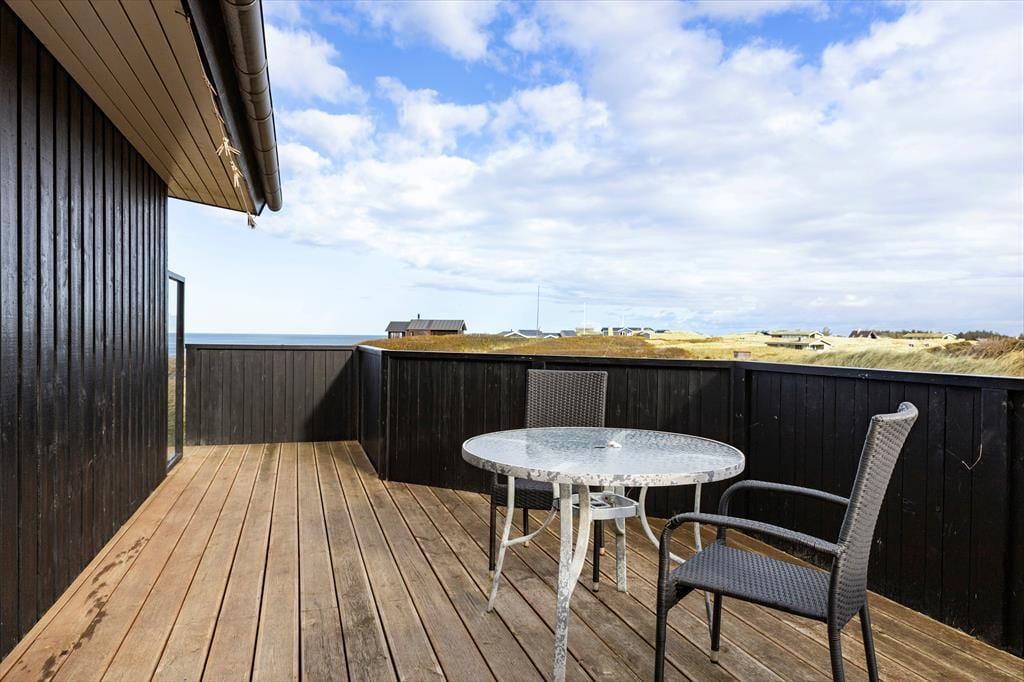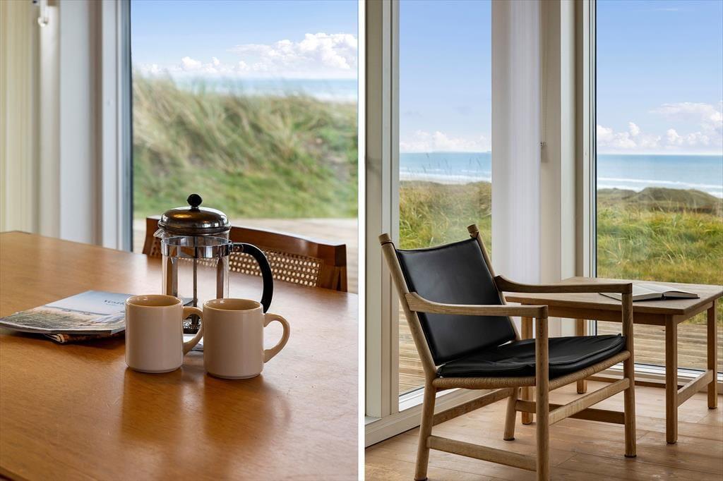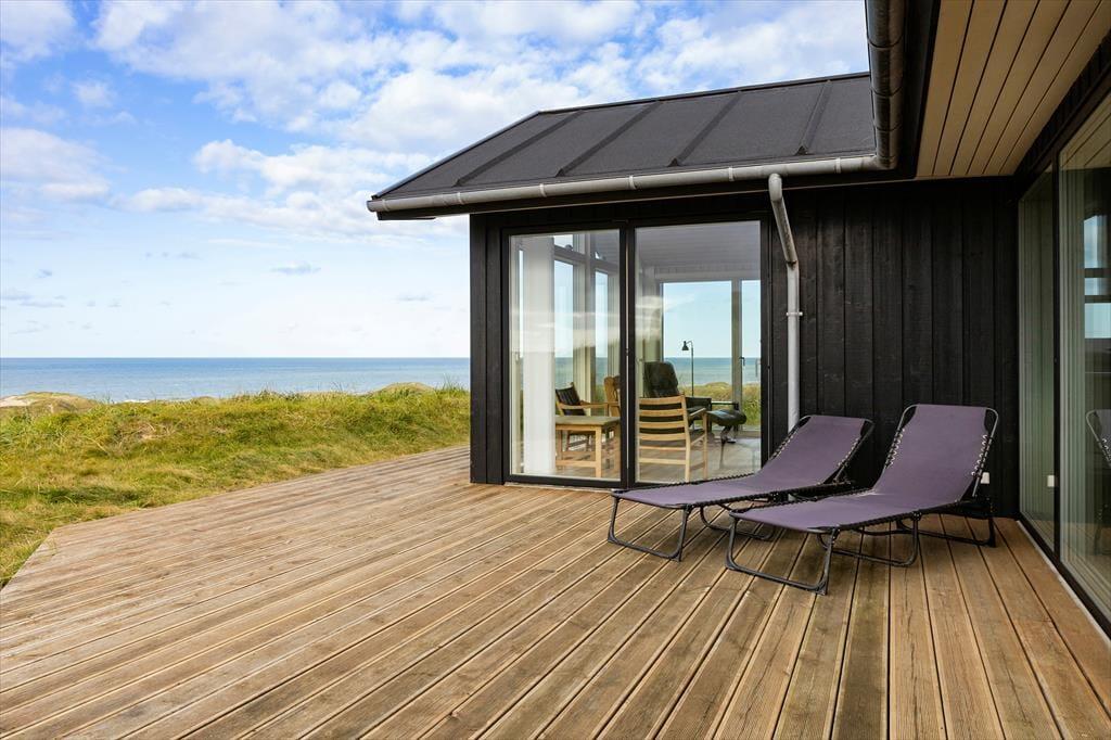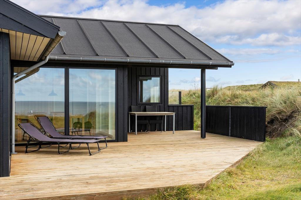 Det sorte træ og de store glaspartier giver huset et elegant ydre udtryk, mens det lyse træ, det høje loft og det nordjyske lys tilsammen danner en indbydende og hyggelig atmosfære indenfor. Huset består af tre soveværelser, et badeværelse, en hems, et bryggers og et stort og sammenhængende køkken- og opholdsrum med direkte kig til Vesterhavet fra tre sider; en af de bedste udsigter vi kan tilbyde i dette område. Huset er lige velegnet til en parferie som til et ophold med børn. Der er mulighed for at vaske og tørre badetøj og håndklæder, så man er klar til at bade i Vesterhavet flere gange om dagen. Man vælger dette sommerhus, hvis man er vild med Vesterhavet, gerne vil have naturen tæt på og sætter pris på høj kvalitet.
