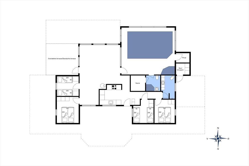 Sommerhuset er skønt beliggende. I sommerhusets centrale rum finder man et dejligt køkkenalrum, hvorfra man kan træde op i den hyggelige stue med kig til poolrummet. Sommerhusets 4 rummelige værelser med gode senge og den store hems på 21 m2 med madrasser og udsigt over Vesterhavet sikrer, at hele familien sover trygt og godt; huset er således med de dejlige faciliteter et ideelt valg for både par og familier.