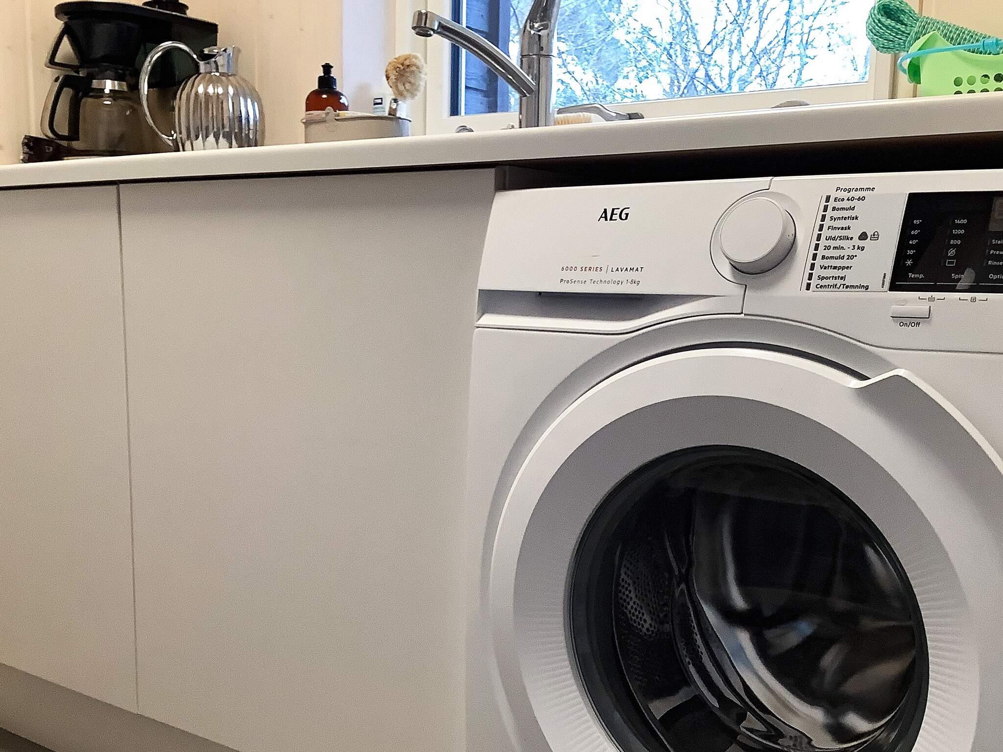 Køkken: Elkogepl., ovn, køle-frys, mikroovn, emhætte, kaffemaskine, opvaskemask.