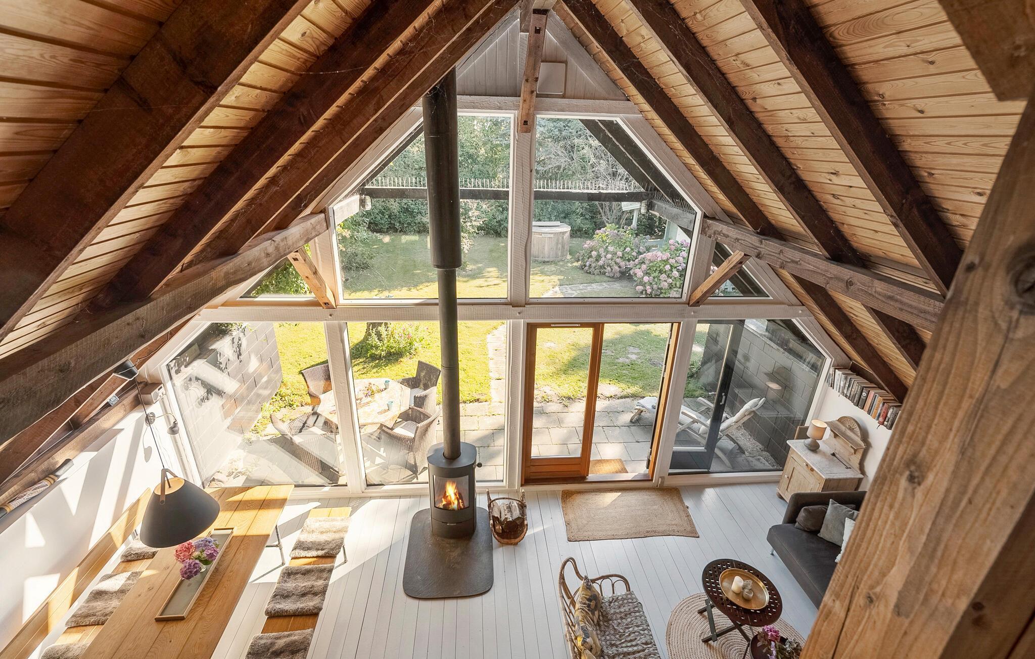 Undslip hverdagen i dette charmerende hus, der både byder på afslapning og en underholdende ferie. Takket være de store vinduespartier er indendørsområderne lyse og tilbyder smukke udsigter over haven og fra oven også en vidstrakt udsigt over omgivelserne. Efter morgenmaden og dagens første kop kaffe, som I kan tilberede i det åbne køkken, kan I tage plads i sofagruppen og planlægge jeres feriedag. Stuen med den indbydende brændeovn byder på en behagelig varme på køligere dage. Den hyggelige indretning skaber et rum, hvor I straks vil føle jer hjemme.