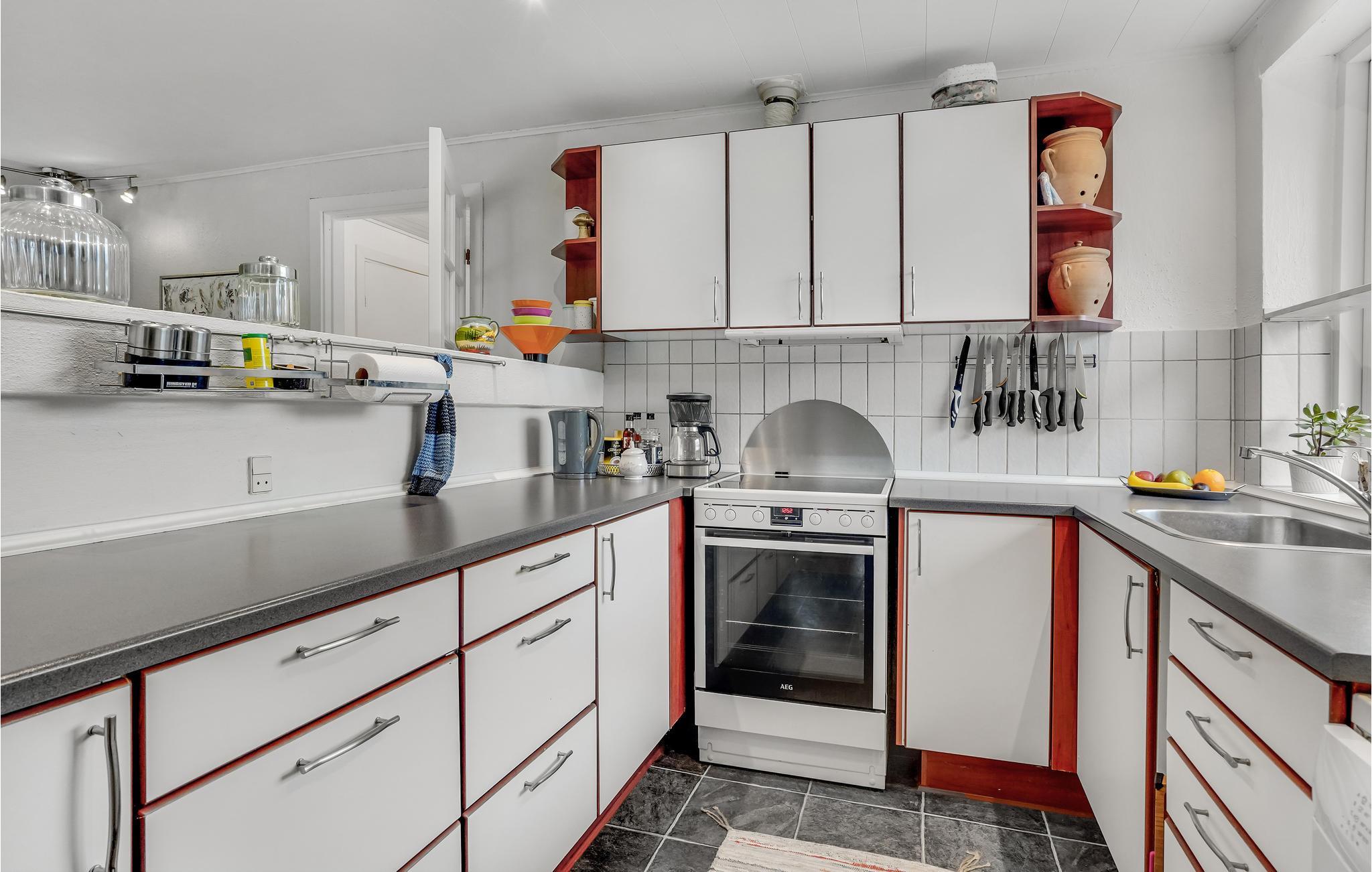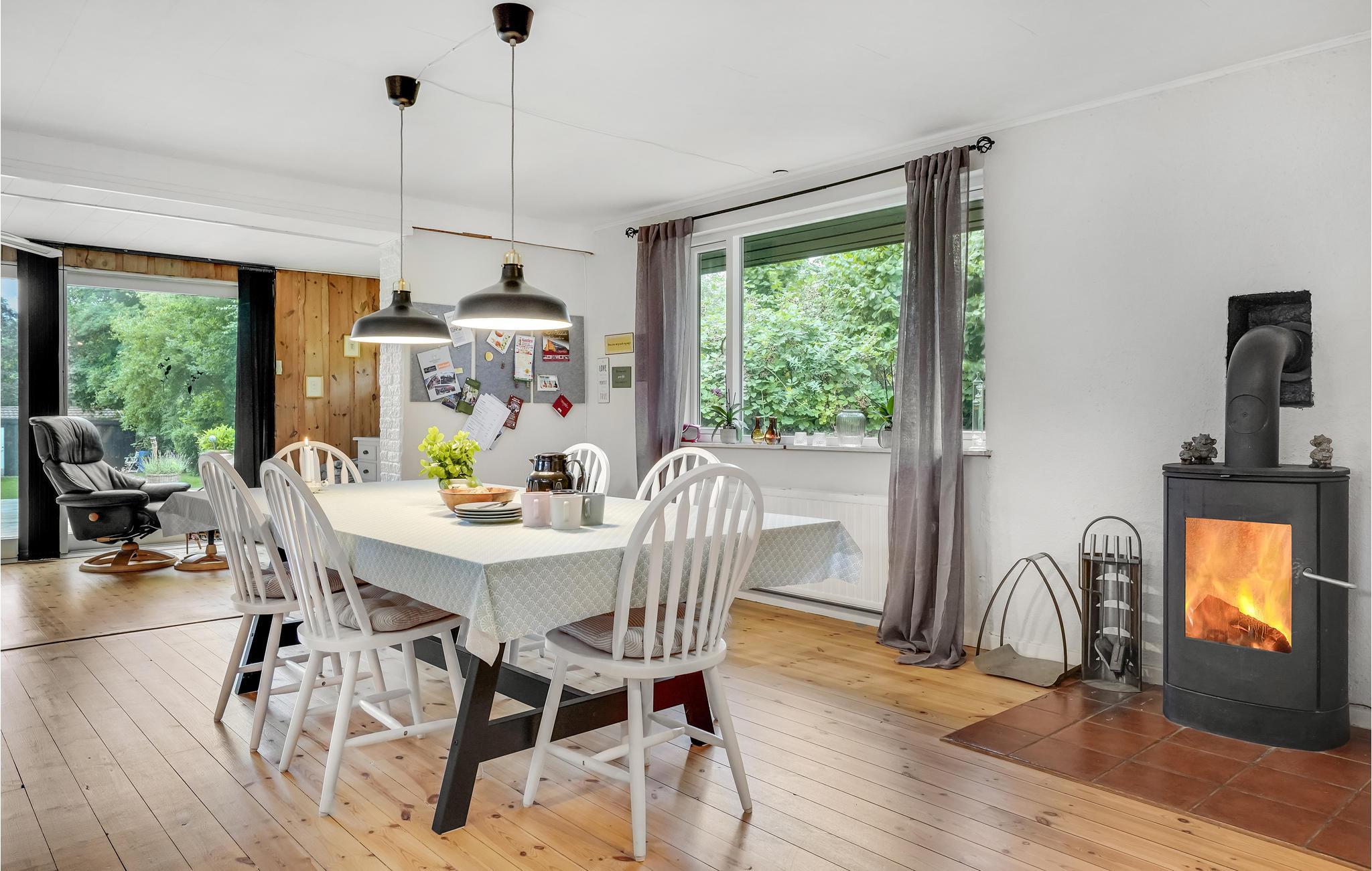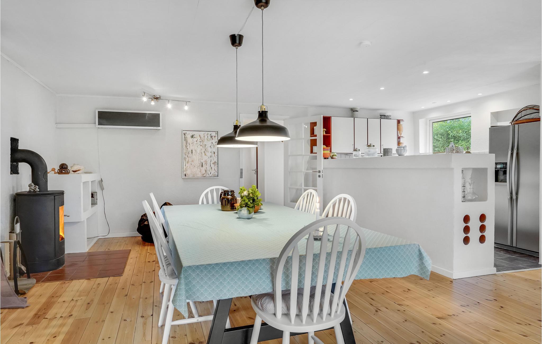 Det dejlige sommerhus består af tre soveværelser, et badeværelse, et køkken og et smukt opholdsområde. Brændeovnen ved siden af ??spisebordet spreder varme og skaber hyggestemning på kølige dage. Chromecast tilbyder underholdning på regnfulde dage.