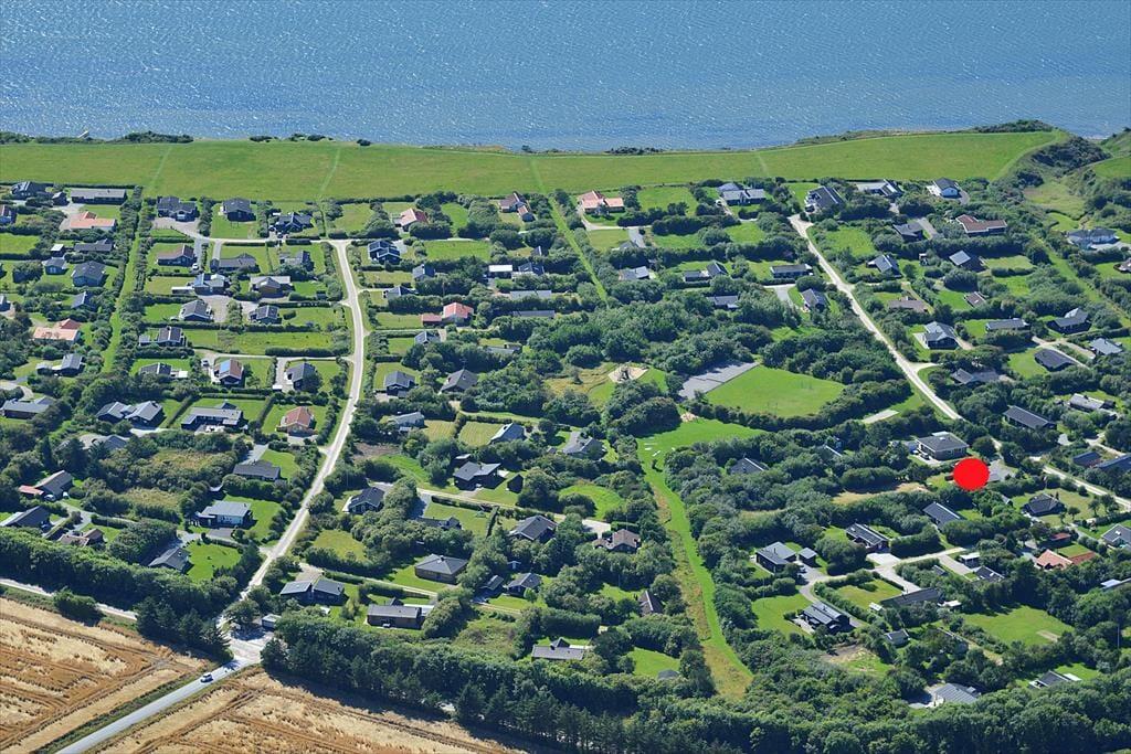 Gunhildsvej er en af de hyggelige veje i det rolige og familievenlige sommerhusområde Kjærgaarden. Huset ligger tæt på en legeplads med boldbane og en petanquebane, og der er kun 400 meter ned til Limfjorden og den fine strand, der har badebro i sommersæsonen. Trænger I til lidt frisk luft og motion, går der et spor langs med kysten til Krik, og I kan også bevæge jer ind til Vestervig for at spise på Thinghuskroen. Kjærgaarden er et godt udgangspunkt, hvis I vil udforske Nationalpark Thy, og på ikke meget mere end ti minutter kan I køre til Agger og Vesterhavet.