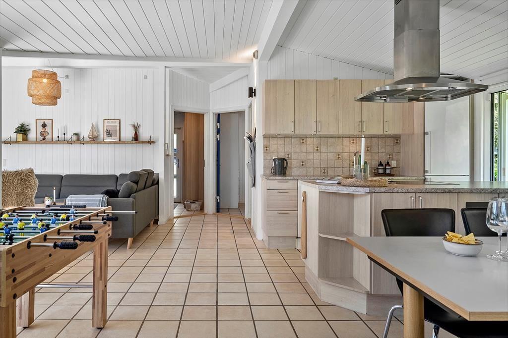 Sommerhuset måler hele 142 m2, og det er blevet renoveret i 2021, så det står helt klar til at modtage kommende feriegæster. Med fire rummelige soveværelser og to badeværelser passer planløsningen godt til otte personer – og I får derudover god plads til at hygge jer i opholdsrummet, der byder på brændeovn, varmepumpe, bordfodbold og tv med danske, tyske og norske kanaler. Det er skønt at samles omkring spisebordet eller at slænge sig i sofaen, og selv madlavningen kan blive et fælles hyggeprojekt i det åbne køkken. Familiens livsnydere og vandhunde kan også se frem til at bruge tiden i husets wellnessafdeling, der er indrettet med swimmingpool, spabad og sauna.