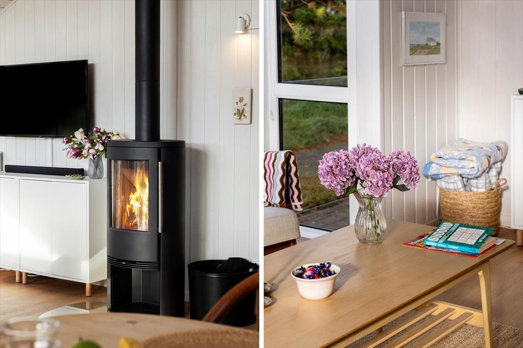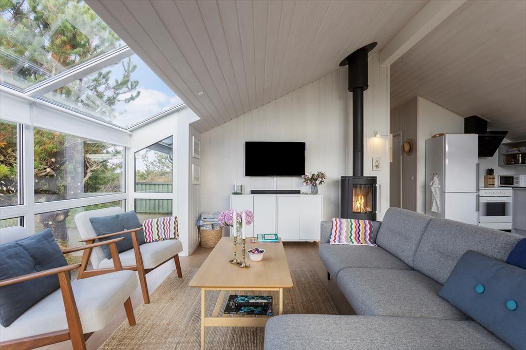 Hyggeligt sommerhus i Kjul Strand med brændeovn, internet og tæt på strand for en afslappende ferie.