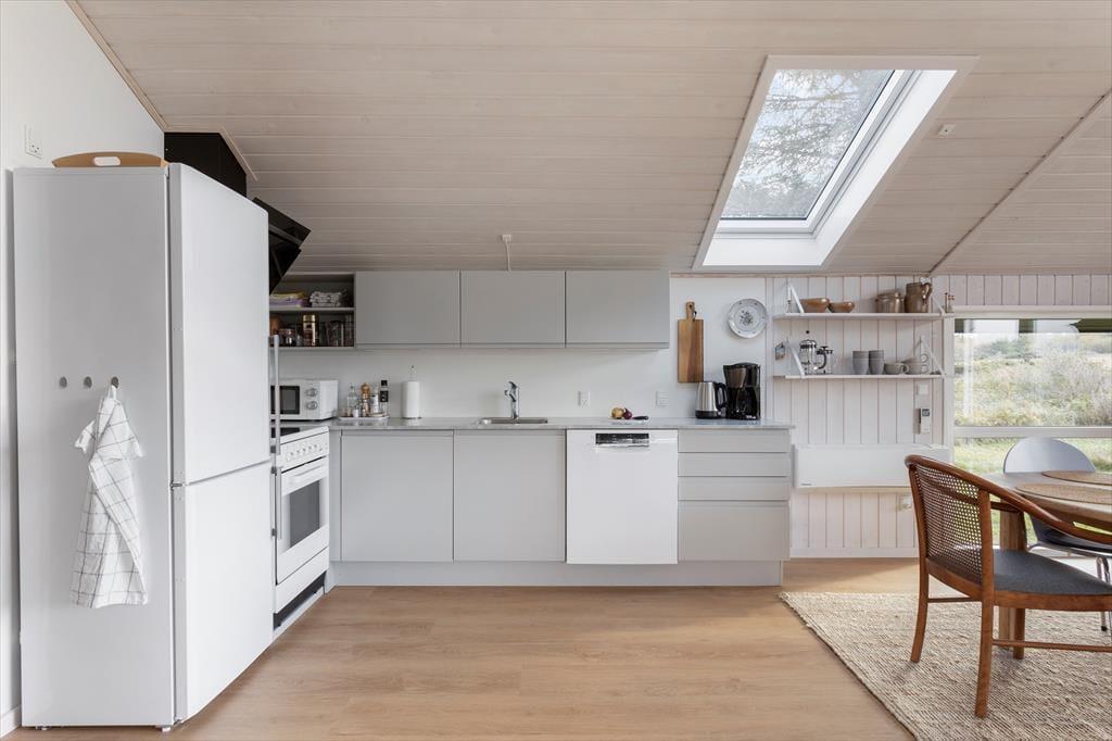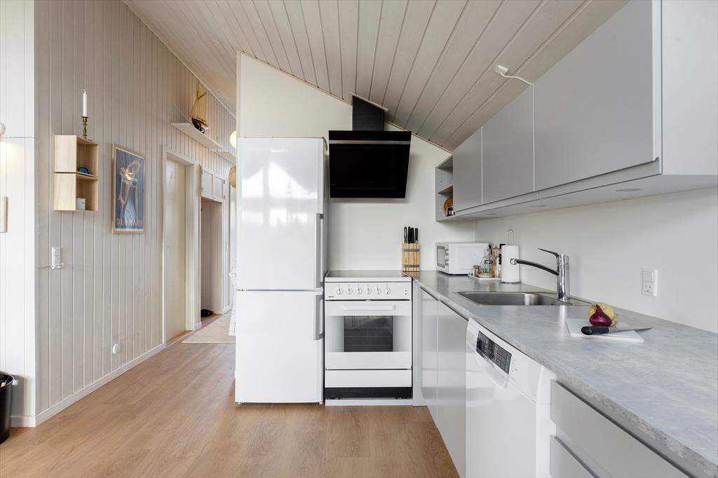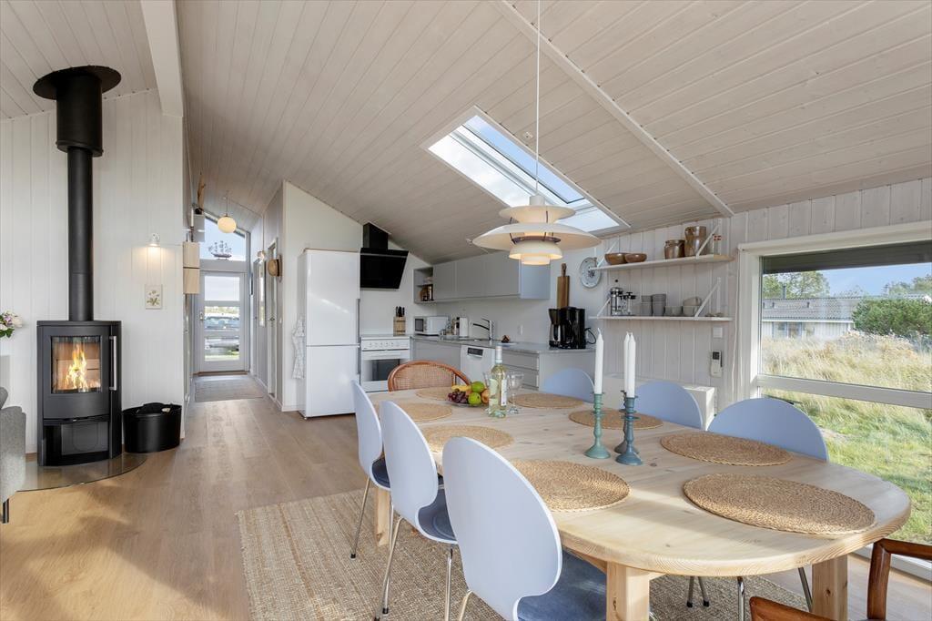 Sommerhus i Kjul Strand, Nordjylland, med plads til 4 voksne. Der er en hyggelig indretning med bl.a. brændeovn, og du finder desuden vaskemaskine og opvaskemaskine i boligen.