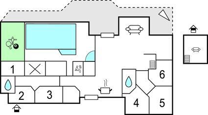 For enden af en blind vej ved Kjul Strand ligger dette store feriehus der byder på mange former for aktiviteter bl.a. swimmingpool, spabad, poolbord og bordtennis. Indretningen af huset er særdeles velegnet til at huse den store familie. Soverummene ligger tre og tre på hver side af køkken/alrummet/stuen med et badeværelse i hver afdeling. Dertil kommer hemsen med to madrasser, hvor børnene rigtig kan hygge sig. På terrassen kan I sidde med en god bog og nyde de lune sommerdage. Området byder på en fantastisk flot og indbydende hvid sandstrand hvor I kan gå skønne ture eller ligge og dase. Der er kun ca. 4 km til Hirtshals, som har en driftig fiskeri- og færgehavn med et autentisk fiskermiljø og gode butikker og hyggelige spisesteder. Sommetider kan man købe friskfanget fisk direkte fra de små fiskekuttere. Sportsfiskeren kan fiske ved molen eller tage på en af de arrangerede fisketure, hvor han kan være heldig at fange de helt store torsk ved Det Gule Rev. Golfentusiasten finder en 18-huller samt en 9-huller golfbane i smuk beliggenhed tæt ved Hirtshals. En god viden om livet i Nordsøen formidler det spændende Nordsømuseet i sine store akvarier samt Sælariet. Mod syd ligger det maleriske fiskerleje Lønstrup, hvor der endnu drives kystfiskeri og hvor fiskerbådene trækkes op på stranden. Lønstrup har mange gode restauranter, hyggelige cafeer, kunstgallerier og kunstværksteder, som i deres smykker, keramik, glas og malerier afspejler havets og sandets farvespil i det intense lys, som præger denne del af landet. Seværdige naturfænomener finder den interesserede ved den store vandreklit Råbjerg Mile, som begraver alt under sin vandring (op til 15 m årligt) mod øst.