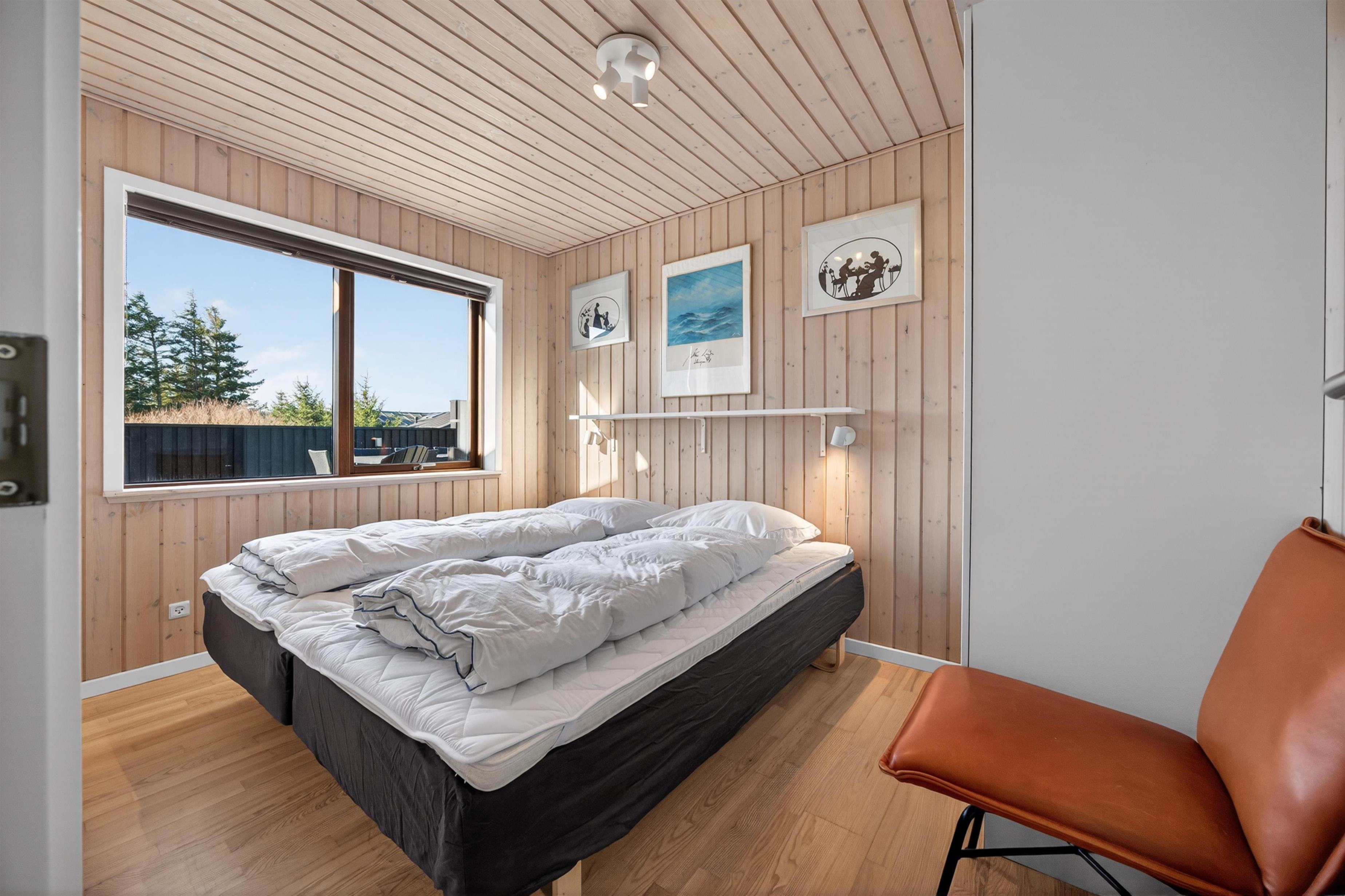 Husets naturlige samlingspunkt er det store opholdsrum, hvor det veludstyrede køkken ligger i åben forbindelse med spiseområdet. Her kan I samles om hyggelige måltider efter en dag ved stranden, mens udsigten sætter den perfekte stemning. I sofahjørnet venter ægte sommerhushygge foran brændeovnen – perfekt til brætspil, gode samtaler eller en stille stund med en bog.