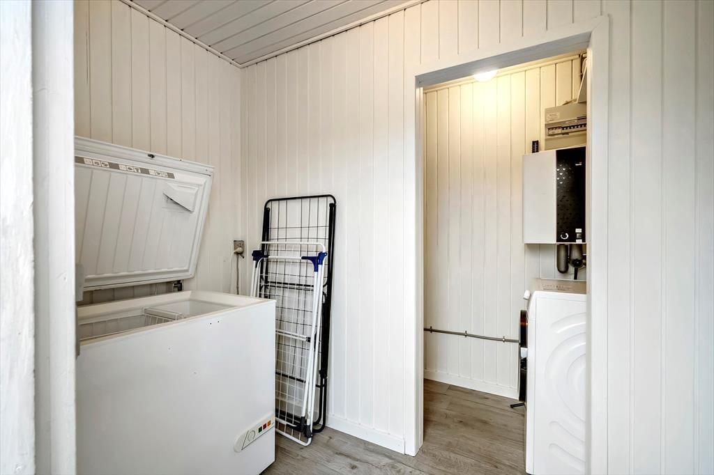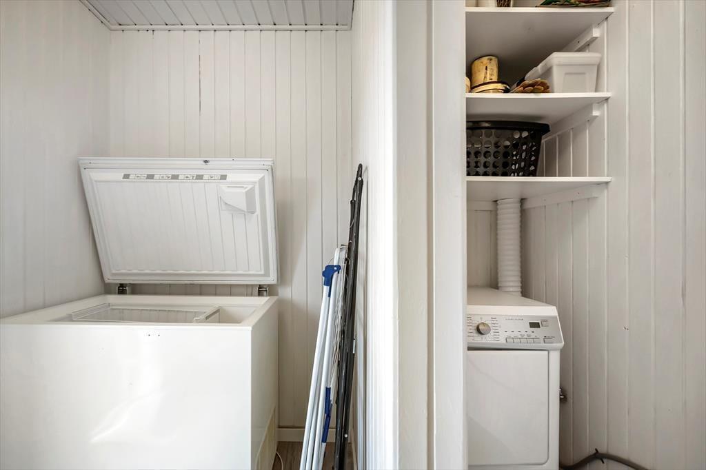 vaskemaskine, tørretumbler + stor fryser findes i integreret skur bag ved huset