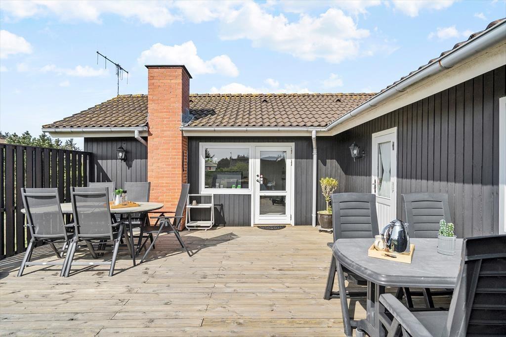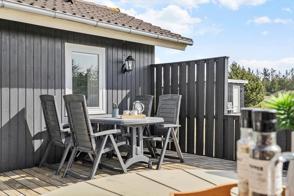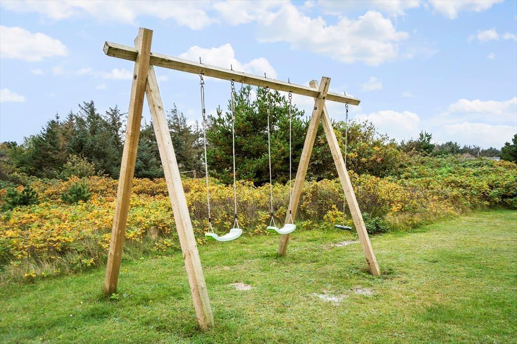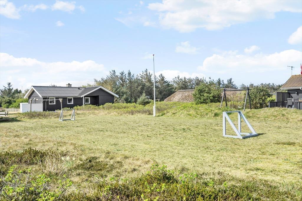 Den sydvendte træterrasse ligger godt i læ for vestenvinden, og her har I det ideelle sted at servere dagens måltider i solen eller bare slappe af i liggestolene. Grunden byder på gode muligheder for leg, for her er både et gyngestativ, en sandkasse og en fodboldbane. En udendørs fiskerenseplads samt et integreret skur med fryser gør feriehuset ideelt til lystfiskeren. Samtidig er her et aflåst skur med plads til at opbevare cykler, fiskestænger eller surfgrej.