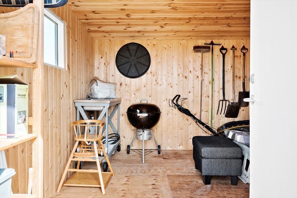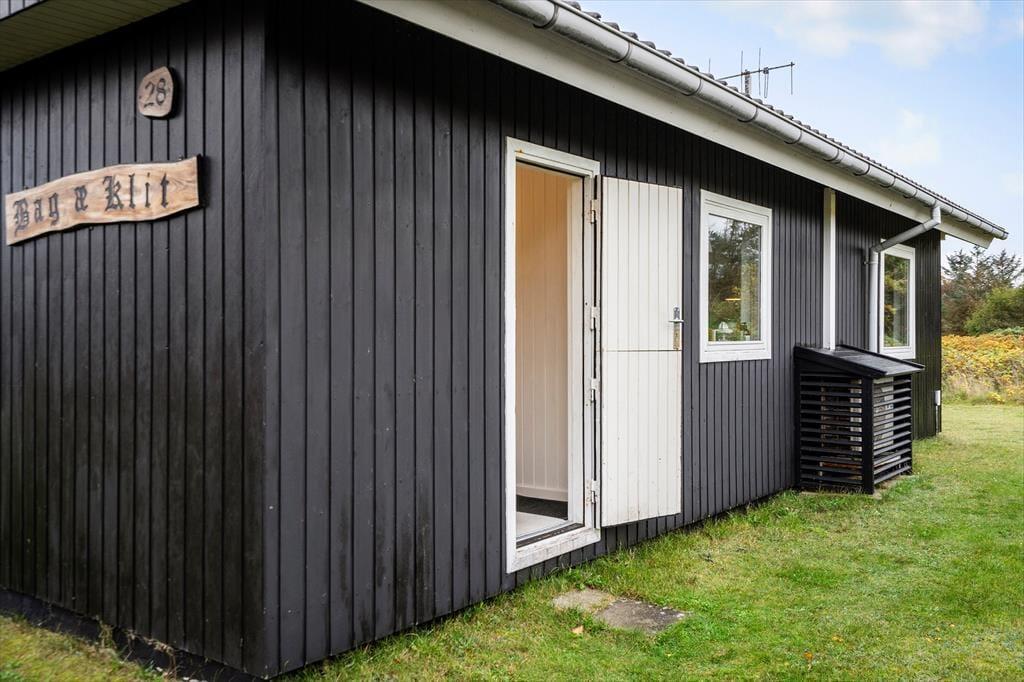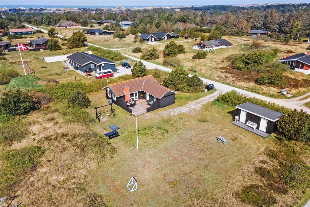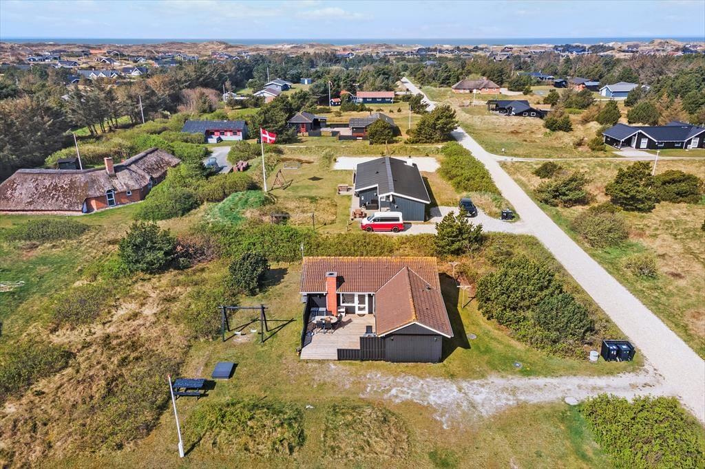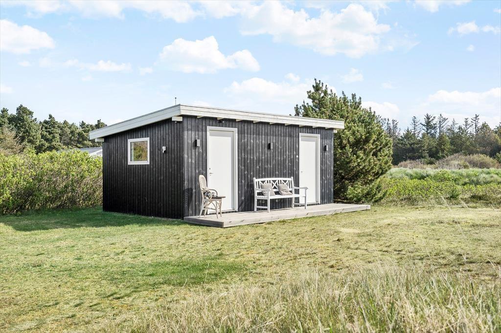 Den sydvendte træterrasse ligger godt i læ for vestenvinden, og her har I det ideelle sted at servere dagens måltider i solen eller bare slappe af i liggestolene. Grunden byder på gode muligheder for leg, for her er både et gyngestativ, en sandkasse og en fodboldbane. En udendørs fiskerenseplads samt et integreret skur med fryser gør feriehuset ideelt til lystfiskeren. Samtidig er her et aflåst skur med plads til at opbevare cykler, fiskestænger eller surfgrej.