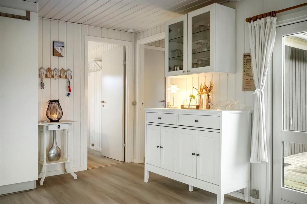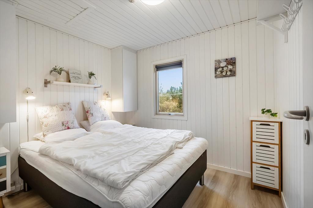 Sommerhuset er gennem den senere årrække blevet løbende renoveret, og I kan glæde jer til at bruge feriedagene i en velfungerende feriebolig med stemning og atmosfære. Husets tre soveværelser kan i alt rumme seks personer, og badeværelset, som blev renoveret i 2020, er indrettet med bruseniche. I opholdsafdelingen glider køkkenet og stuen i ét, og her kan I være sammen om at lave mad, mens de lækre retter let serveres ved spisebordet. Et sofaarrangement med tv giver mulighed for hyggelige filmaftener, men her er også god plads til at dyste i brætspil eller slappe af med spændende romaner. Varmepumpen og et skønt lysindfald fra tre verdenshjørner skaber en behagelig atmosfære, og hyggen er helt i top, når ilden knitrer i brændeovnen.