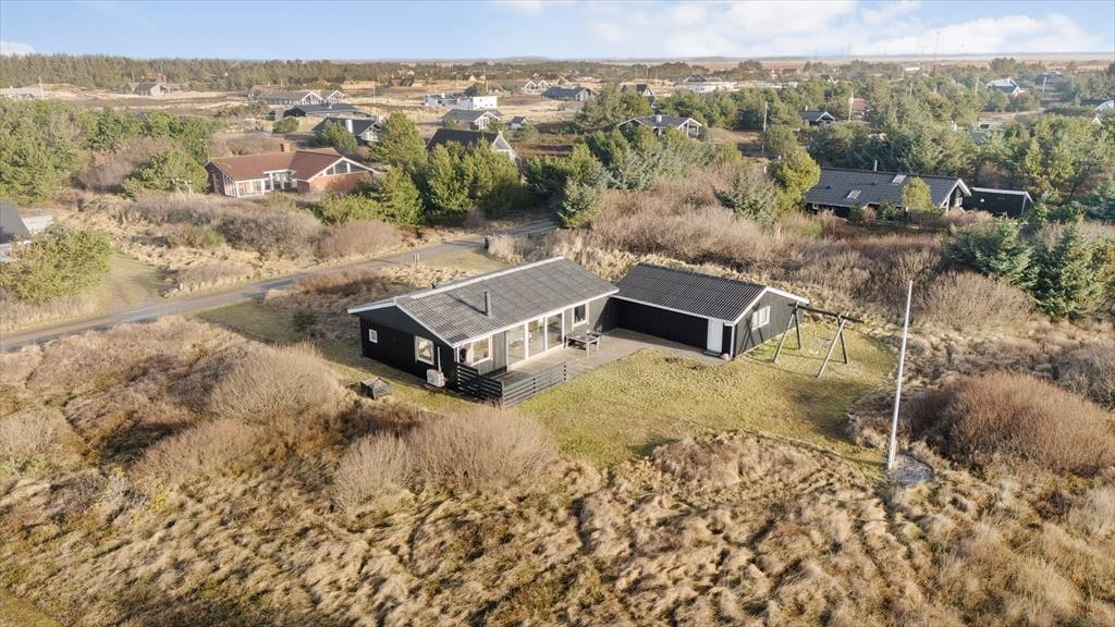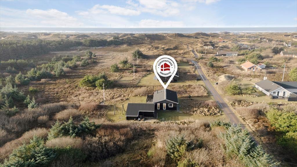 Omgivelserne omkring sommerhuset er fredelige, for Lyngdraget ender blindt, og I bor lige ud mod et naturskønt areal. De høje klitter, der markerer overgangen til Søndervig Strand, ligger kun få hundrede meter væk, og turen til Vesterhavet kan oplagt foregå til fods gennem det smukke landskab. Her på Holmsland Klit har I også kort afstand til Ringkøbing Fjord, så hvis I vil, kan I opleve såvel solopgangen som solnedgangen over vandet på samme dag. Surfing, badeture og lystfiskeri kan også oplagt blive del af ferien, og hvis I får lyst til en stor is, en tur på golfbanen eller aftensmad på en restaurant, kan I køre til feriebyen Søndervig på få minutter.