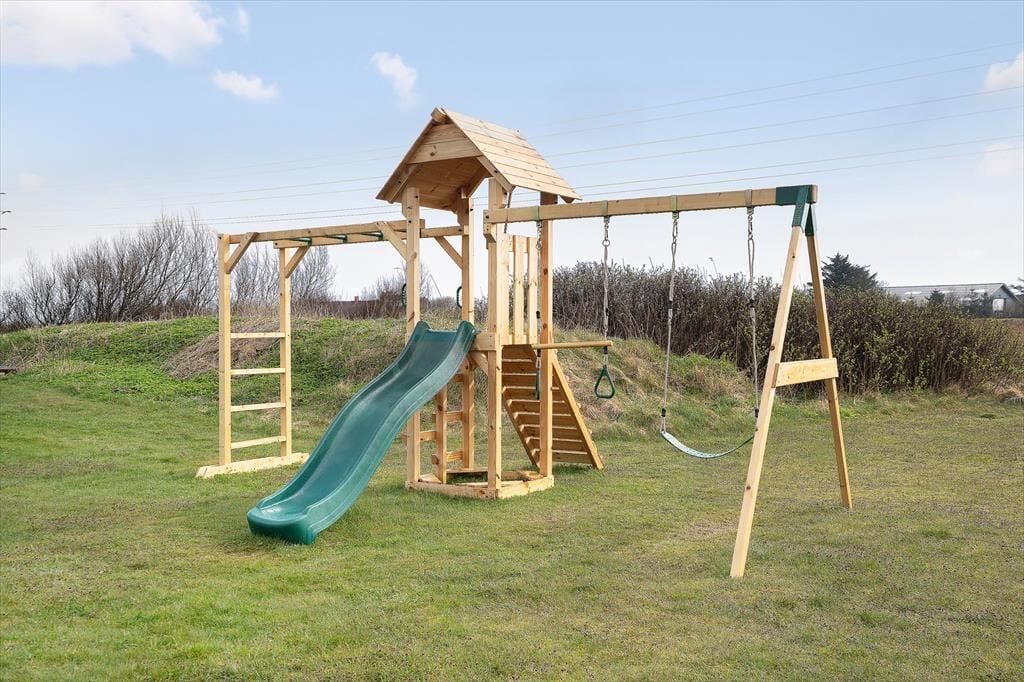 Boligen er på 106 m² og ligger på en 3.372 m² stor grund, hvor der bl.a. er gynge.