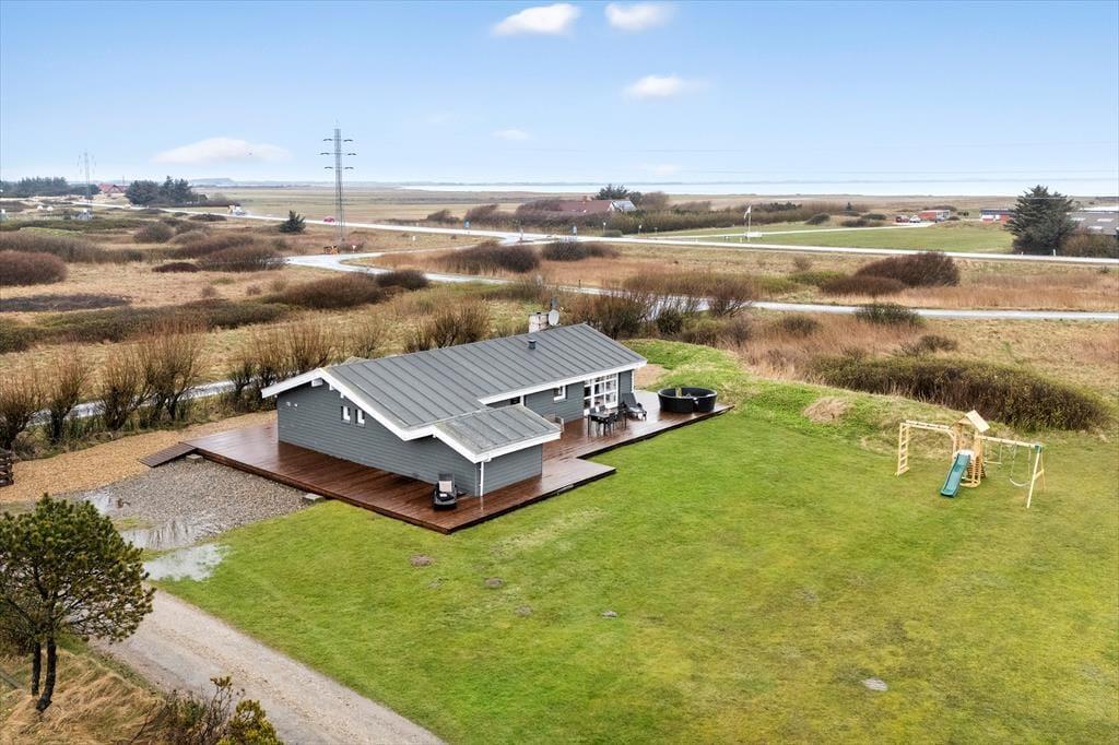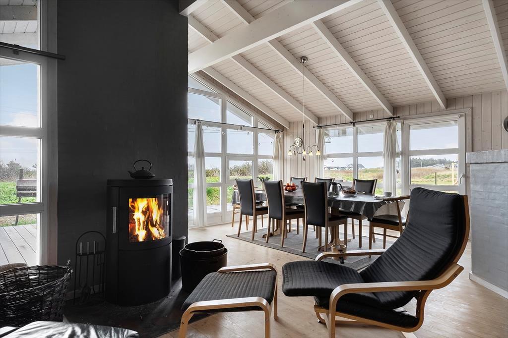 Sommerhus i Klegod, Vestjylland, med plads til 8 voksne og 1 husdyr. Der er en hyggelig indretning med bl.a. brændeovn, og du finder desuden vaskemaskine, opvaskemaskine og tørretumbler i boligen.