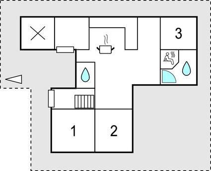 Badeværelse (nr. 2) - WC. Varmt og koldt vand. Bruser