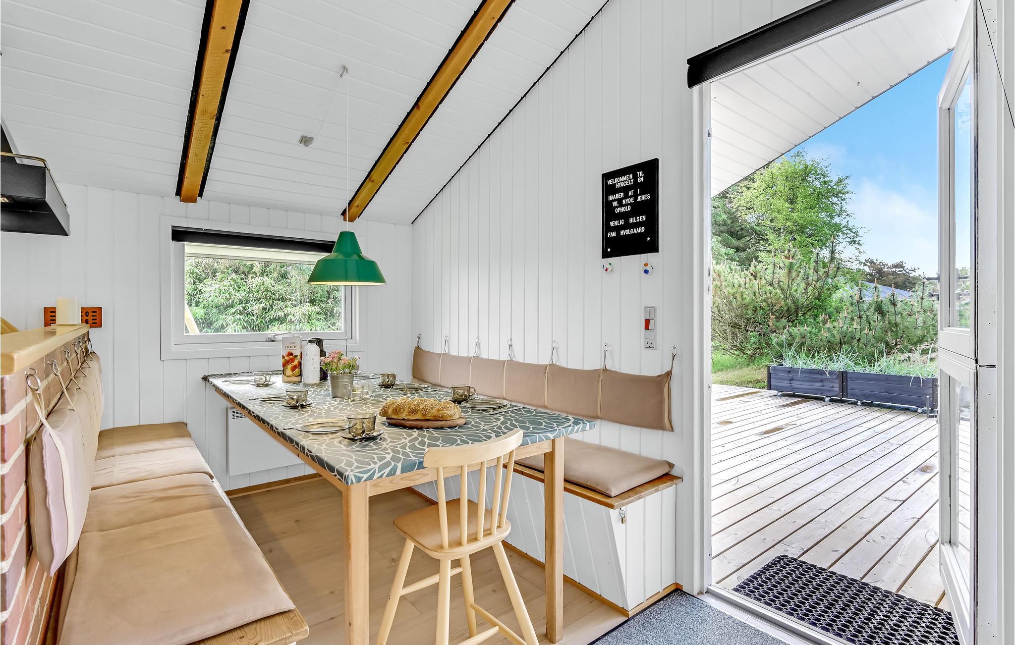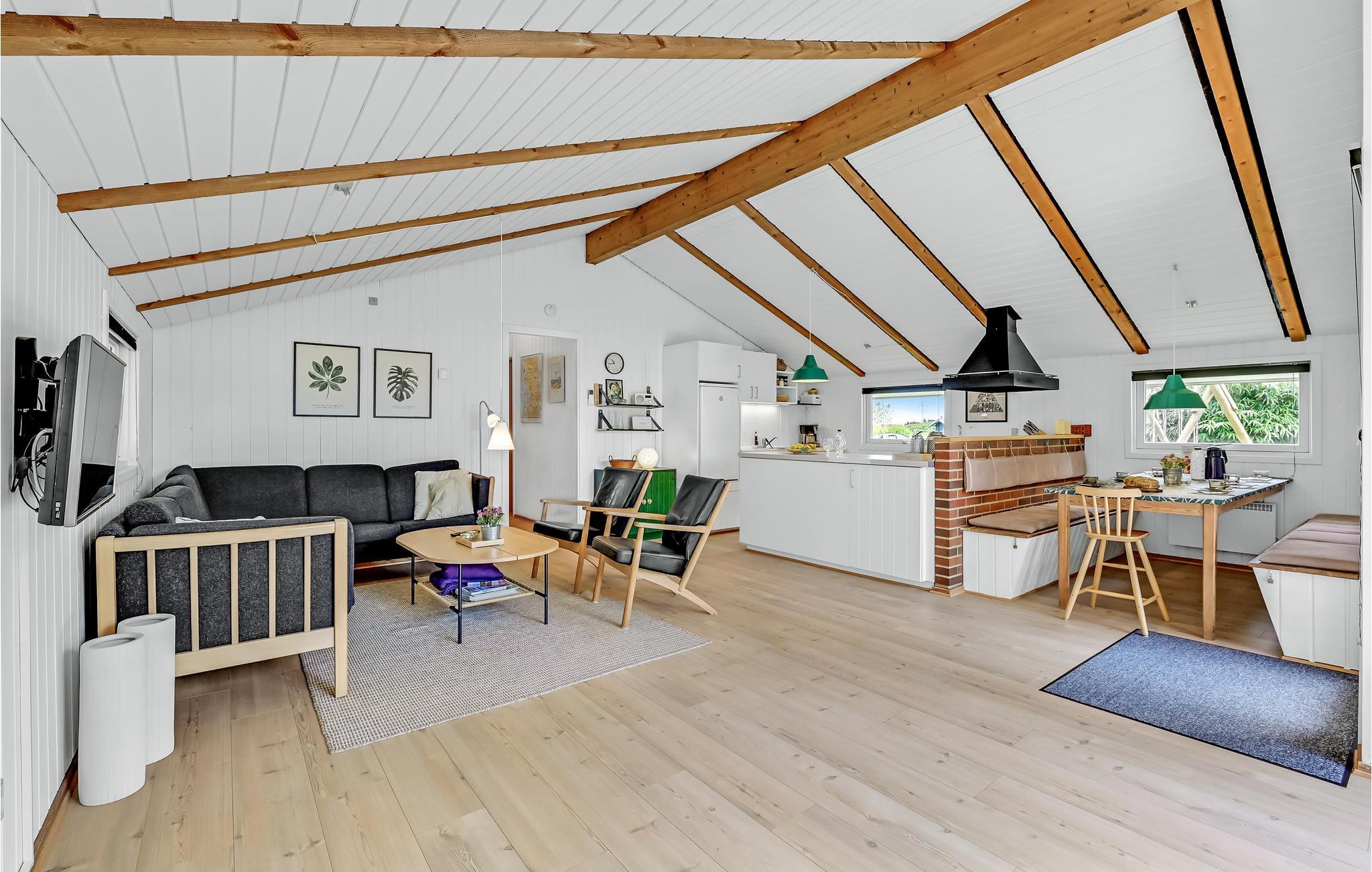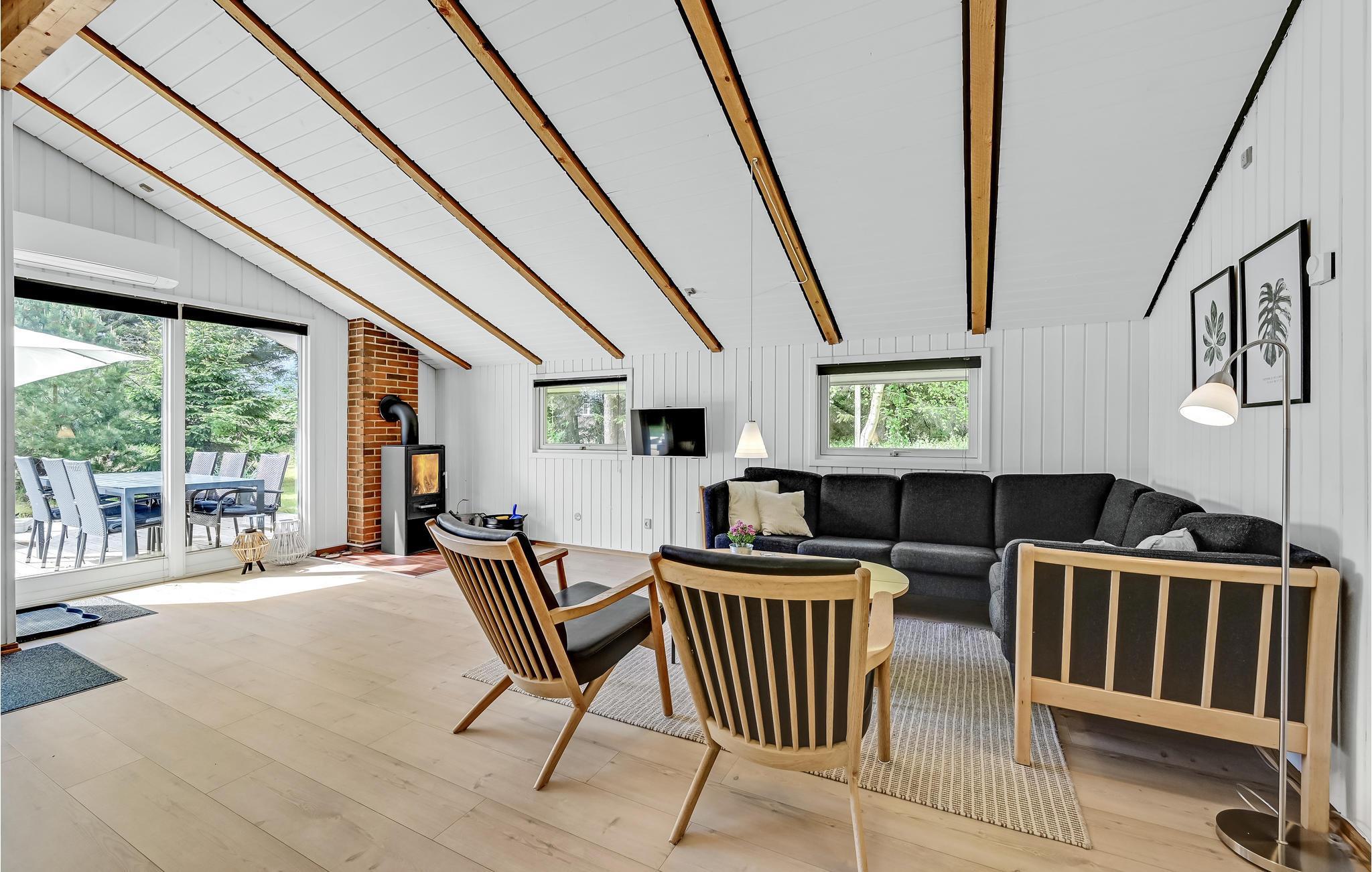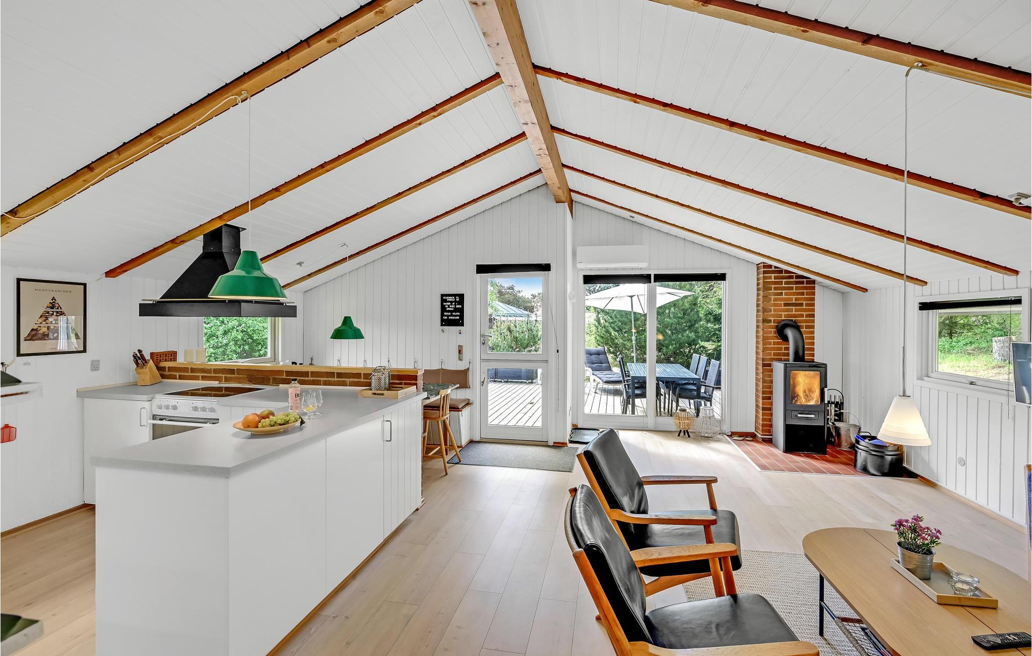Træpanelerne og de lyse vægge skaber en solrig og behagelig atmosfære, hvor I hurtigt kommer til at føle jer hjemme. Her kan I hygge jer med familien og tilbringe en afslappende ferie uden at skulle mangle noget. Afhængigt af humøret kan I sidde udenfor på et skyggefuldt eller solrigt sted, spise morgenmad sammen, grille eller læne jer tilbage på en liggestol og varme jer i solens stråler.