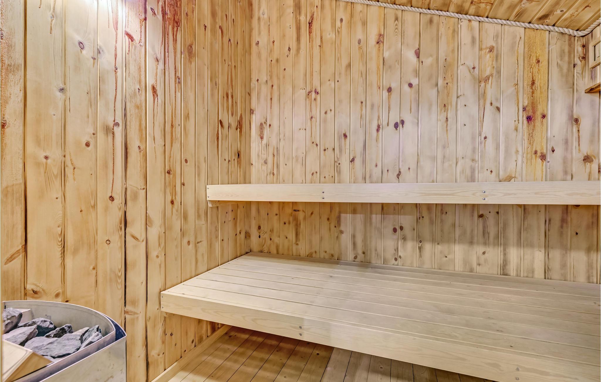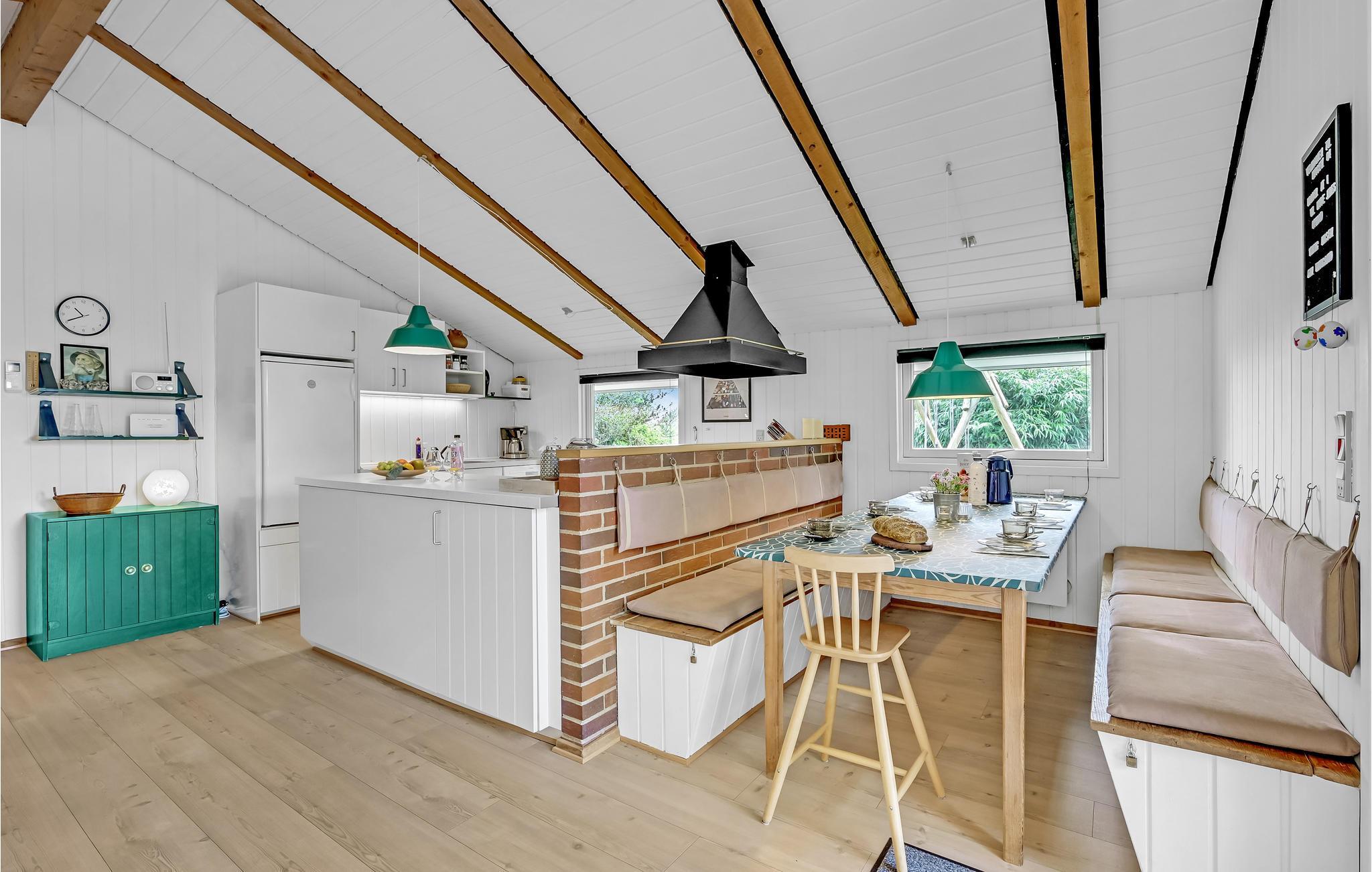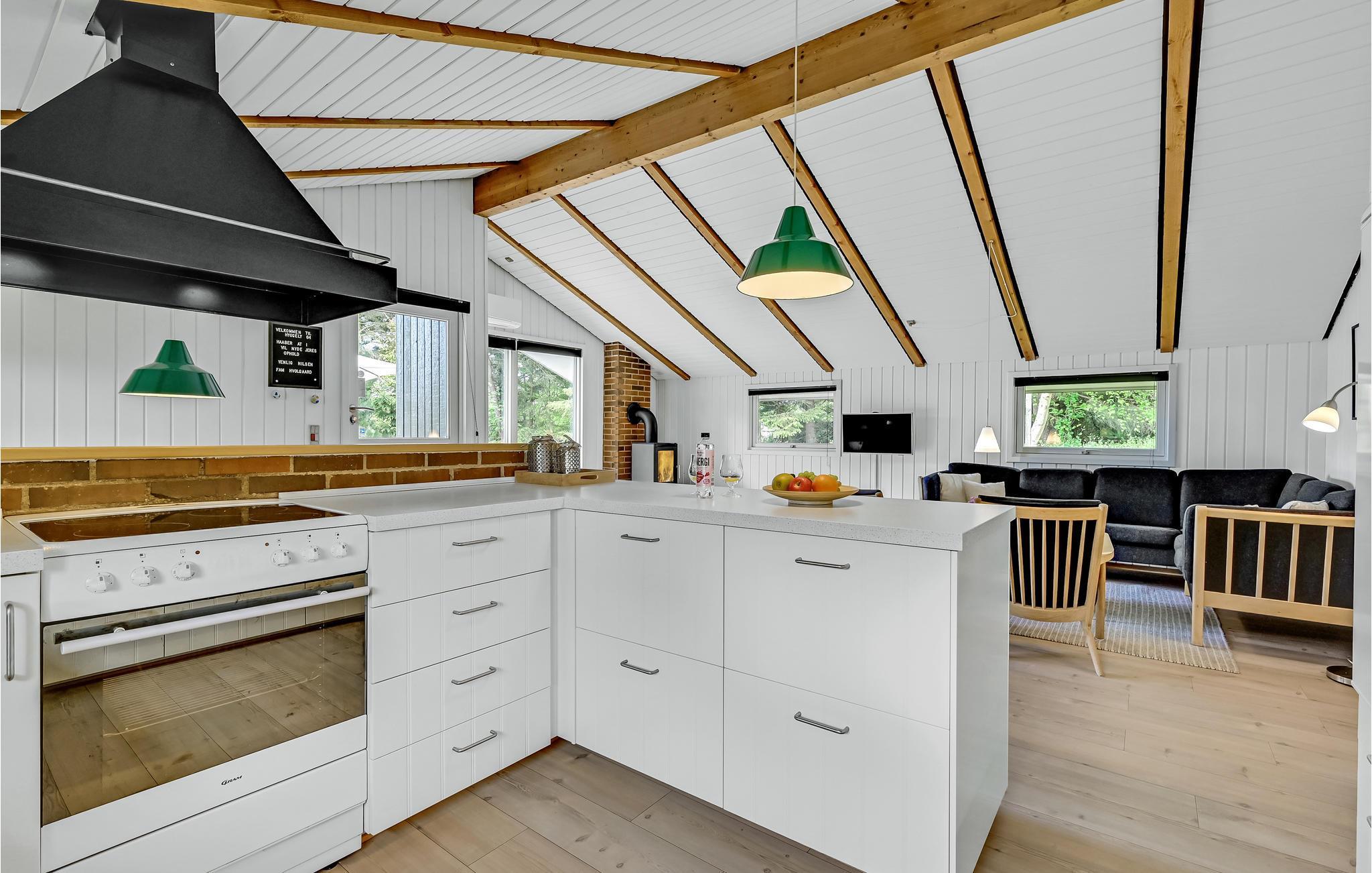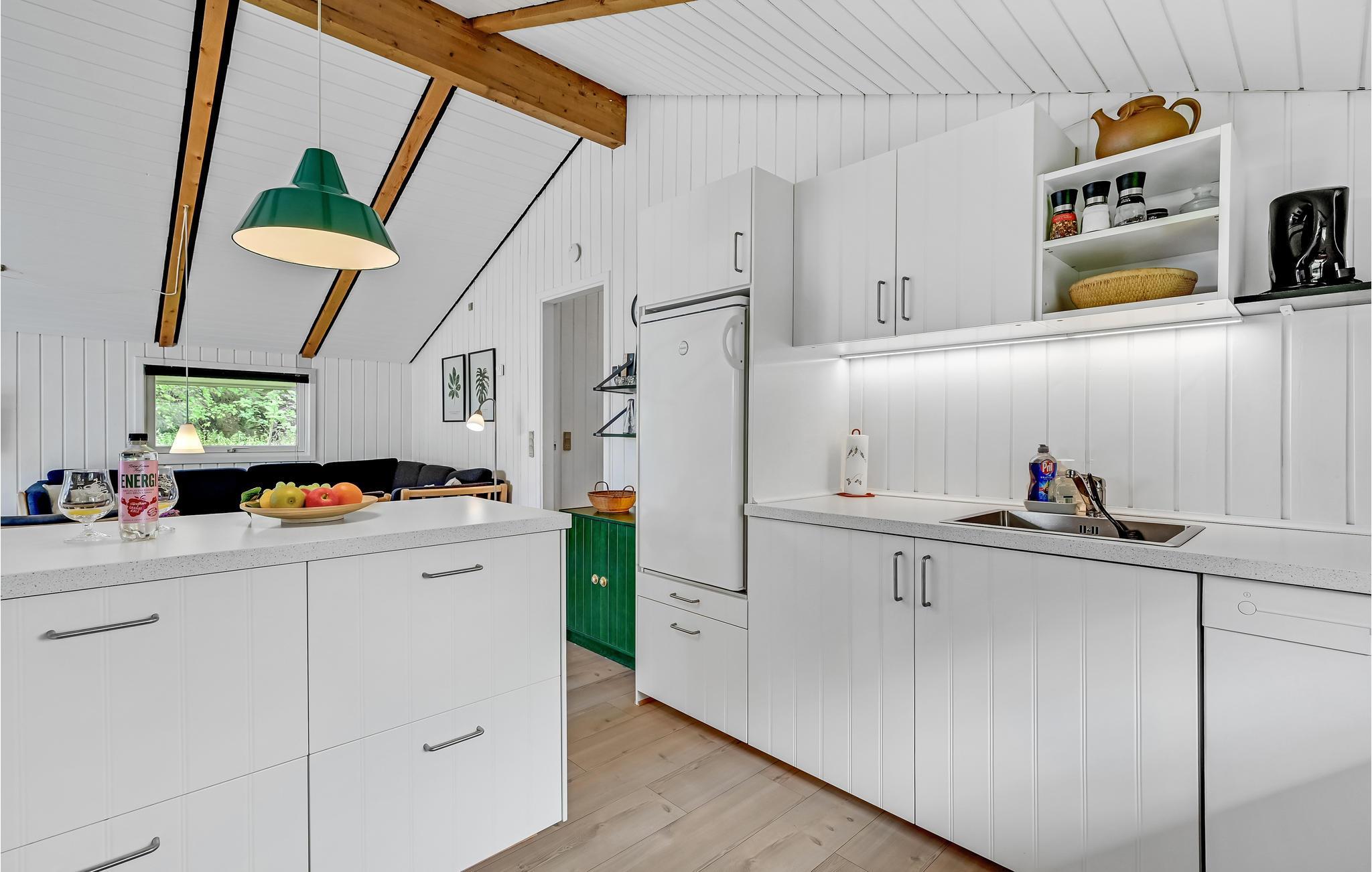 Træpanelerne og de lyse vægge skaber en solrig og behagelig atmosfære, hvor I hurtigt kommer til at føle jer hjemme. Her kan I hygge jer med familien og tilbringe en afslappende ferie uden at skulle mangle noget. Afhængigt af humøret kan I sidde udenfor på et skyggefuldt eller solrigt sted, spise morgenmad sammen, grille eller læne jer tilbage på en liggestol og varme jer i solens stråler.