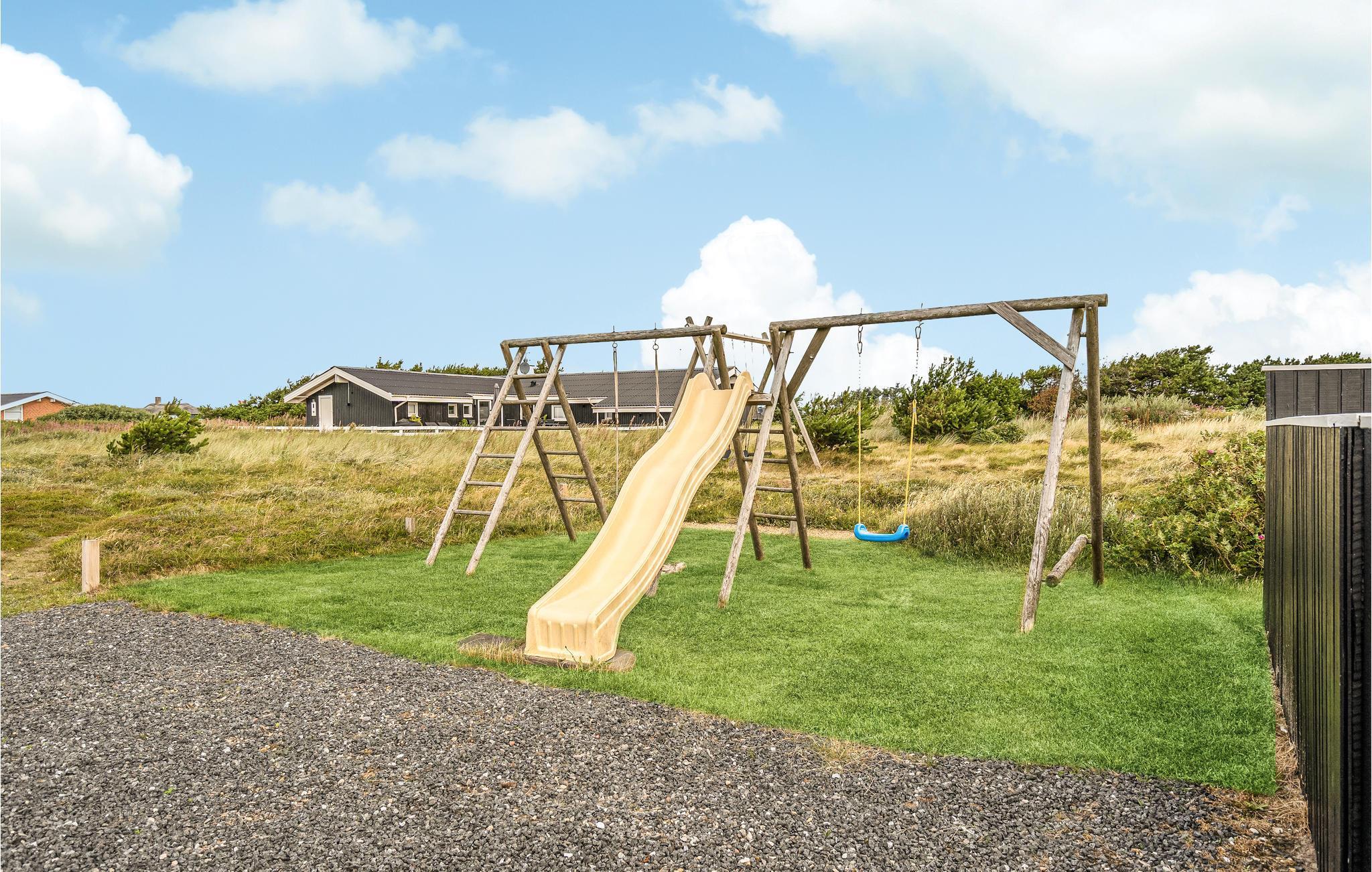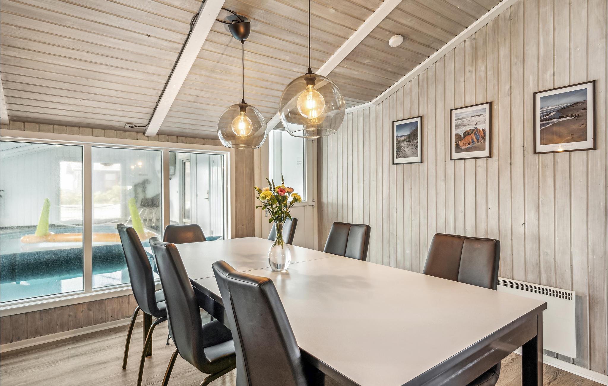 I kan se frem til en herlig pause fra hverdagen i de smukke omgivelser på Holmsland Klit, hvor I bor med kort afstand til hav og fjord. Efter nogle dejlige timer på stranden eller en frisk gåtur i området kan I vende hjem til husets hyggelige rammer, som ligger ud til grønne marker og et åbent landskab. Opholdsområdet bliver centrum for fælles aktiviteter, lige fra dagens måltider til filmaftener og rolige stunder med brætspil og ild i brændeovnen. Det bliver en god ferie, uanset hvordan vejret arter sig, for I kan altid komme ud at bade i den store indendørspool, og hvis I trænger til at få varmen efter en lang gåtur, kan I sætte jer til rette i spabadet eller saunaen.