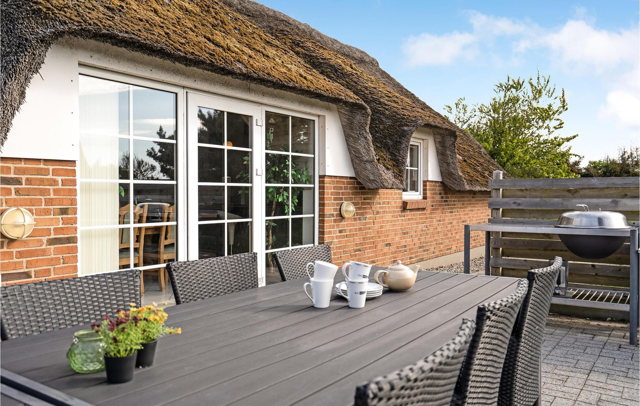 Hyggeligt feriehus i Klegod med brændeovn, sauna og spabad tæt på strand og klitter.