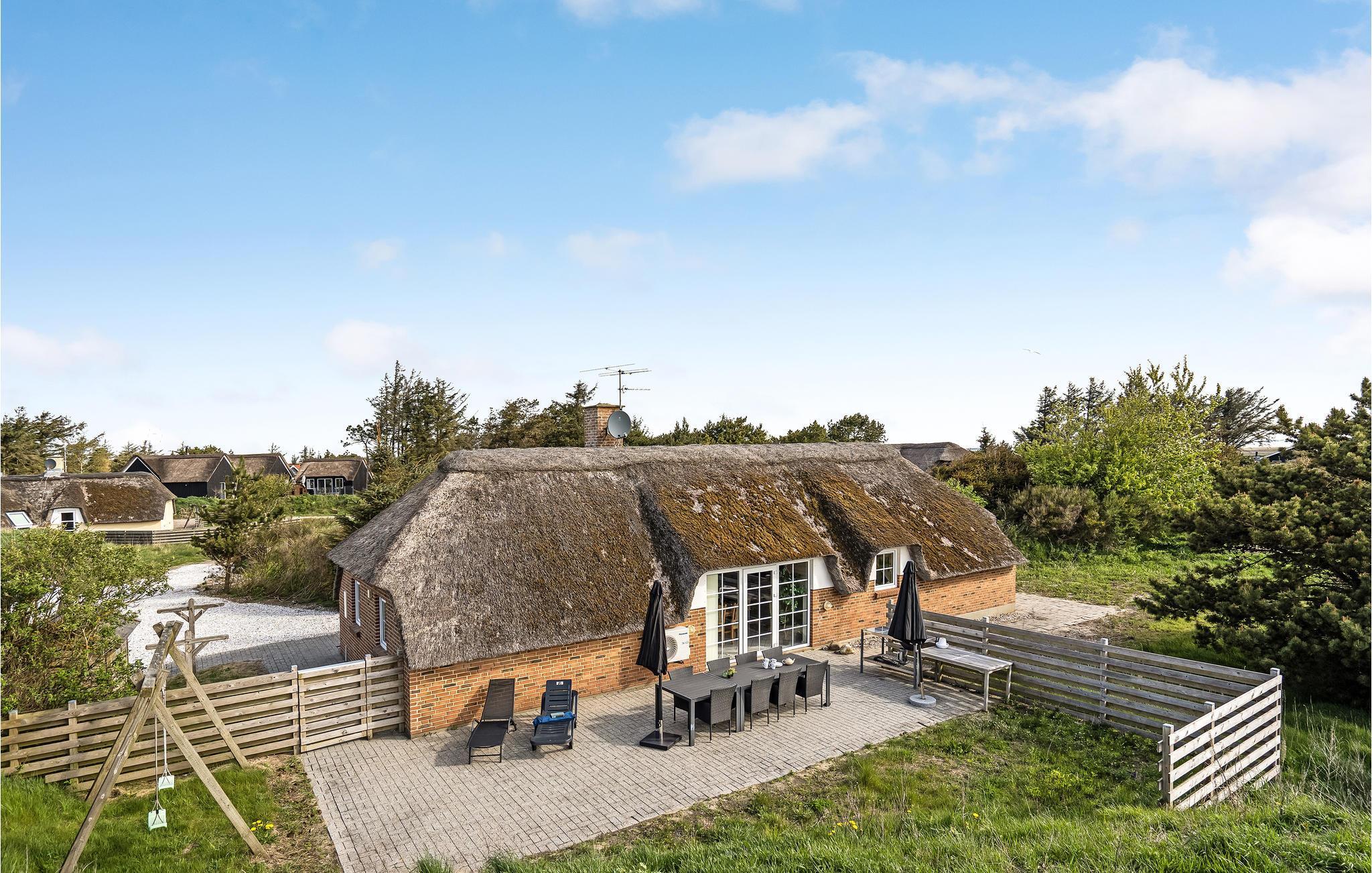 Beliggende i det attraktive område Klegod - kendt for både hav, strand, klit og fjord - ligger dette rummelige og velholdte feriehus. Huset er hyggeligt indrettet med plads til alle omkring spisebordet og udstyret med en brændeovn, der vender mod stuen. Tre gode soveværelser samt en hems med madrasser (med trappe op fra stuen) giver plads til otte personer. Nyd ferielivet på terrassen i havemøblerne med en god bog, tag et spil kort eller spil bold på den store klitgrund. Huset ligger mellem Hvide Sande og Søndervig, hvor I finder et hav af oplevelser og aktiviteter som bl.a. lystfiskeri, vandsort, badeland, gode spisesteder og et rigt handelsliv.