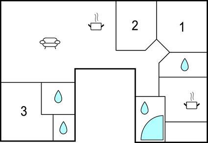 Badeværelse (nr. 3) - Varmt og koldt vand. Bruser