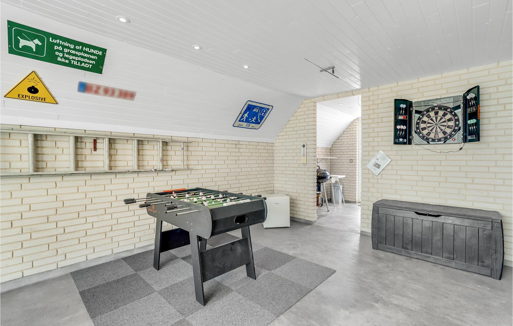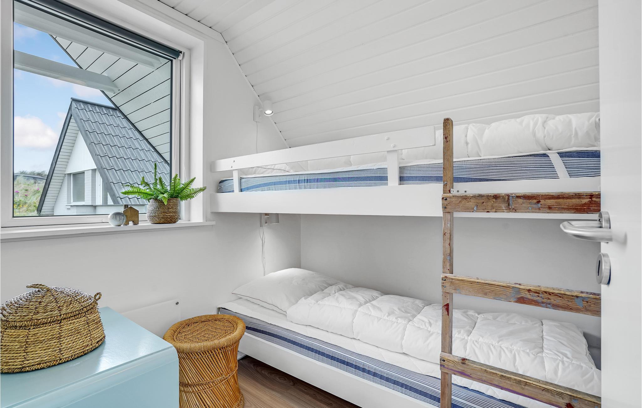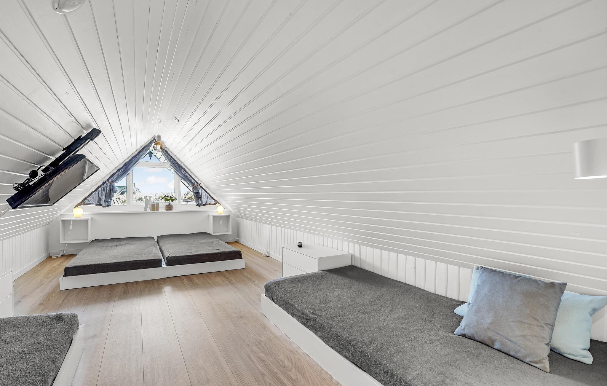 Huset består af 3 soveværelser hvoraf de to har dobbeltsenge og det sidste har køjesenge, som familiens yngste vil elske. Der er desuden 2 madrasser på hemsen, der kan fungere som TV- og legestue for ungerne, mens de voksne kan slappe af i stuen, hvor der findes endnu et TV. Huset har et badeværelse med bruser samt et gæstetoilet. Det er desuden veludstyret med blandt andet varmepumpe, så I let kan regulere temperaturen.