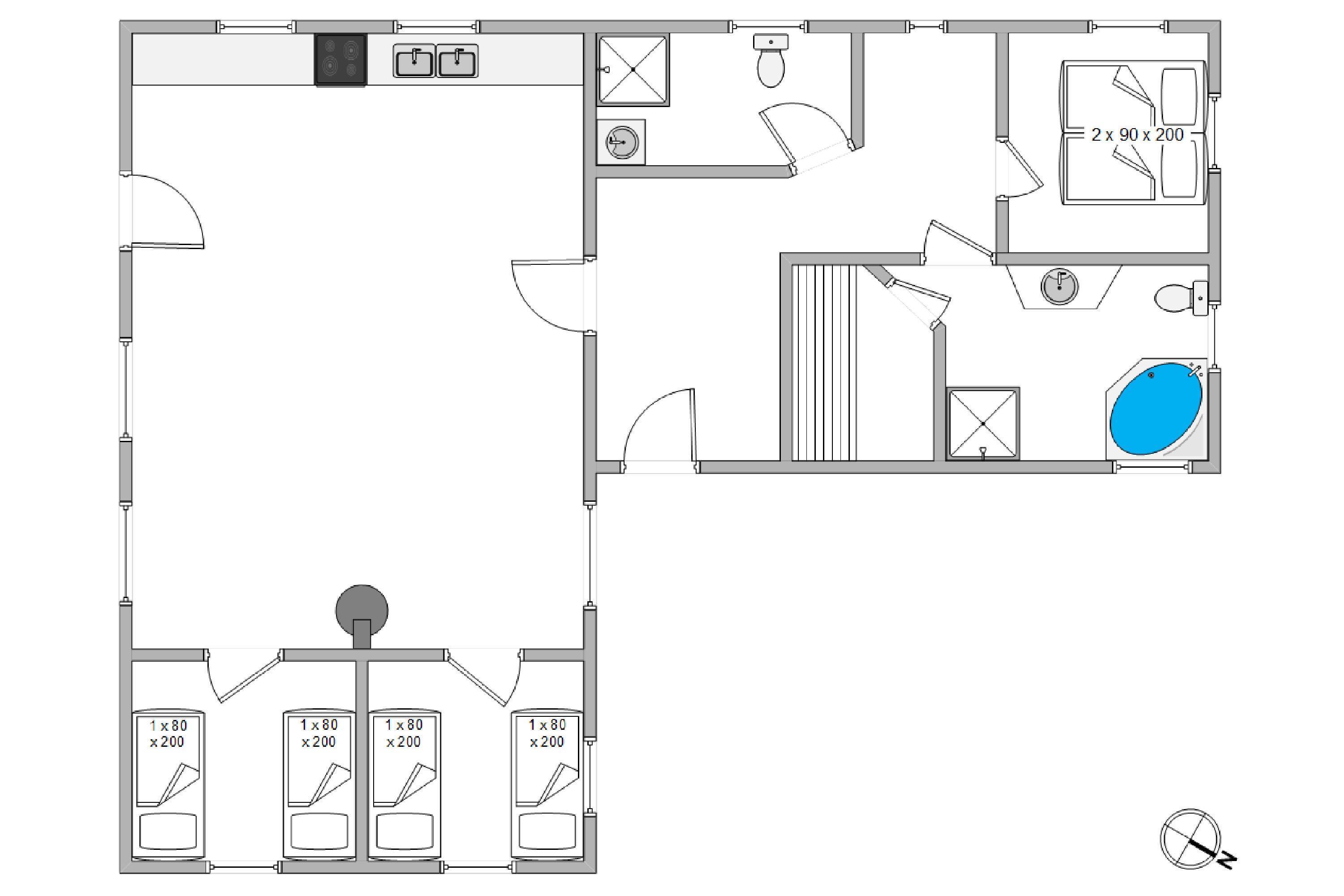 I dette skønne sommerhus med plads til 6 personer er der en rigtig god og meget hyggelig indretning. Her er 3 dejlige soveværelser, hvoraf det ene er med dobbeltseng og de andre værelser er med enkeltsenge. Sommerhusets to badeværelser, som er blevet renoveret i 2024, er begge er med gulvvarme og bruser. I det store badeværelse finder du endvidere sauna og spa. Overalt i sommerhuset er der trægulv med gulvvarme og i den komfortabelt møblerede stue er der en brændeovn, som både giver en masse varme, men også giver en rigtig hyggelig stemning. Sommerhuset byder desuden på gratis trådløs internet, kaffemaskine og alt i hårde hvidevarer; så som opvaskemaskine, vaskemaskine og tørretumbler.
