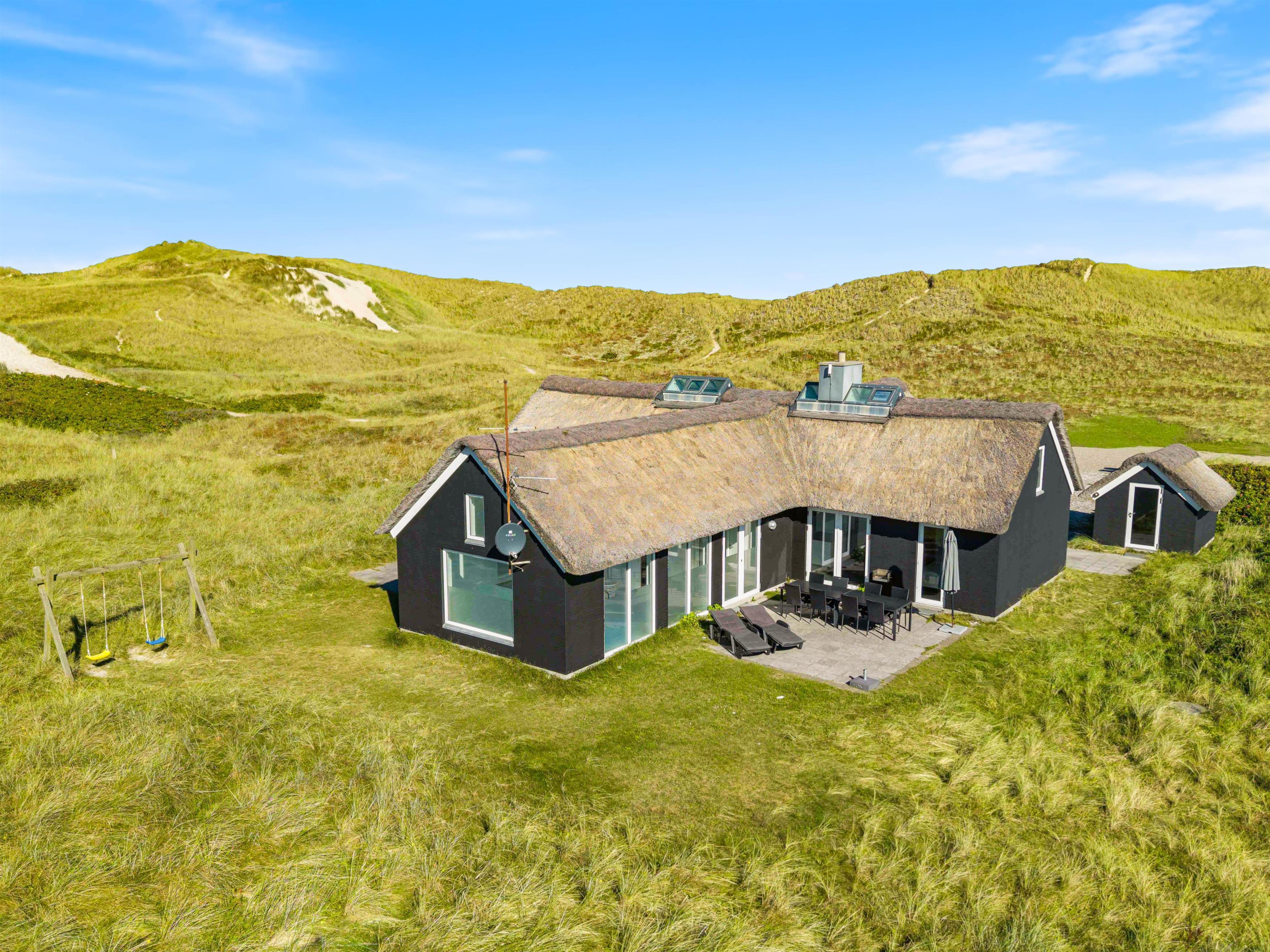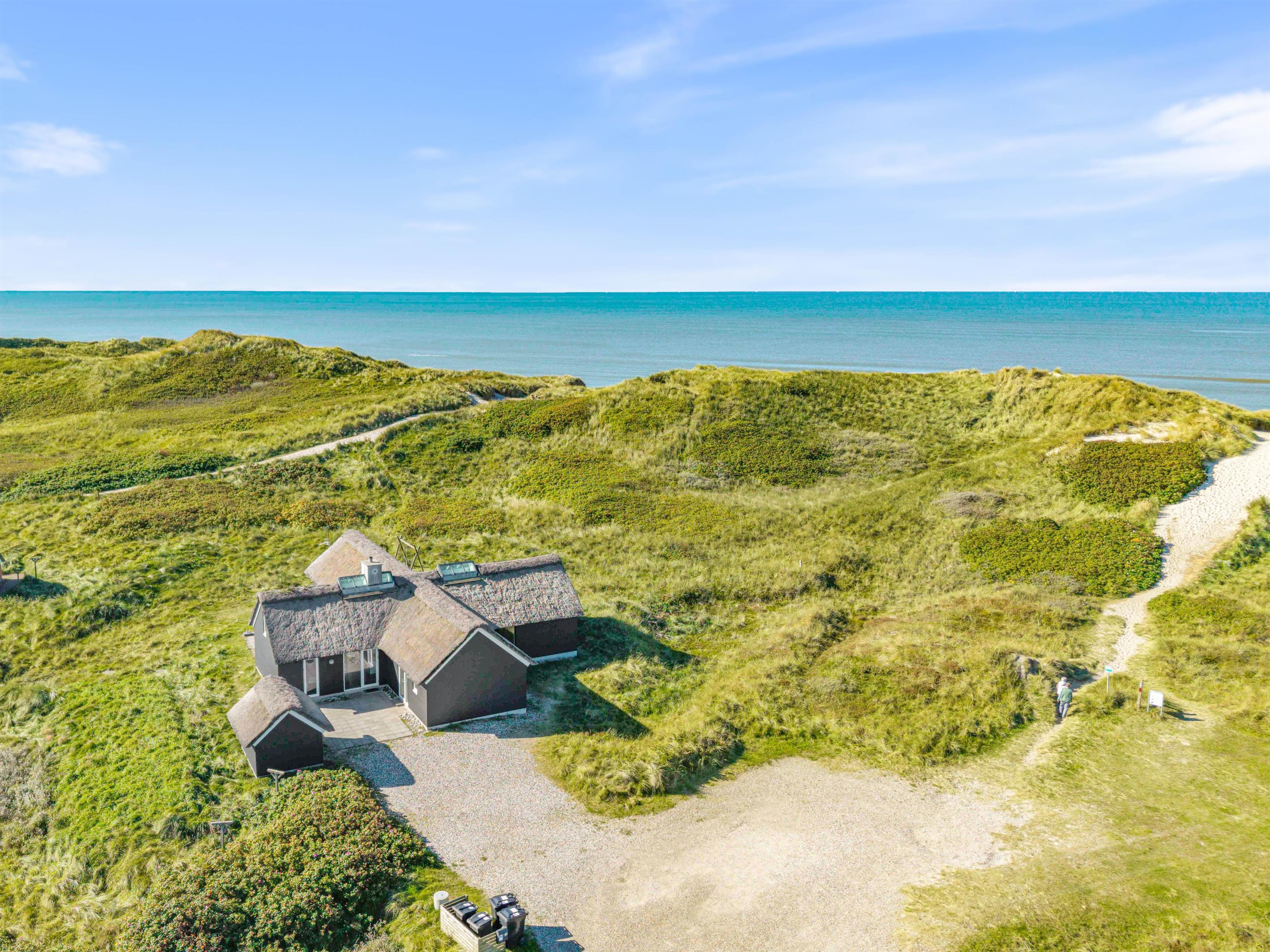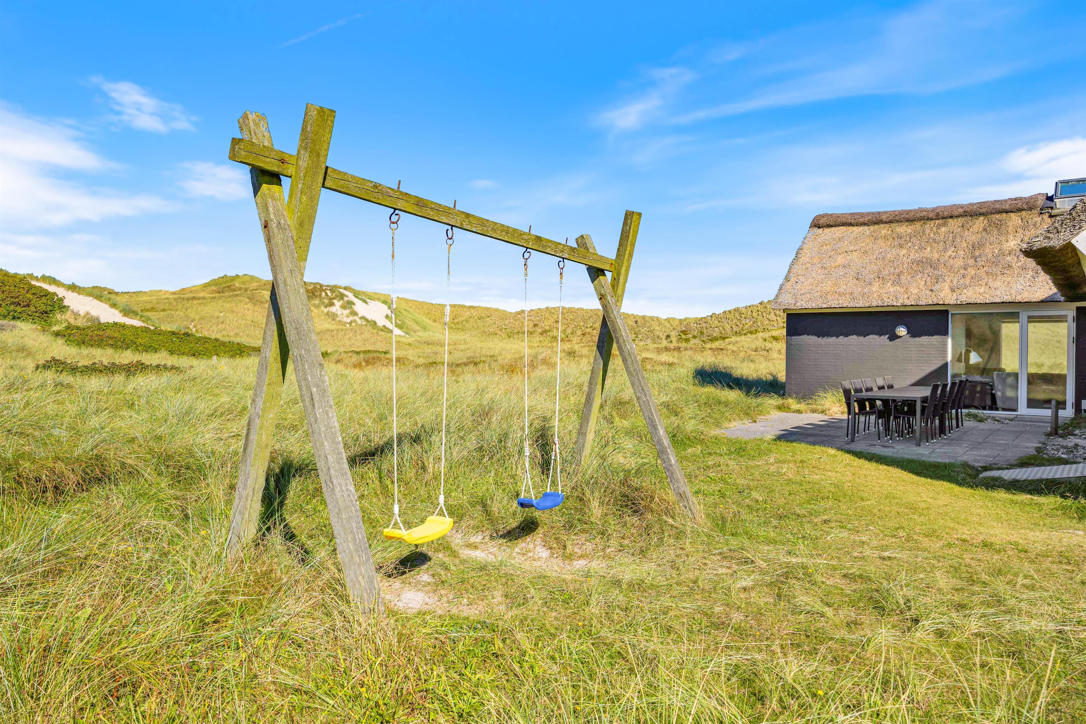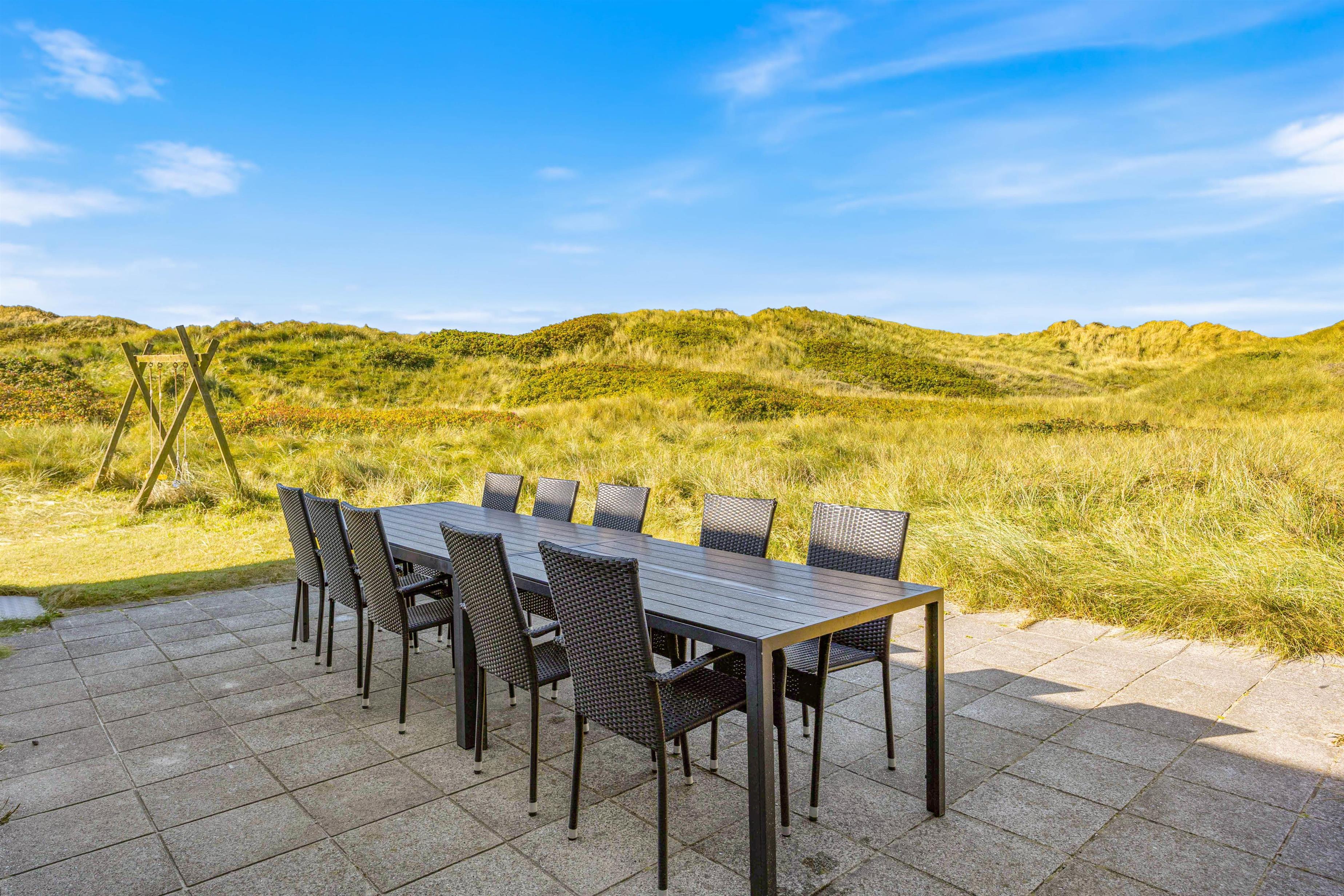 Sommerhuset har en dejlig beliggenhed på en skøn naturgrund et stenkast fra Vesterhavets brusende bølger og dejligt, hvidt strandsand. Er du frisk på en morgendukkert, har du kun et par få minutteres gang til vandet. Huset har desuden to flotte terrasser mod øst og vest og med både havemøbler, liggestole og gril.
