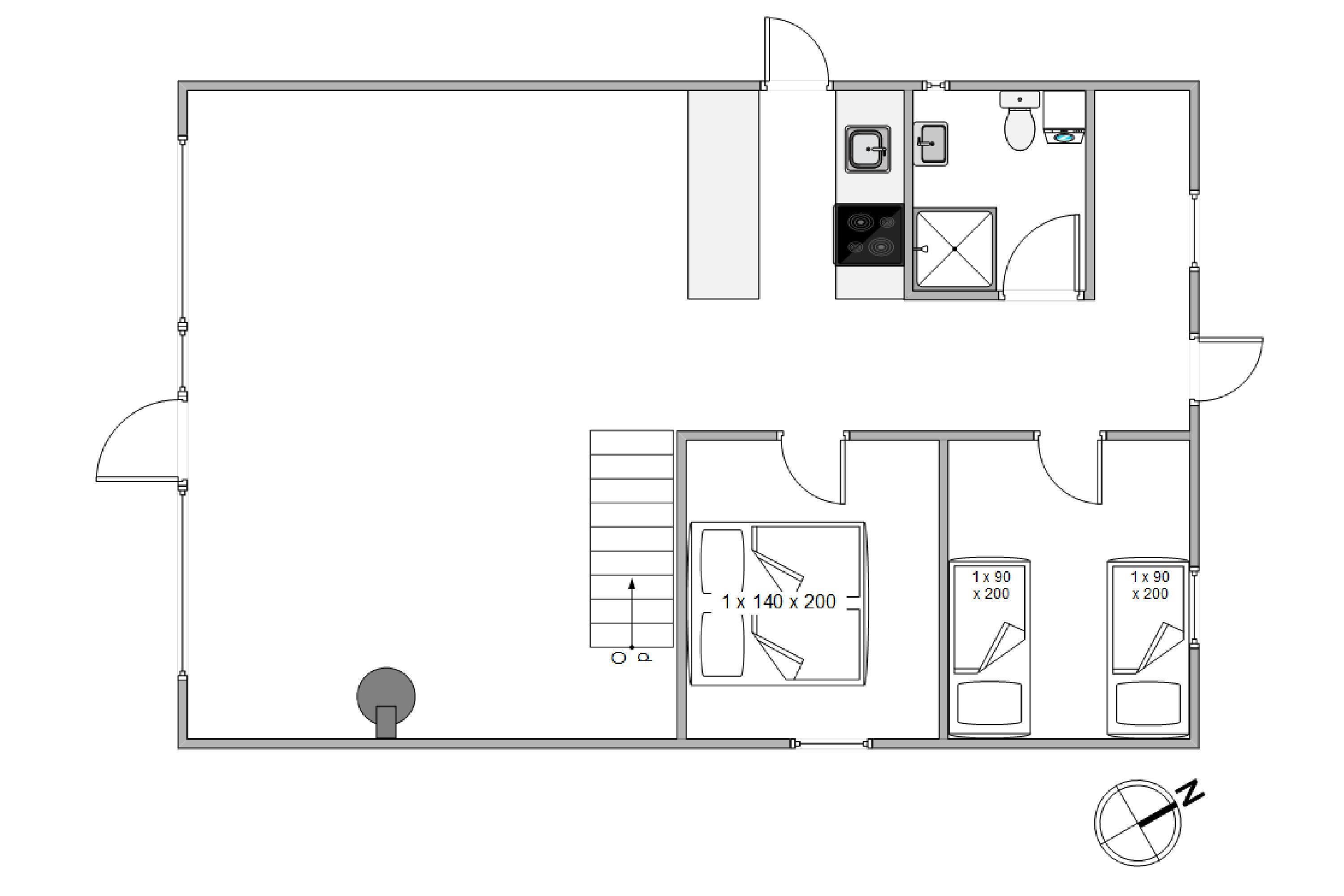 Hemsen er perfekt til børnene, og derudover er der 2 gode soverum. Køkkenet er veludstyret med opvaskemaskine, og I får også en vaskemaskine, så ungernes tøj hurtigt kan blive rent igen efter en dag med leg i naturen.