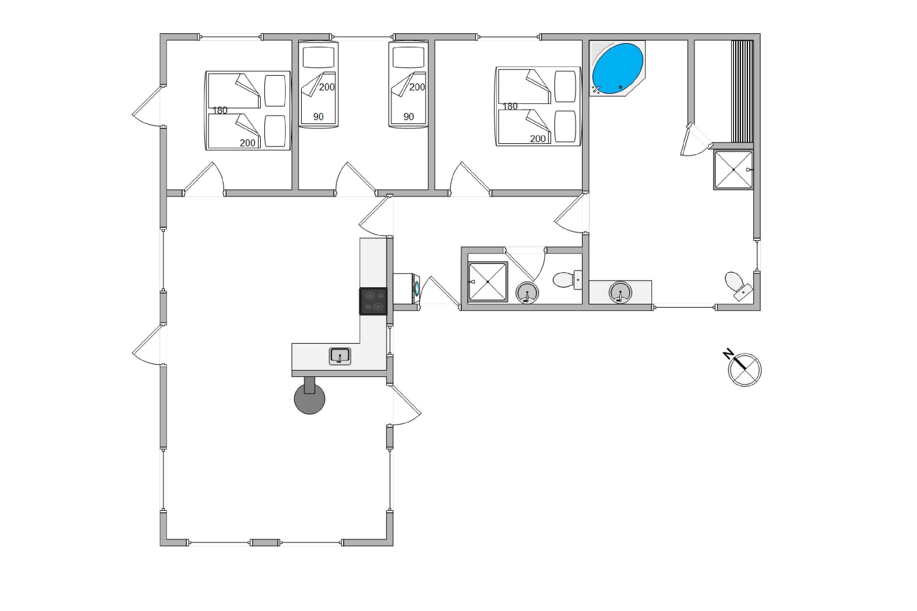 I dette hus er der både spa og sauna og en vaskemaskine