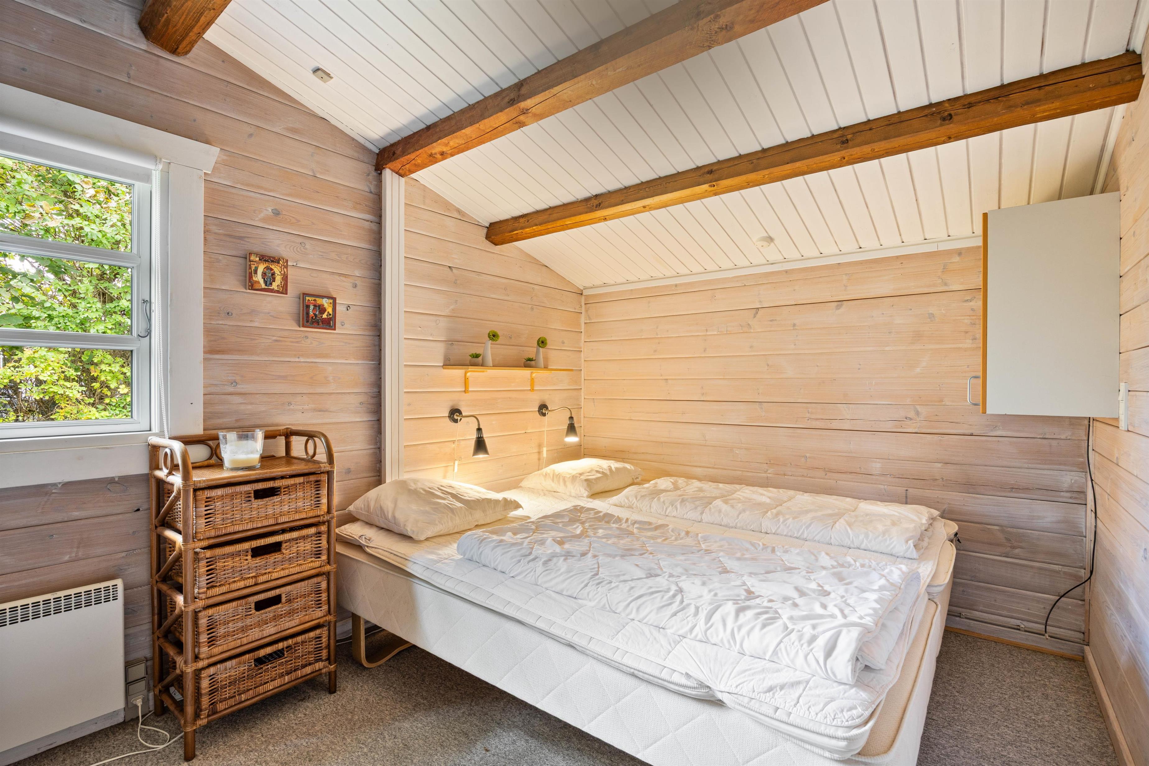 Feriehuset er hyggeligt indrettet i den mere traditionelle stil, så den gode feriestemning mærkes med det samme, du træder ind ad døren. Både bjælkerne i loftet og de mange detaljer i huset gør, at stemningen for samvær og kvalitetstid med familien er sat. Huset har i slutningen af 2019 fået lagt nyt trægulv i køkken-alrummet, stuen samt i gangen. I de tre soveværelser er der behageligt gulvtæppe. De 8 sovepladser er fordelt over 3 dobbeltsenge og en køjeseng.