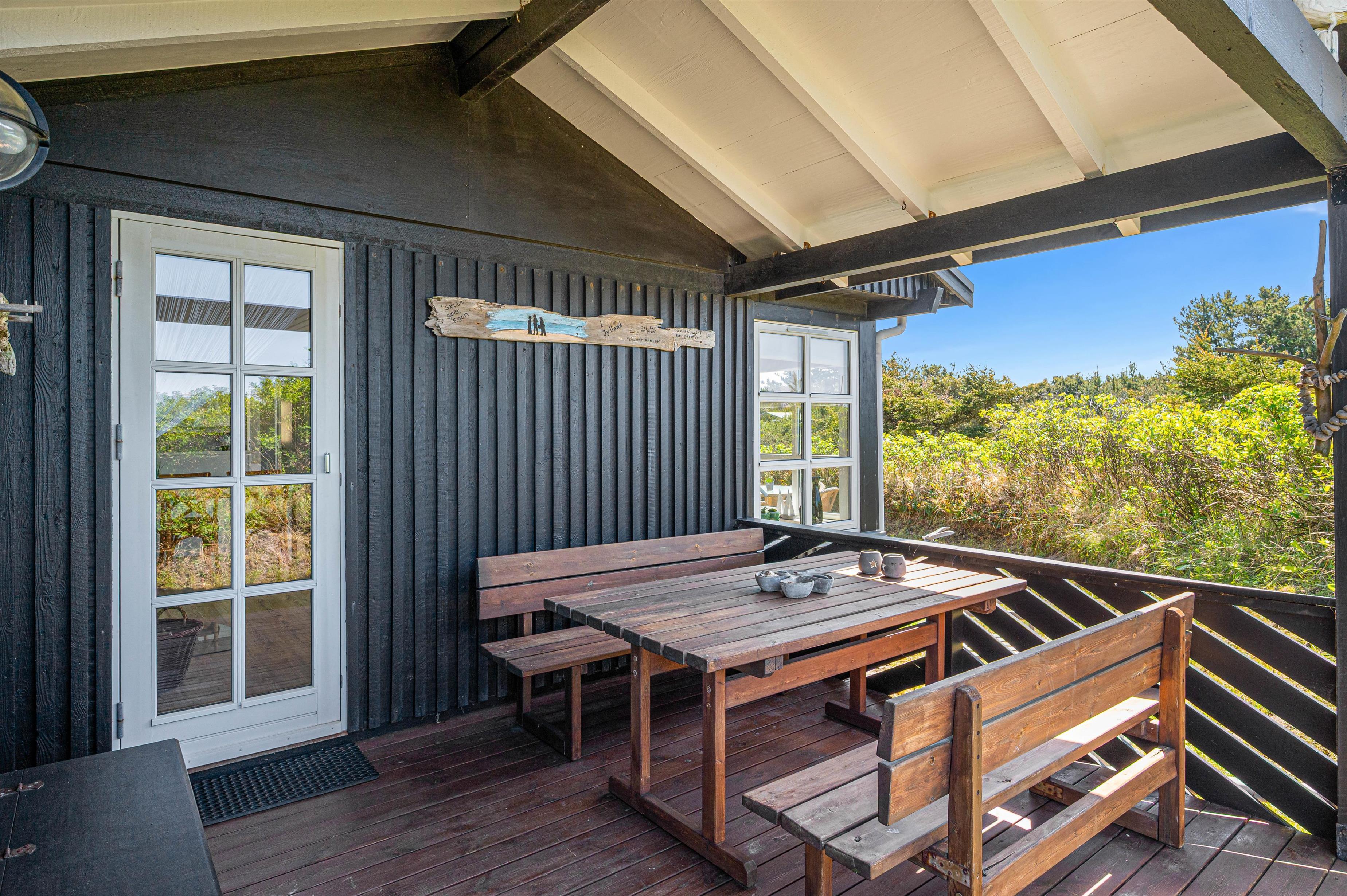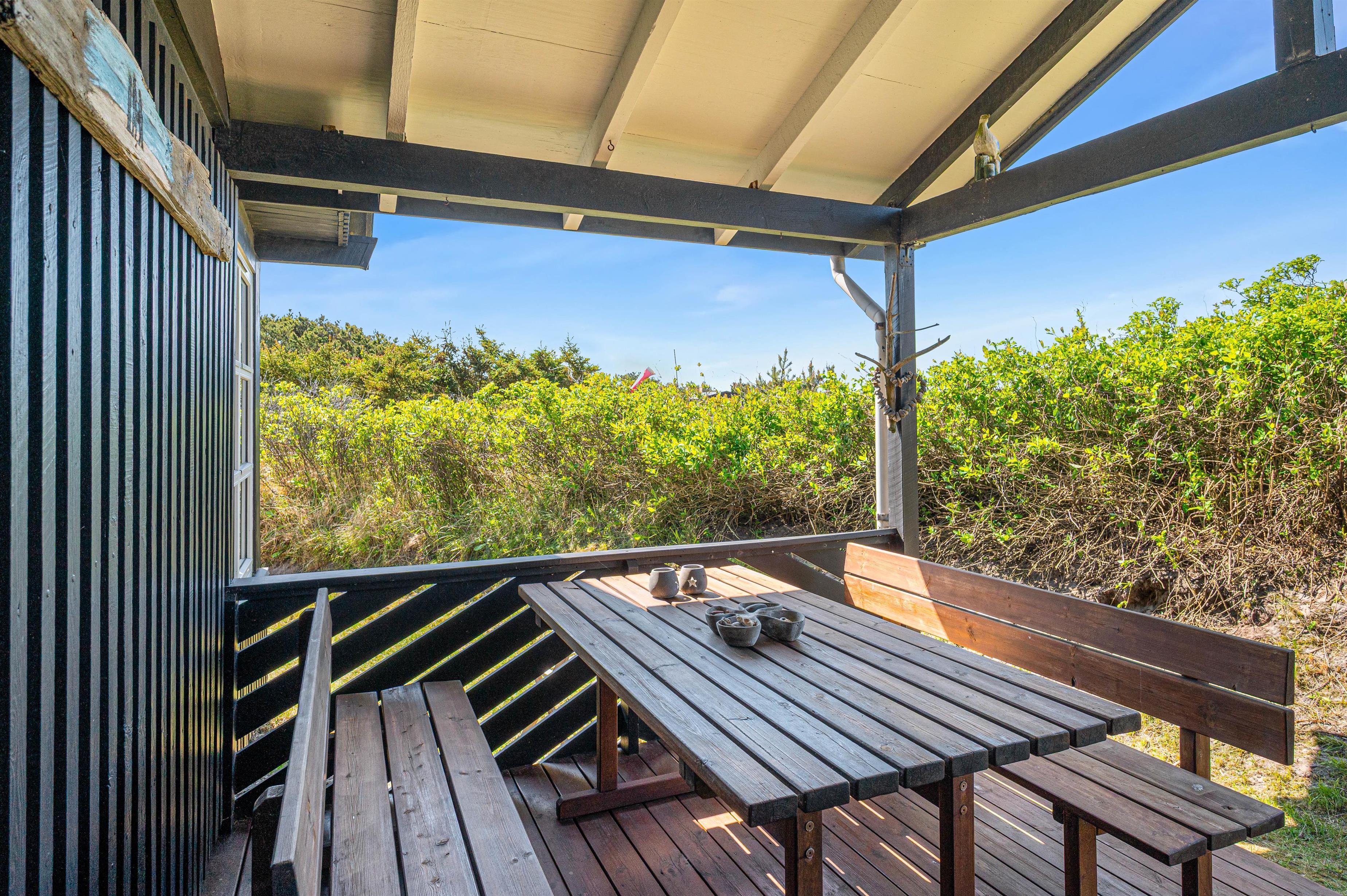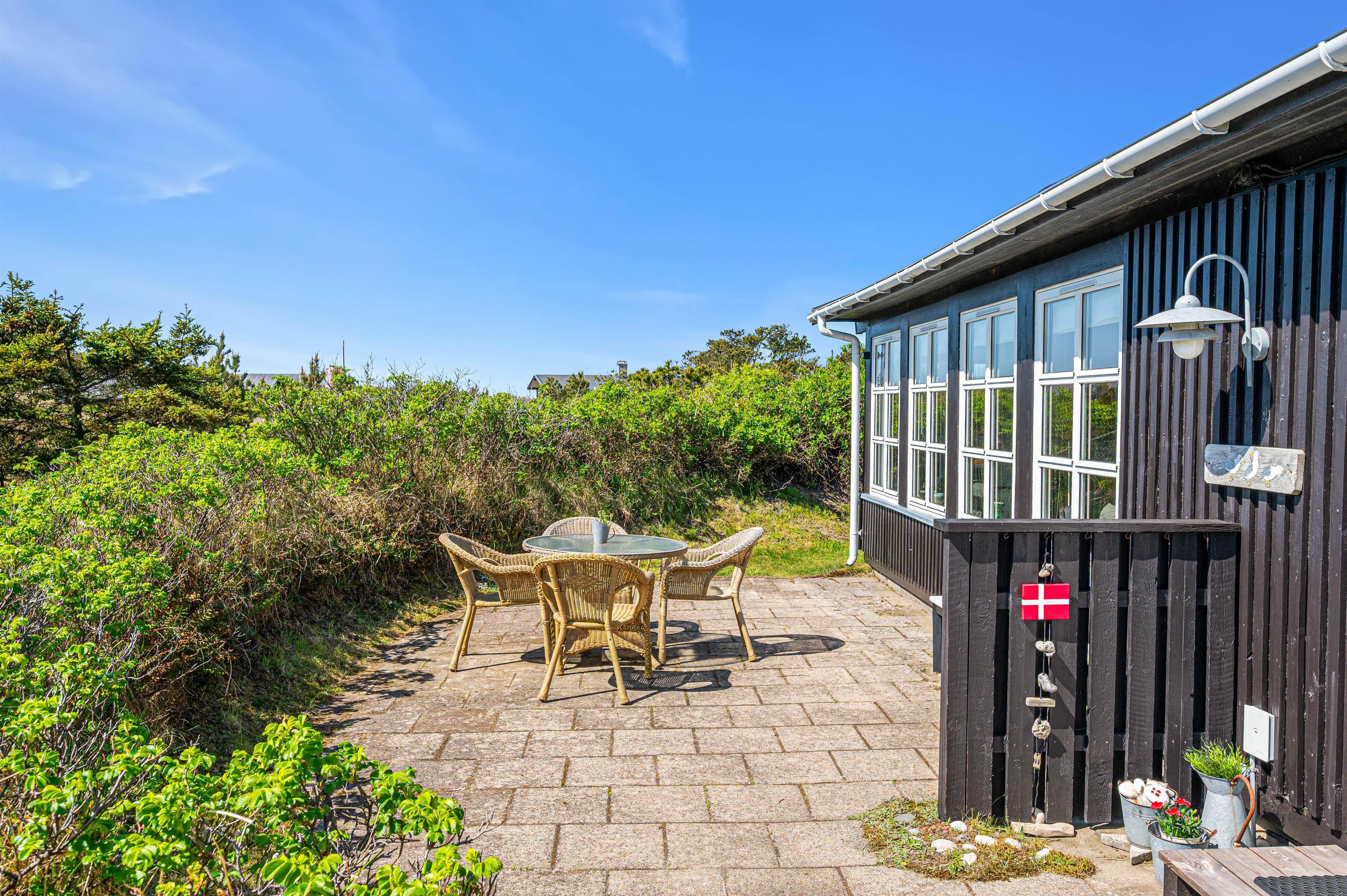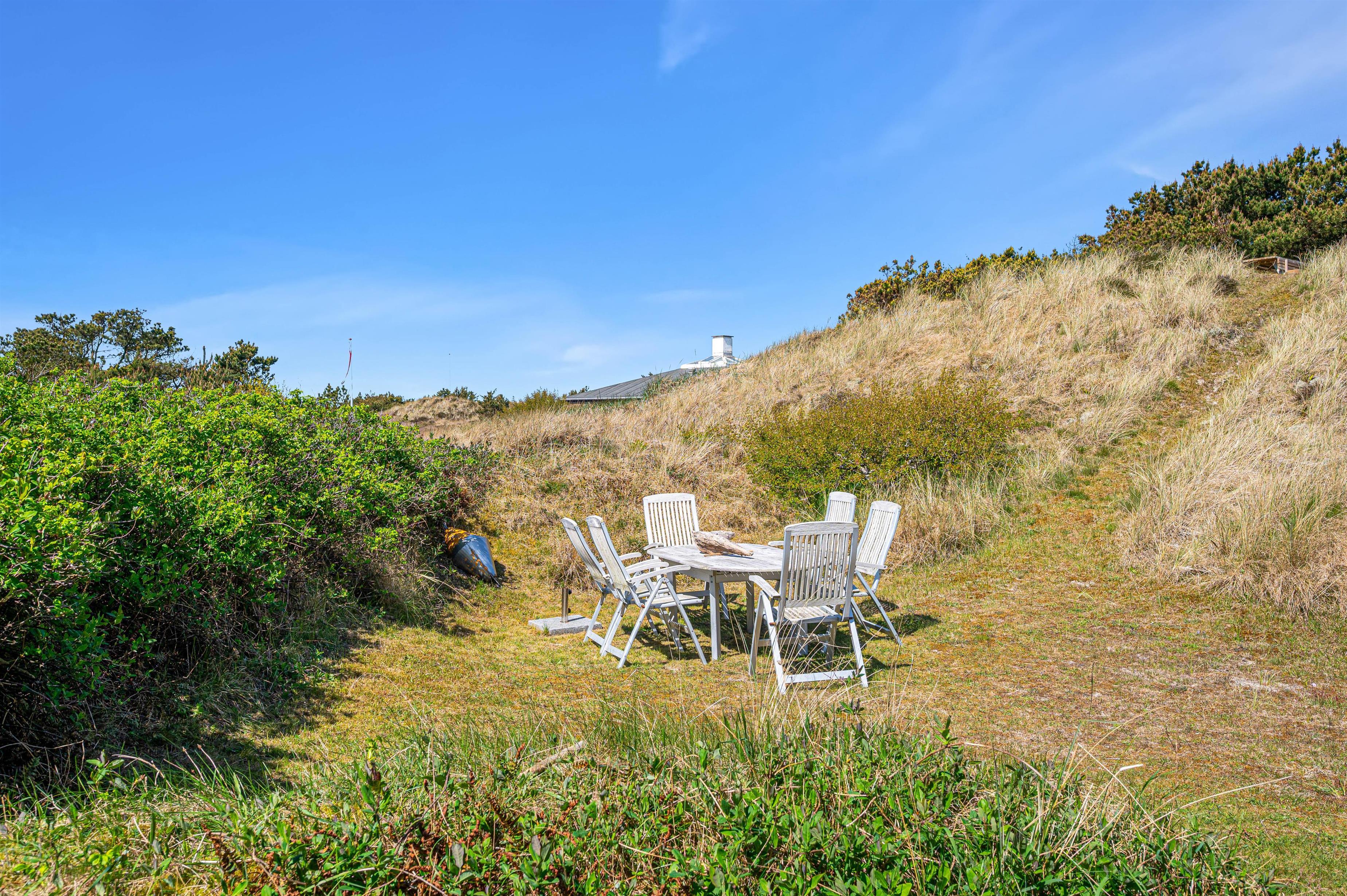 Sommerhuset ligger på en naturgrund, hvor I har masser af fred og ro omkring jer og mulighed for at nyde udsigten hen til Nr. Lyngvig Fyr. Udenfor kan I vælge mellem flere skønne terrassemiljøer – en åben terrasse til solrige eftermiddage, en overdækket terrasse til ly for småregn samt en afskærmet terrasse, hvor I kan nyde roen. Om aften kan I finde grillen frem og nyde et dejligt måltid udenfor.