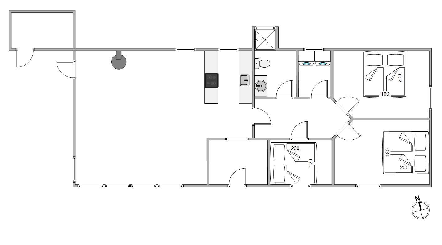 Sommerhuset har plads til 4 personer fordelt på 3 soveværelser og rummer alt, hvad I har brug for til en afslappende ferie. Den lyse opholdsstue har en brændeovn, der spreder varme og hygge på kølige dage, mens varmepumpen sikrer en behagelig indetemperatur året rundt.