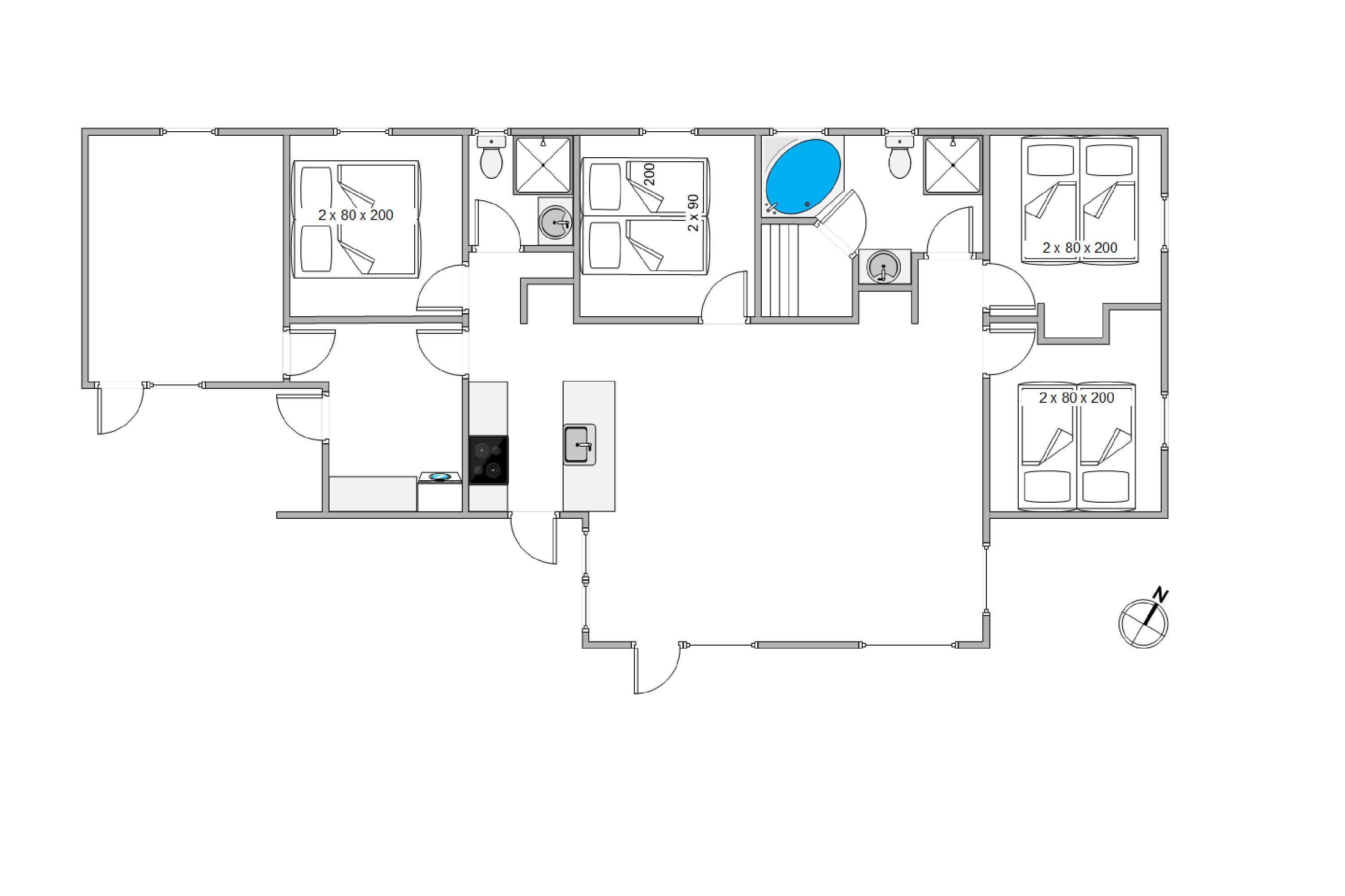 Husets hjerte er det åbne køkkenalrum, som er slået sammen med stuen. Her kan I samle hele familien til en skøn feriemiddag eller en hyggelig filmaften på sofaen. TV'et i stuen er til streaming, så her kan I streame lige, hvad I har lyst til. Brændeovnen sørger for, at I kan holde varmen hele året rundt, og tilfører en hyggelig ferieatmosfære med sine knitrende flammer. Derudover er der også mulighed for hygge i multirummet, hvor poolbordet blandt andet sørger for mange timers underholdning.