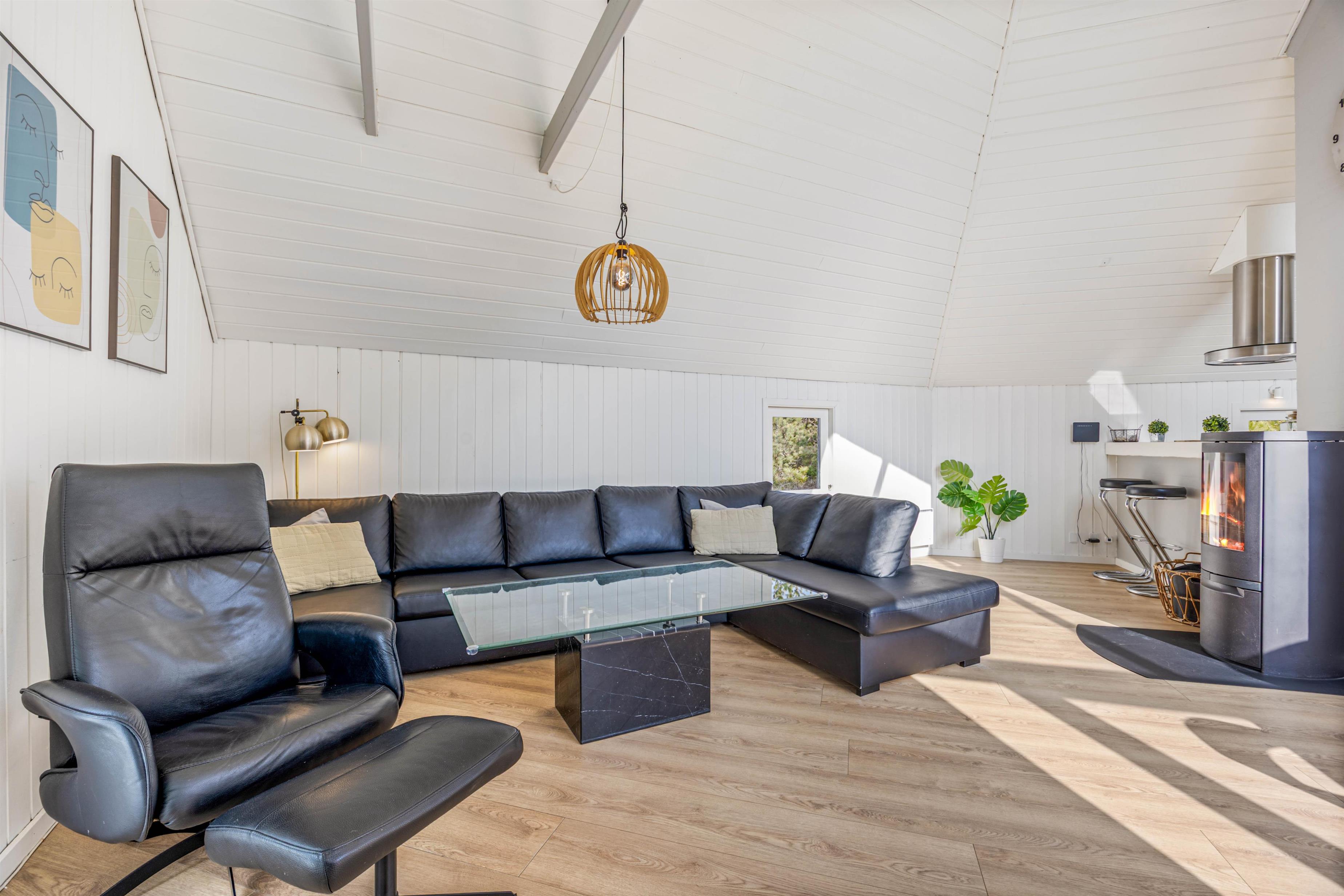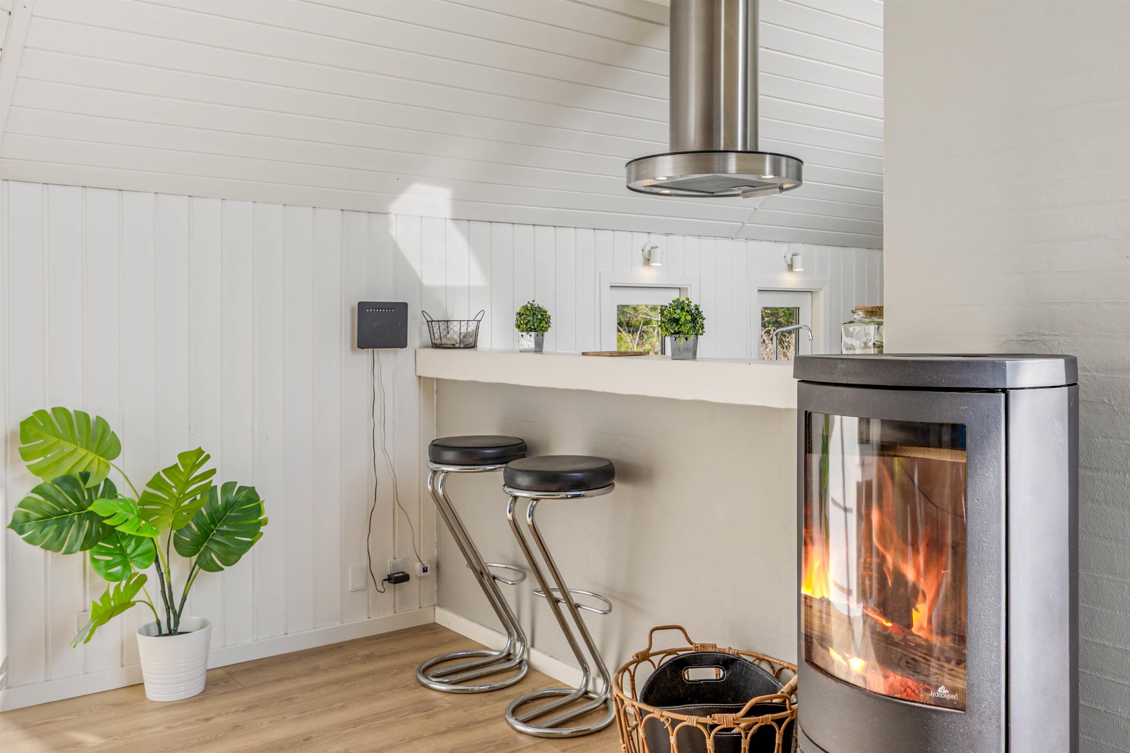 I sommerhuset vil I blive mødt af en hyggelig indretning med komfortable møbler, som I kan finde jer til rette i på jeres ferie. På ægte sommerhusvis er der en brændeovn i stuen, som fuldender feriestemningen og spreder dejlig varme i feriehuset.