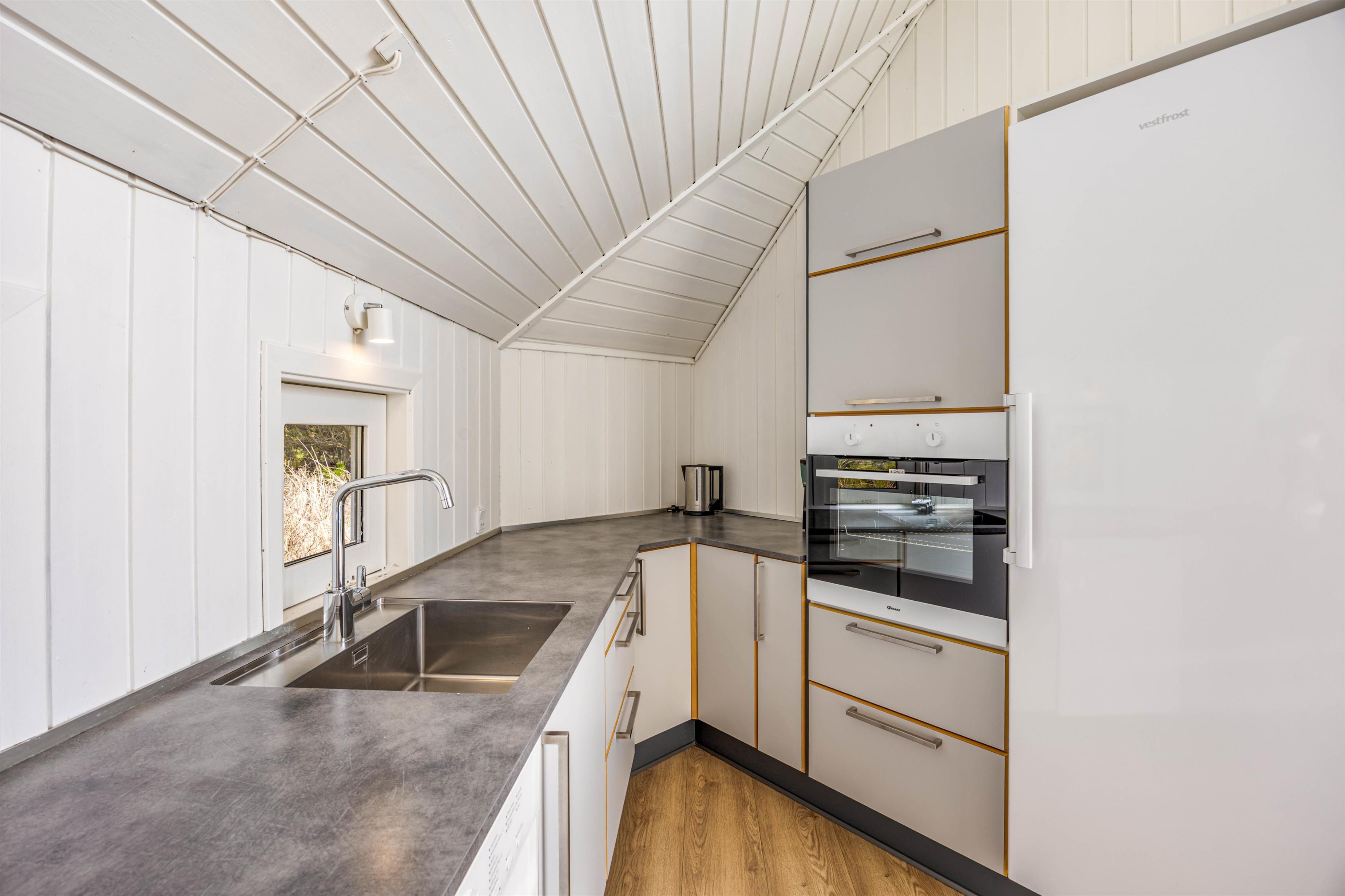 Feriehuset er desuden komfortabelt indrettet med praktiske faciliteter, der hjælper jer med det praktiske husarbejde. I feriehuset har I både opvaskemaskine, vaskemaskine og tørretumbler til rådighed, så I slipper for at bruge en masse tid på opvask og tøjvask på jeres ferie.