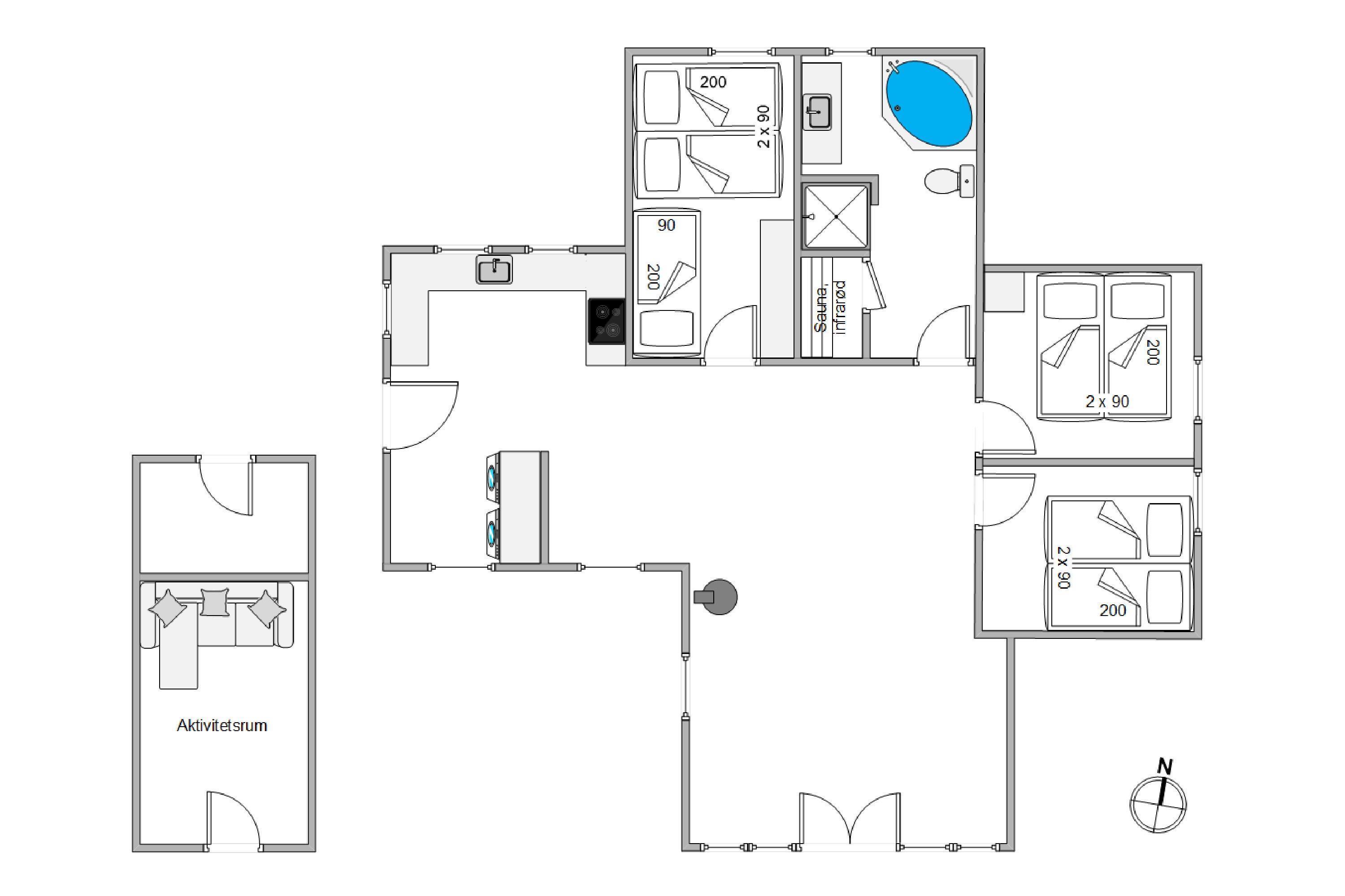 Udover det lækre opholdsrum og de 3 soveværelser har dette feriehus et 25 kvadratmeter stort anneks, hvor der er blevet lavet et aktivitetsrum. Et sandt paradis for de konkurrencemindede i familien. Her kan I prøve kræfter med både billard, bordfodbold og bordtennis. Mens nogle måske foretrækker hygge foran brændeovnen med en god bog eller serie, er der i dette aktivitetshus plads til alle.