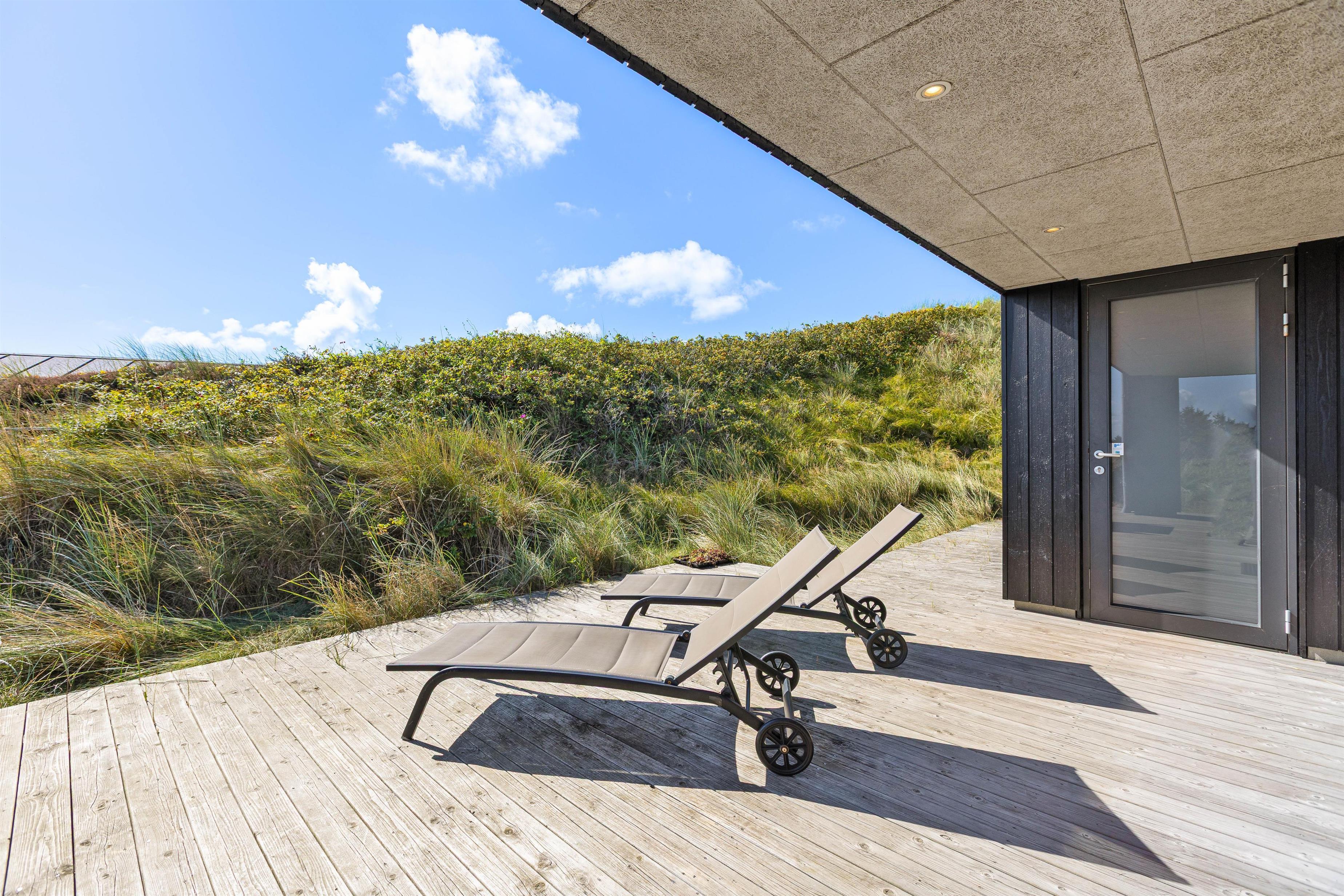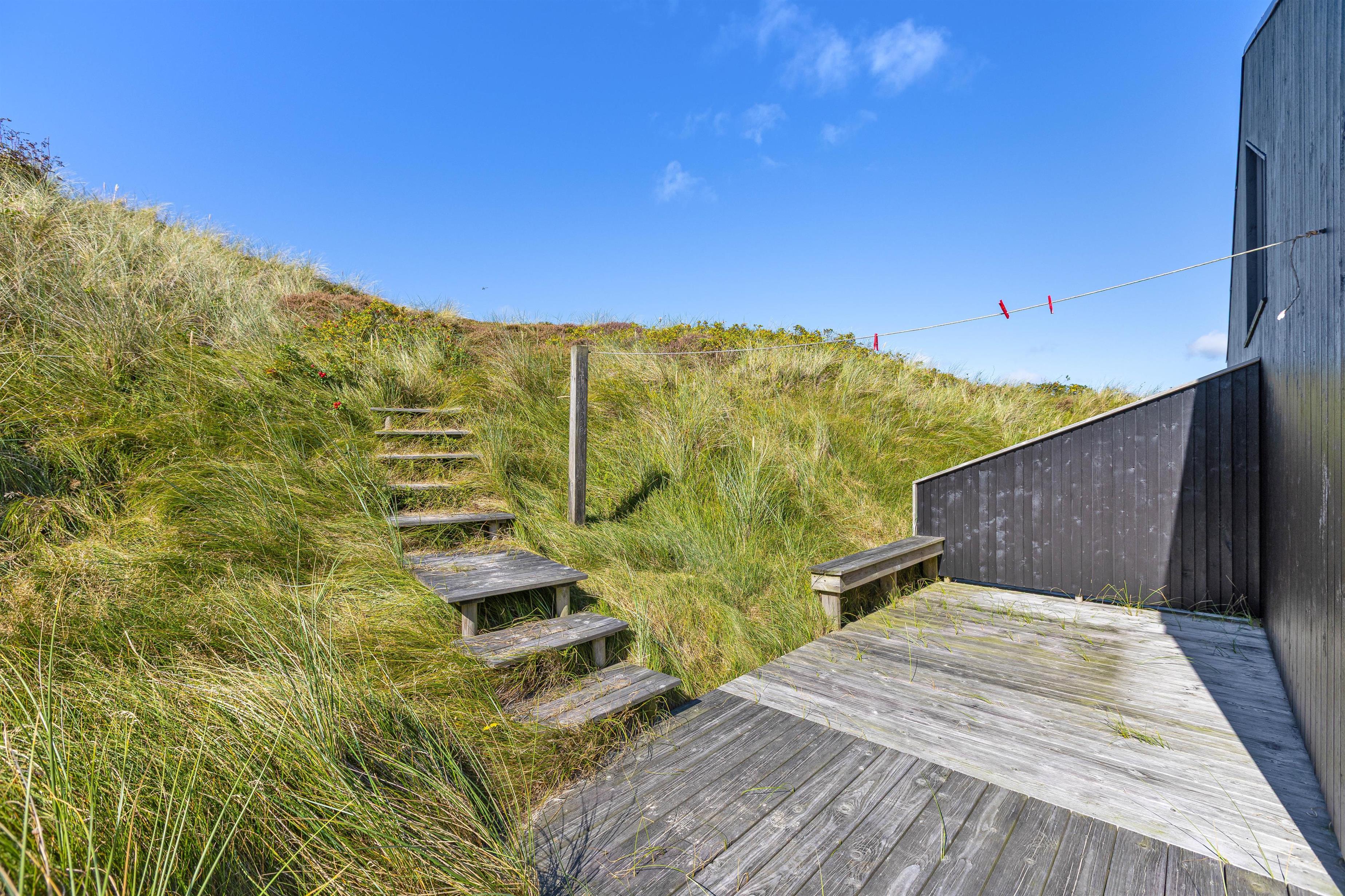 Et virkeligt lækkert og handicapvenligt sommerhus, opført i de bedste materialer. Huset har en unik beliggenhed på en kuperet klitgrund i yderste klitrække og med smuk udsigt over området. Fra grunden er der udsigt til både hav og fjord. Fra toppen af klitten bag huset er der fantastisk udsigt til havet mod vest og til Ringkøbing Fjord mod øst. På terrassen er der udendørs bruser og fiskerenseplads.